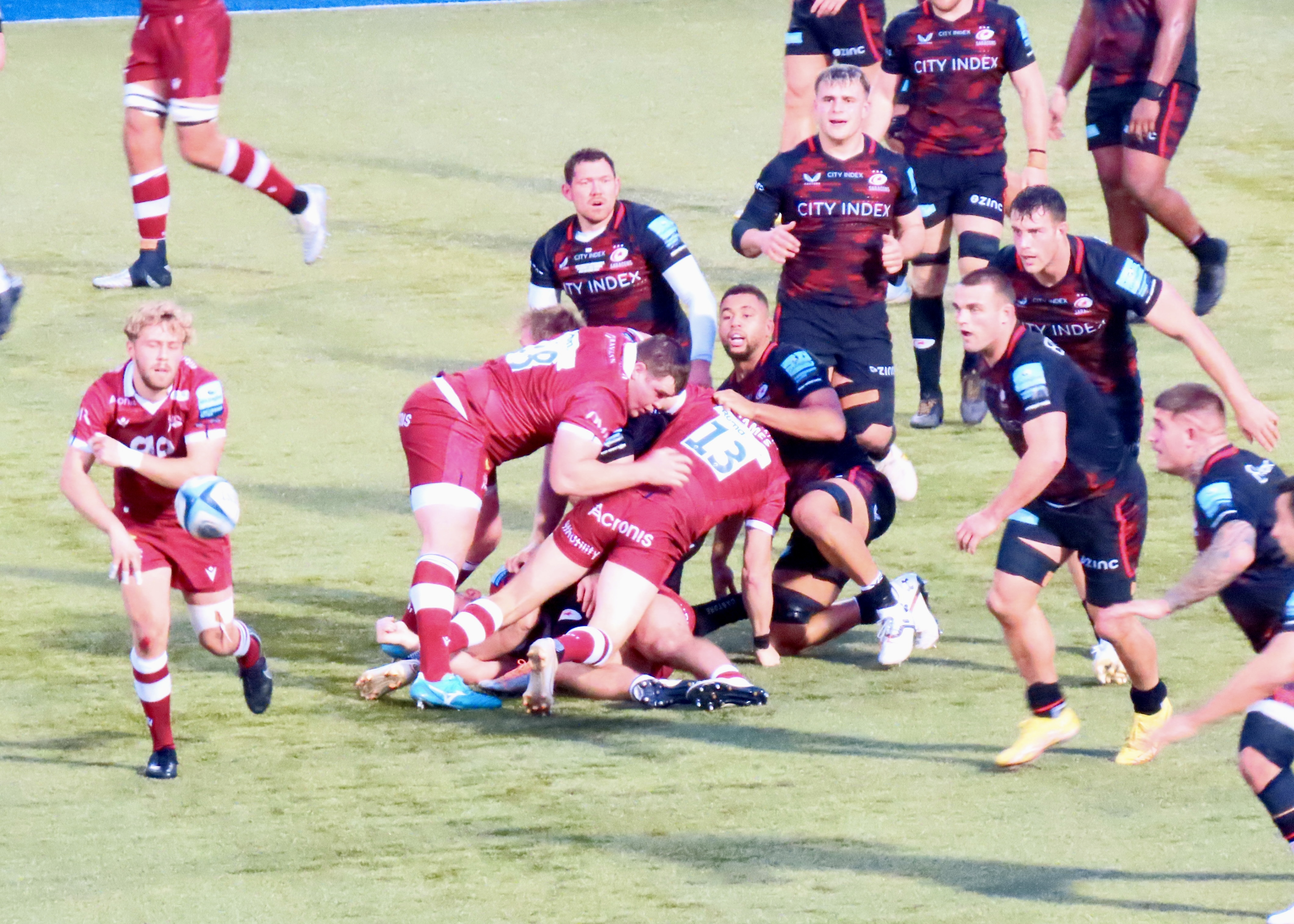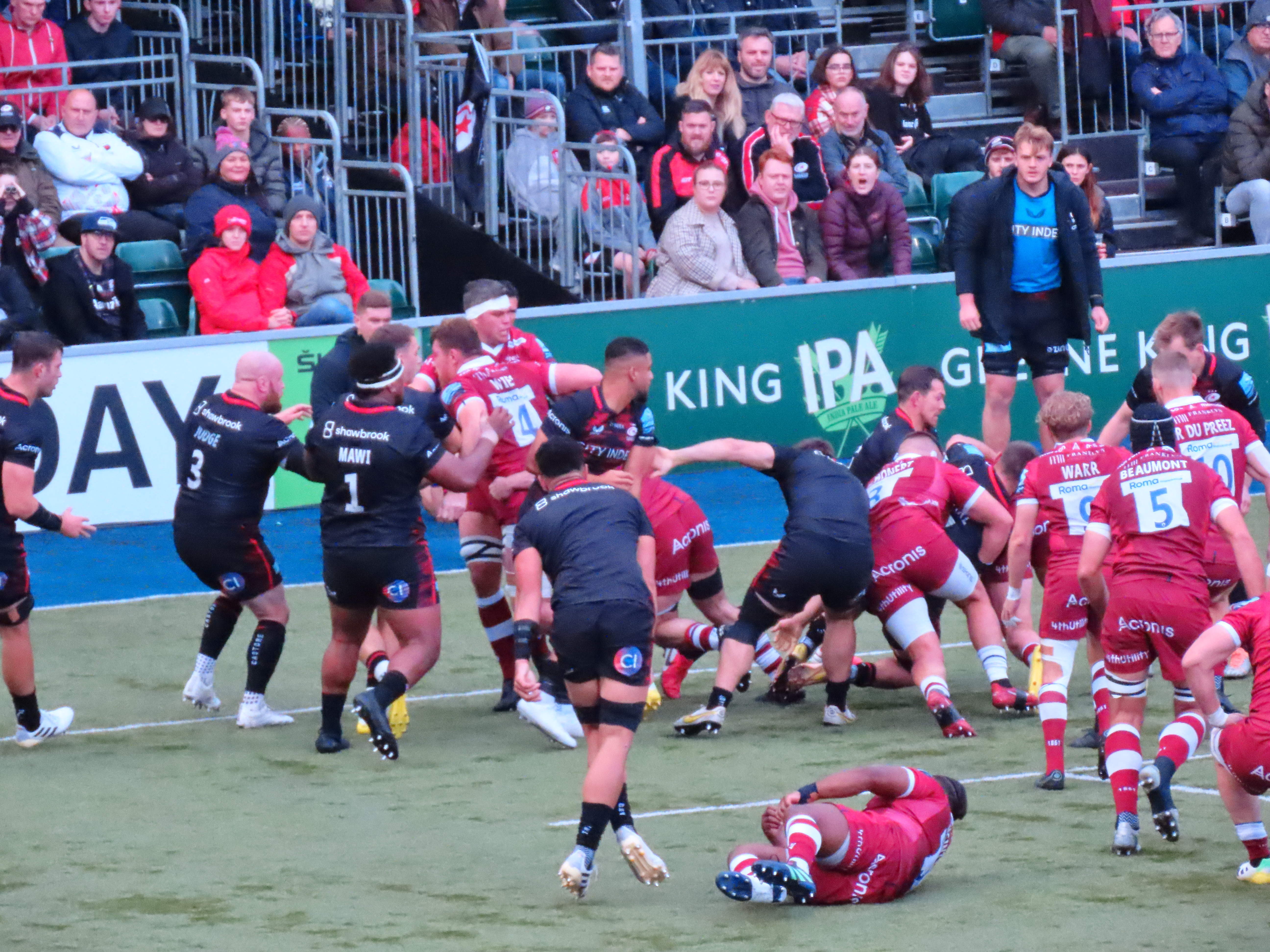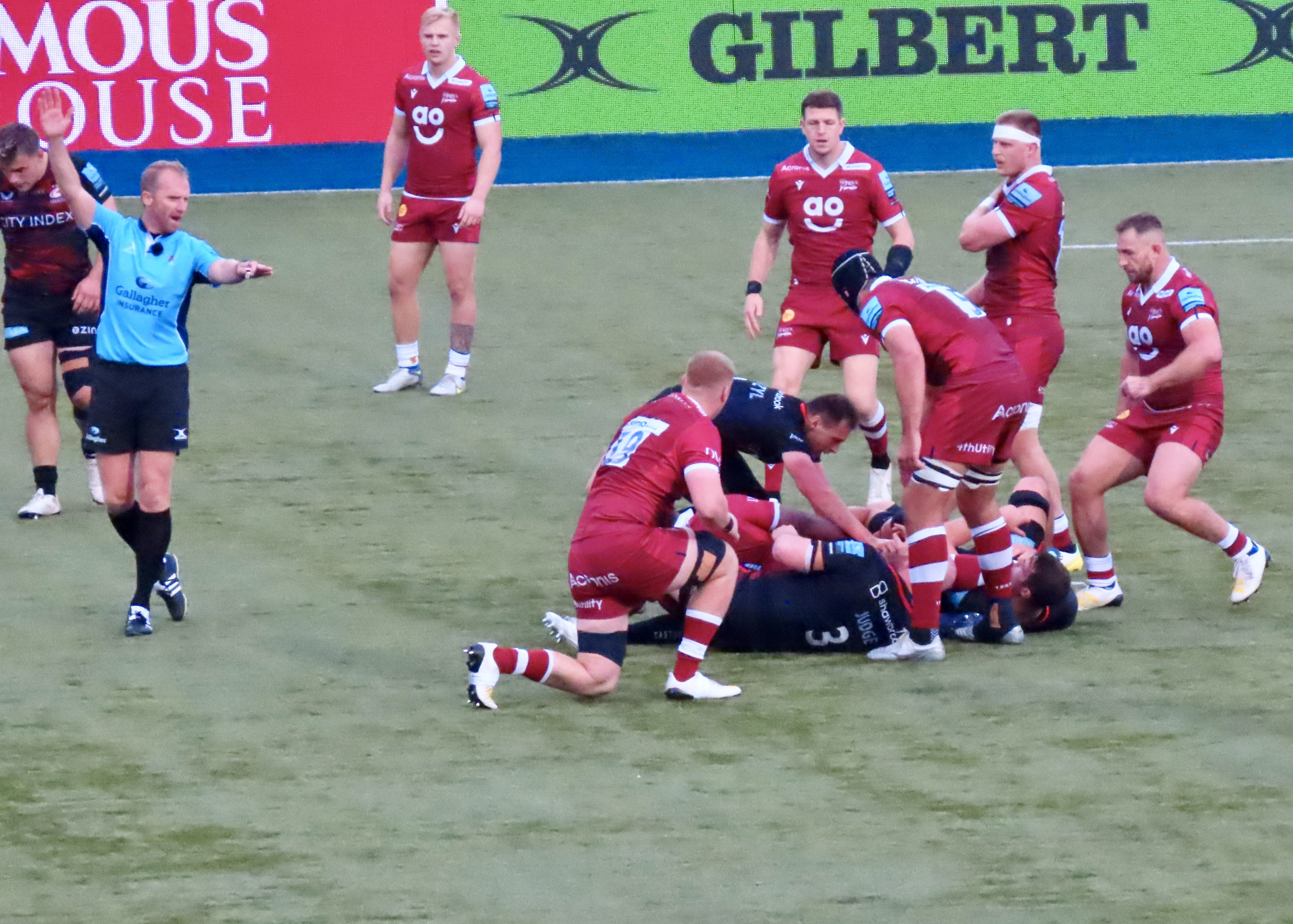 The game had another lull as far as points were concerned, we did see Wayne Barnes come a cropper again as he got in the way of the Saracens scrum half Ivan van Zyl, happily for him he didn’t go to ground this time.