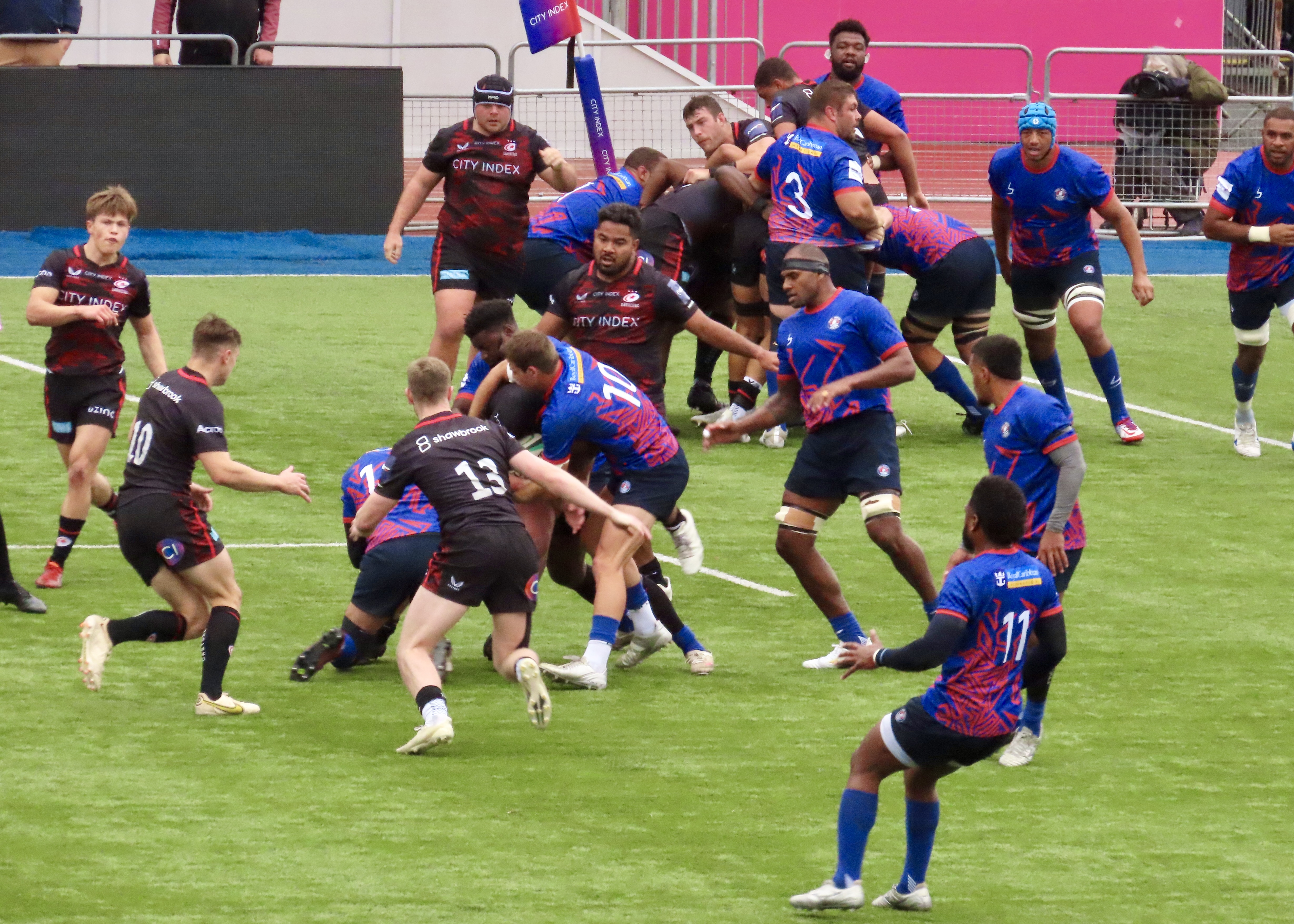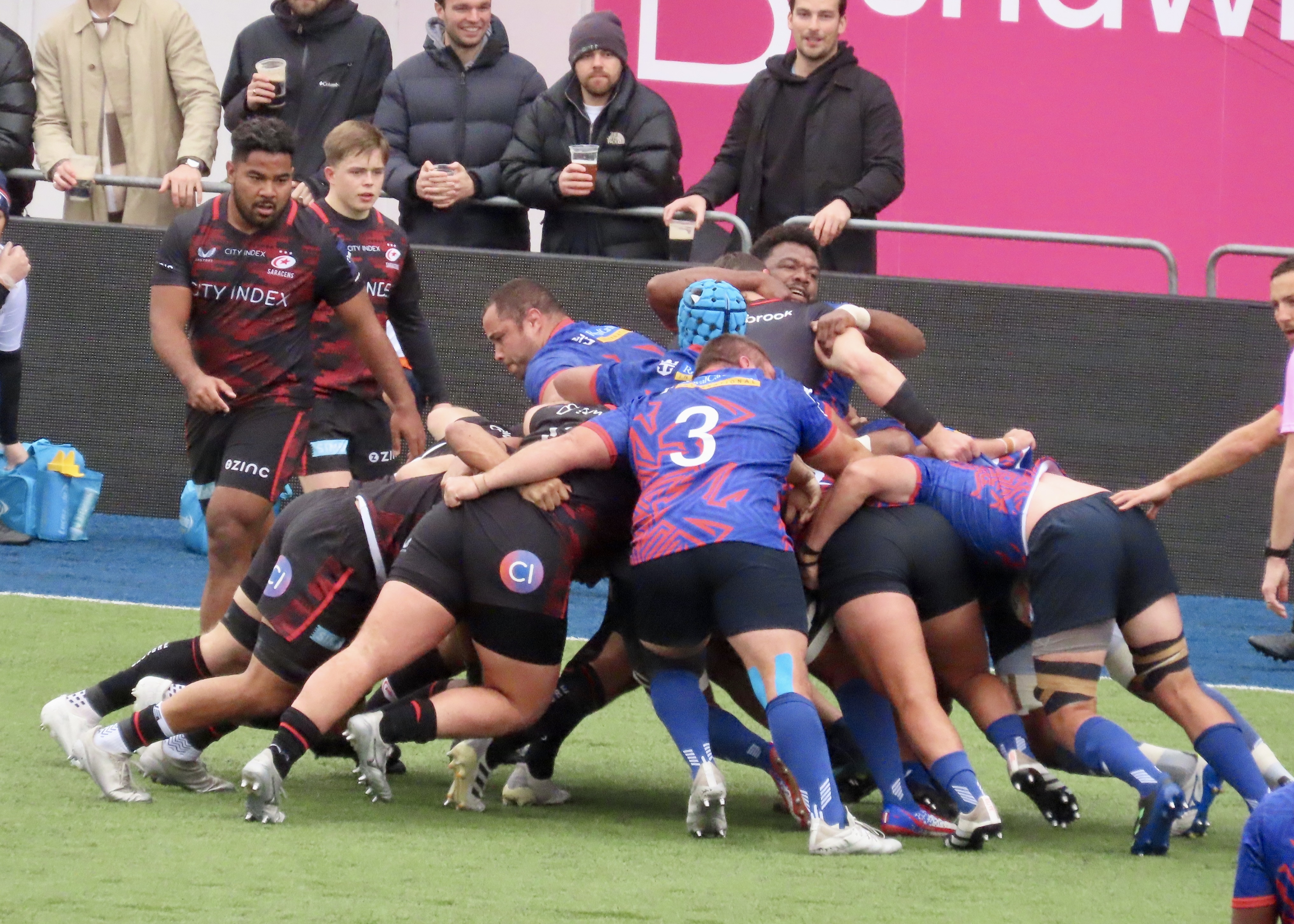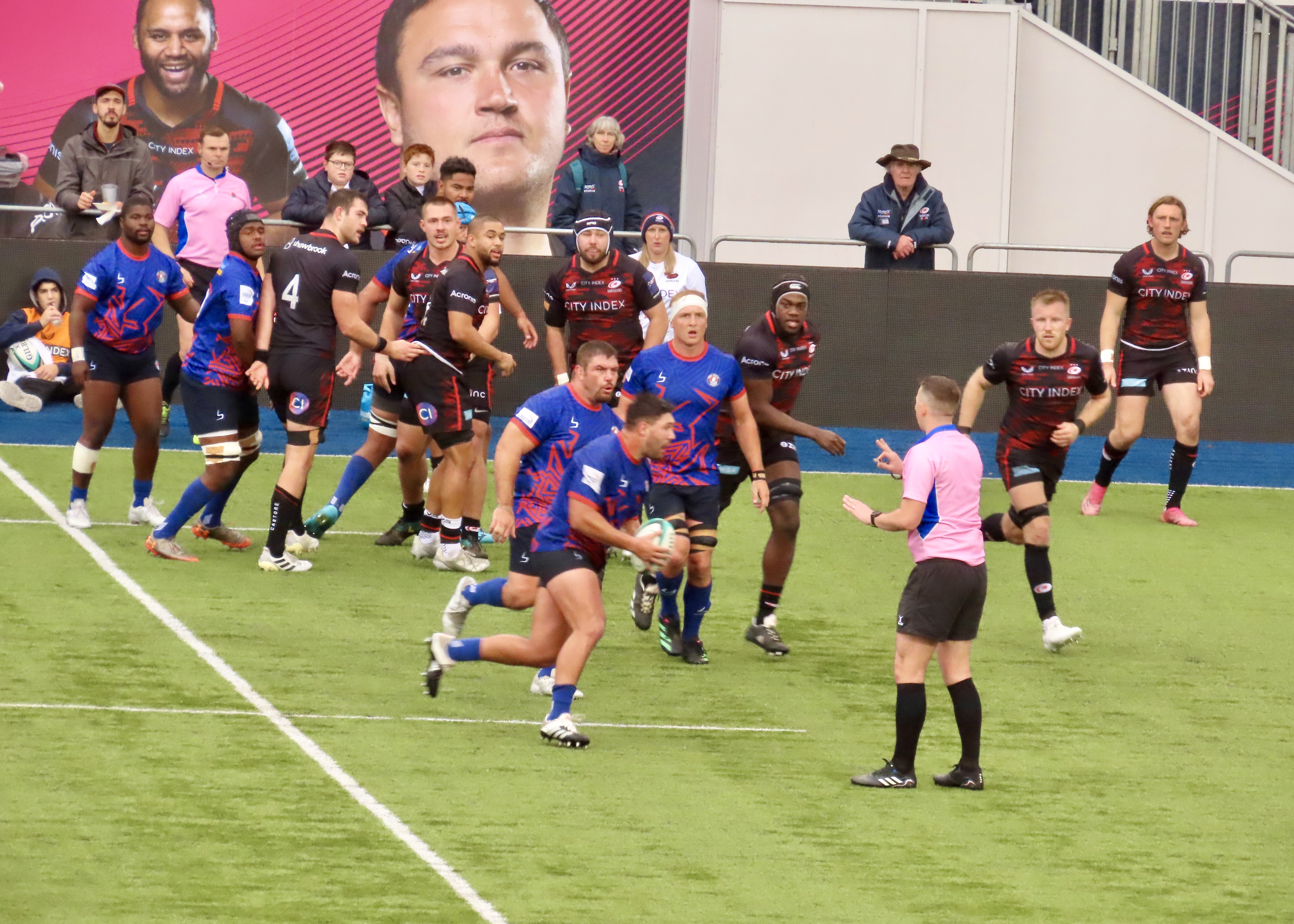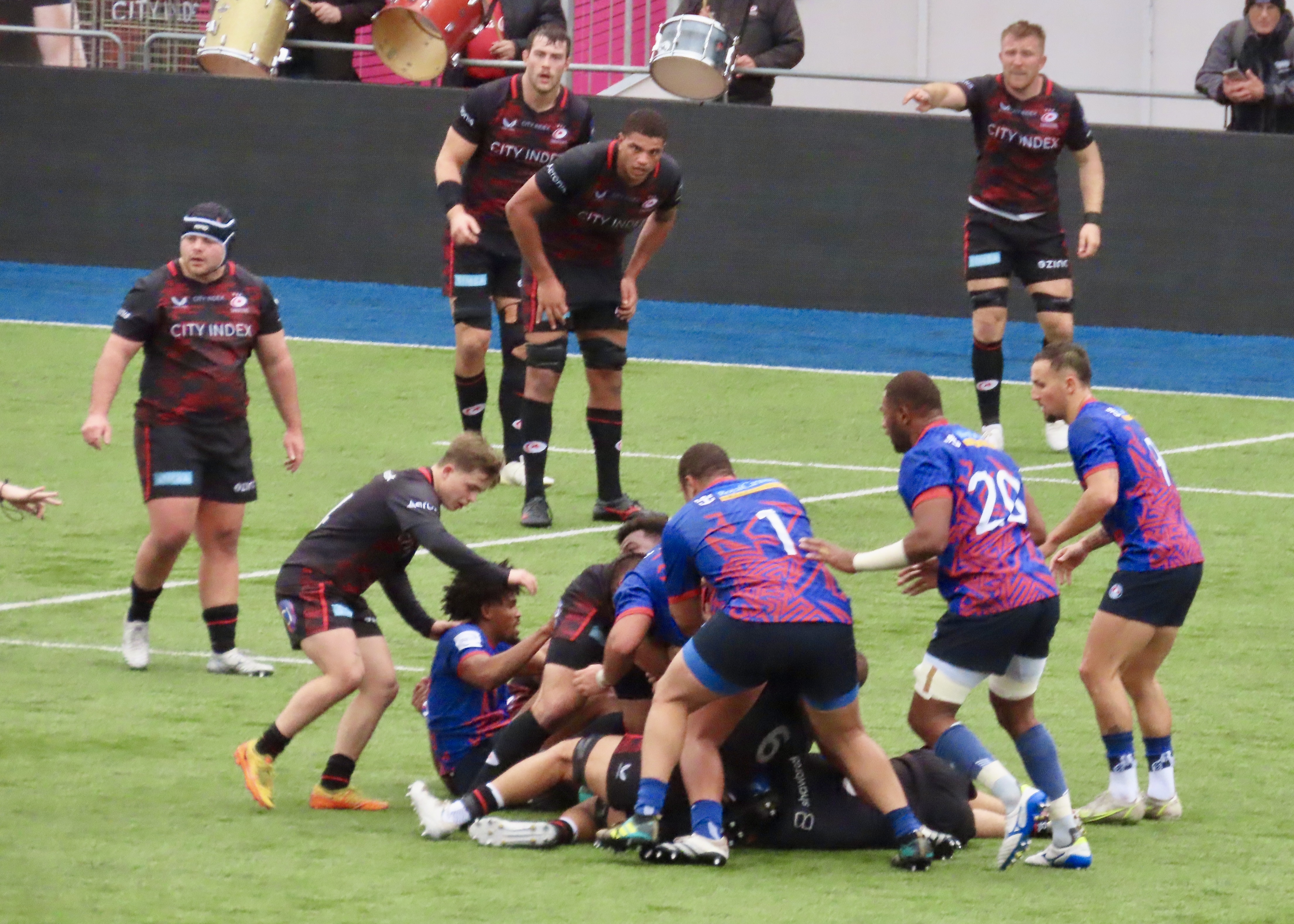 Saracens had some good possession in the Heat 22 but failed to convert, Jone Manu intercepted a Saracens pass and he soared towards the line, Jenson Mcinulty showed his pace to get back to stop him however, a forward pass saw whatr had looked like a great try for Prince Naceebe wiped off.