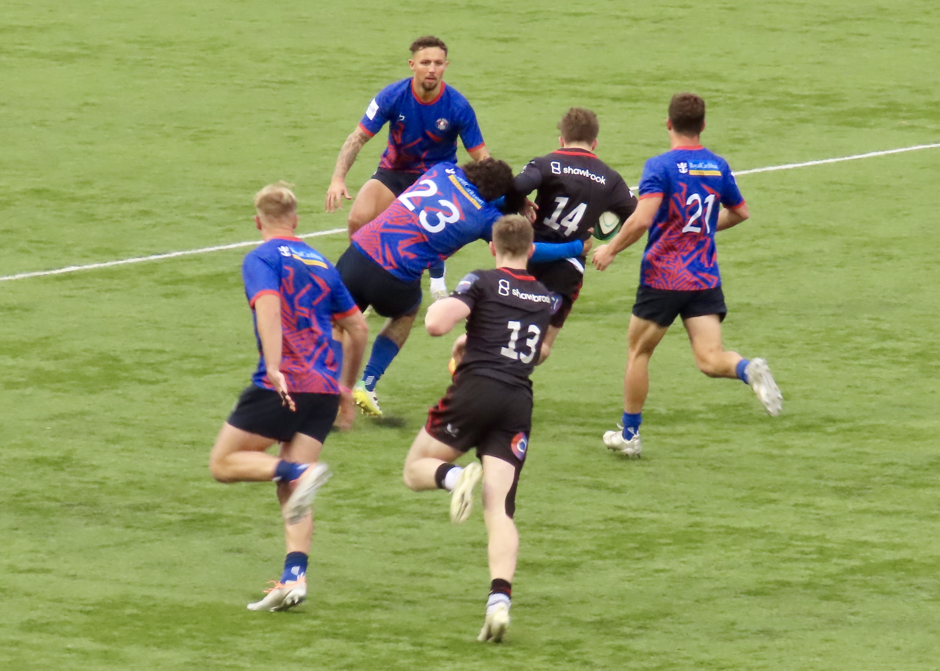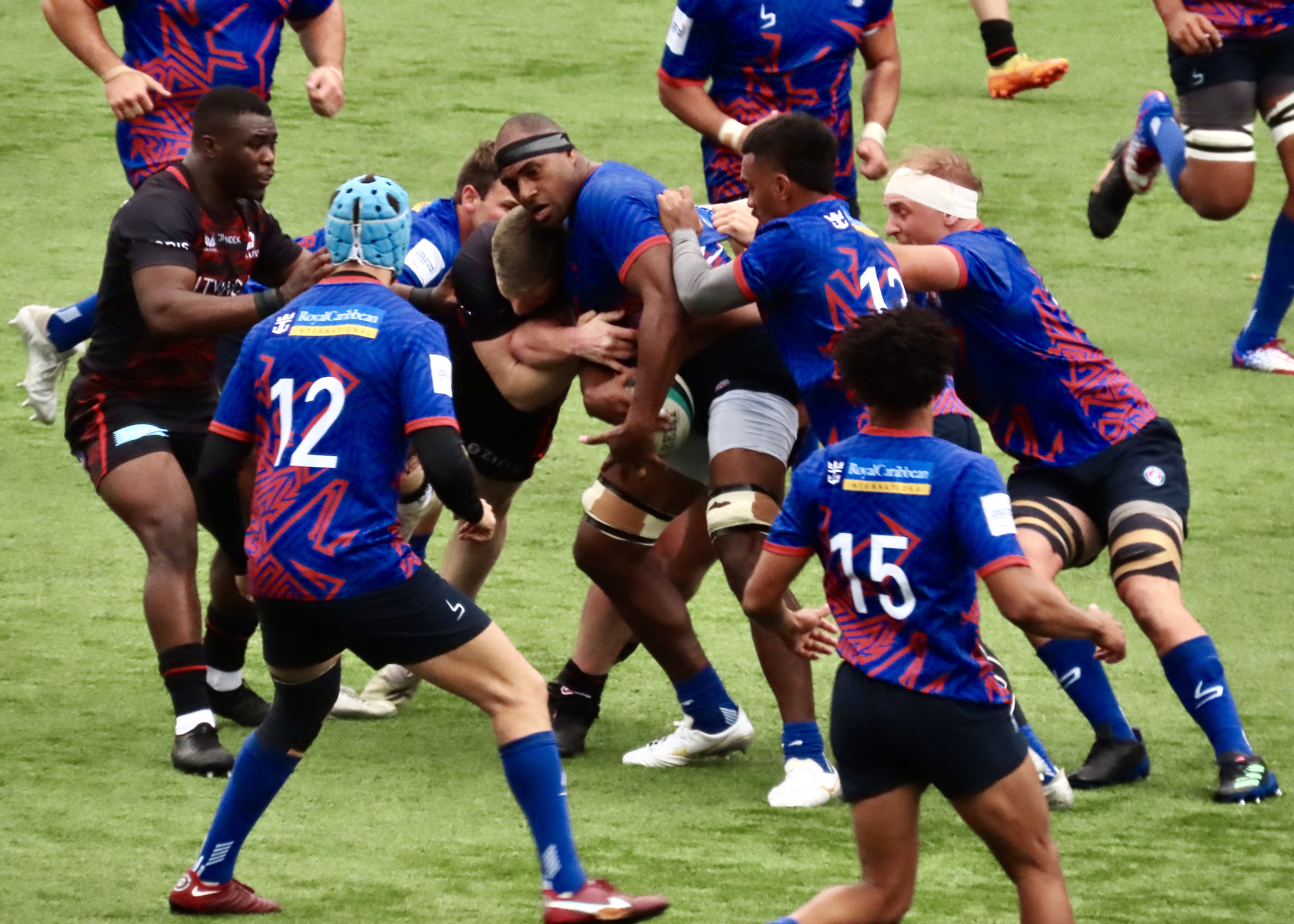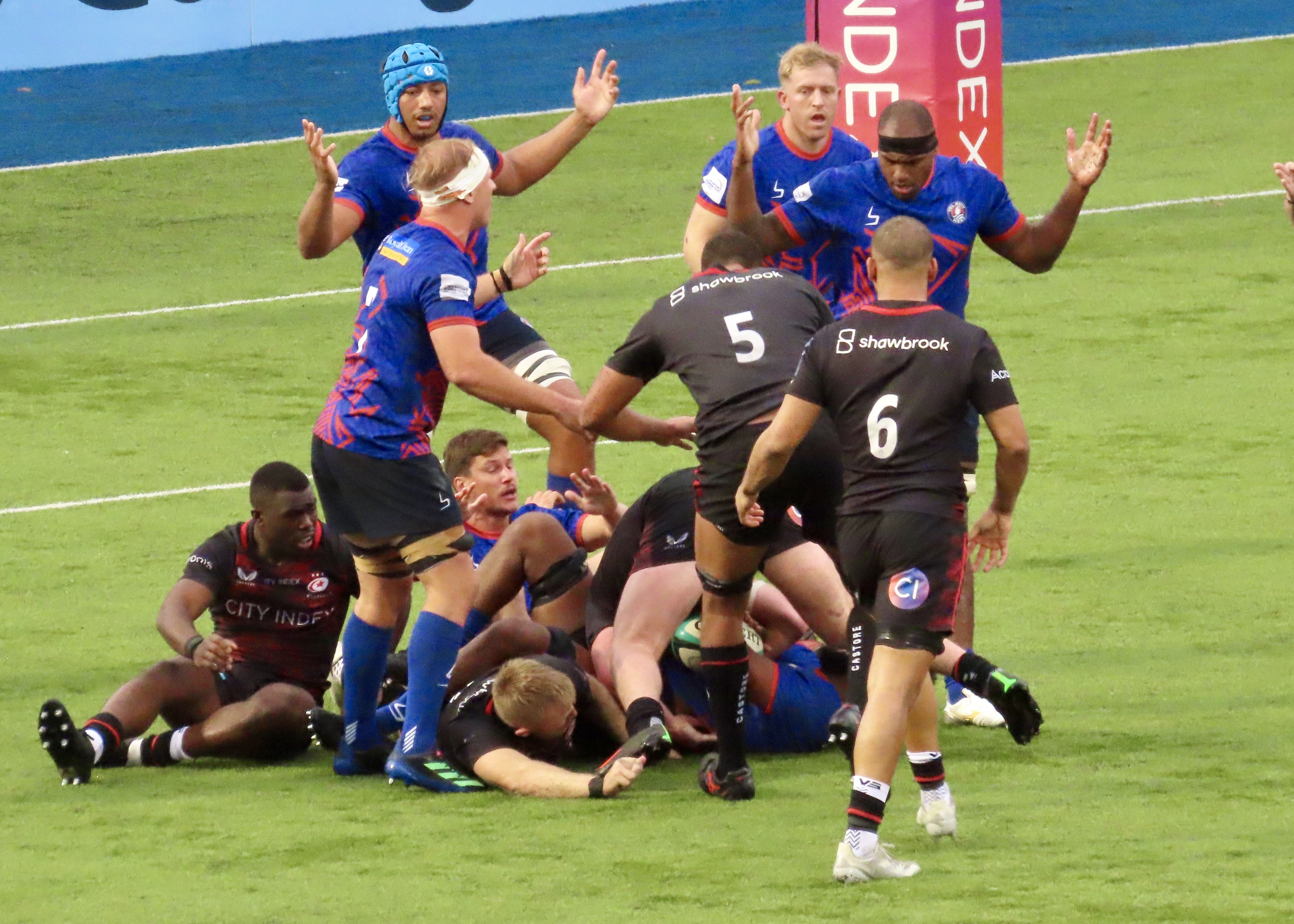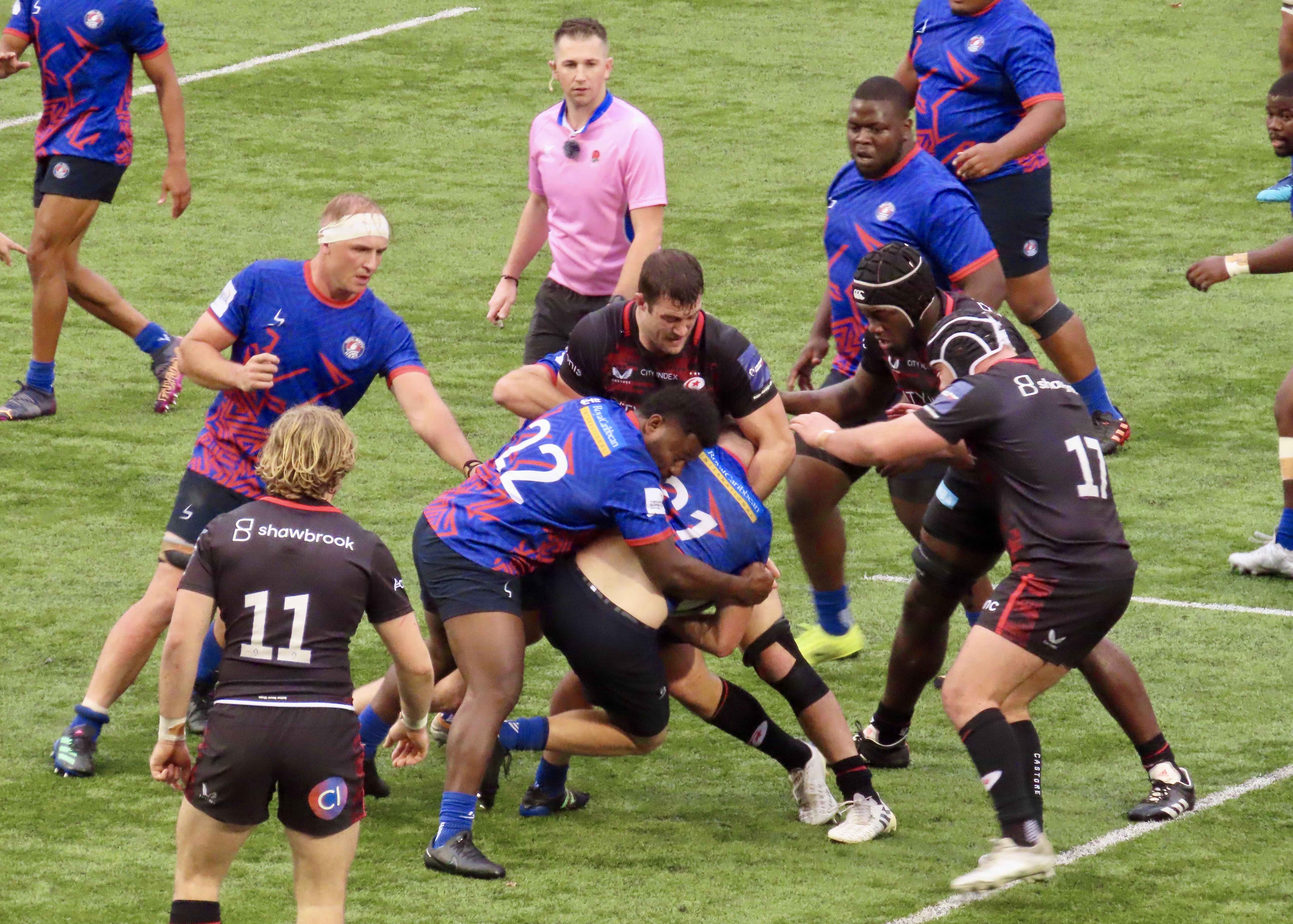 Saracens had some good possession in the Heat 22 but failed to convert, Jone Manu intercepted a Saracens pass and he soared towards the line, Jenson Mcinulty showed his pace to get back to stop him however, a forward pass saw whatr had looked like a great try for Prince Naceebe wiped off.