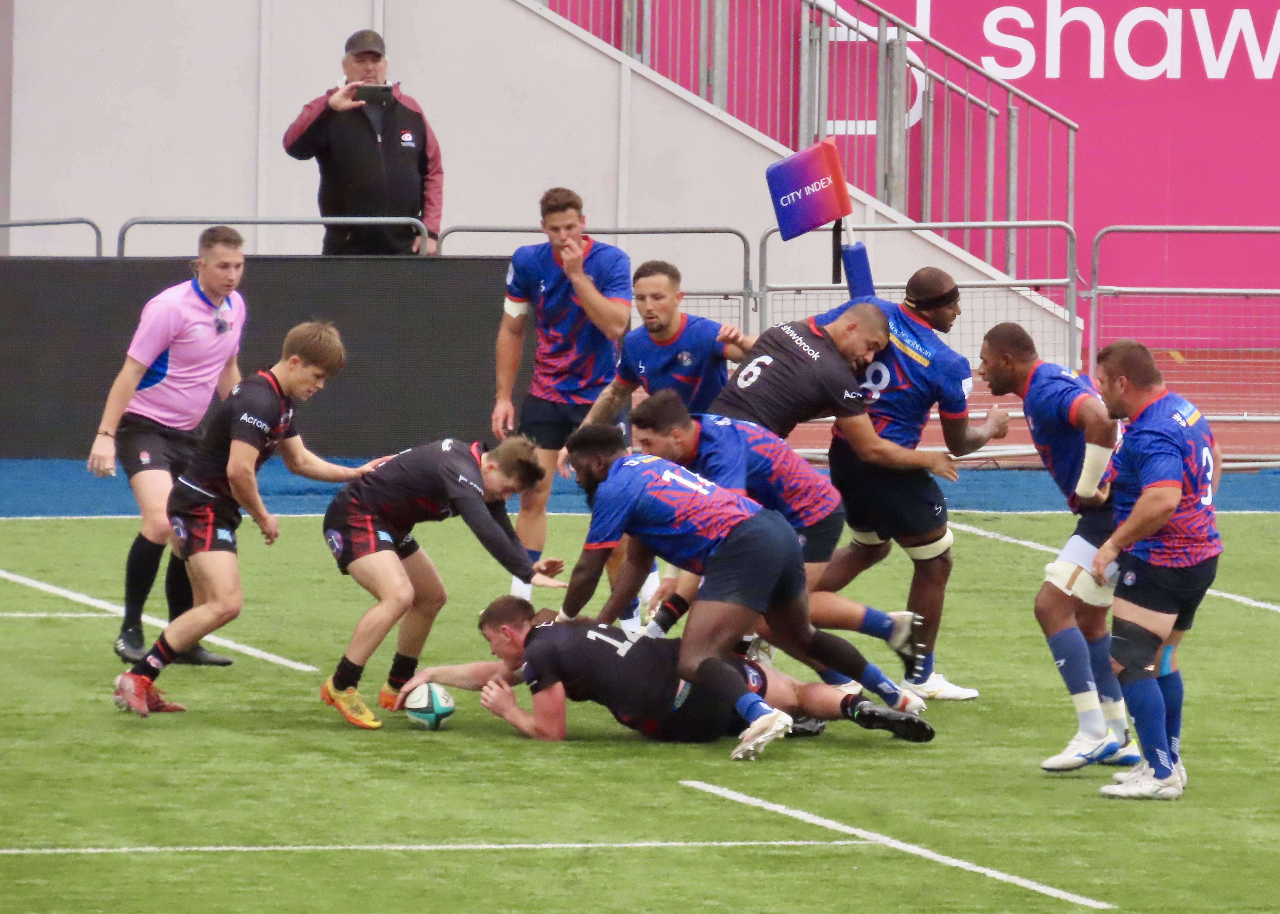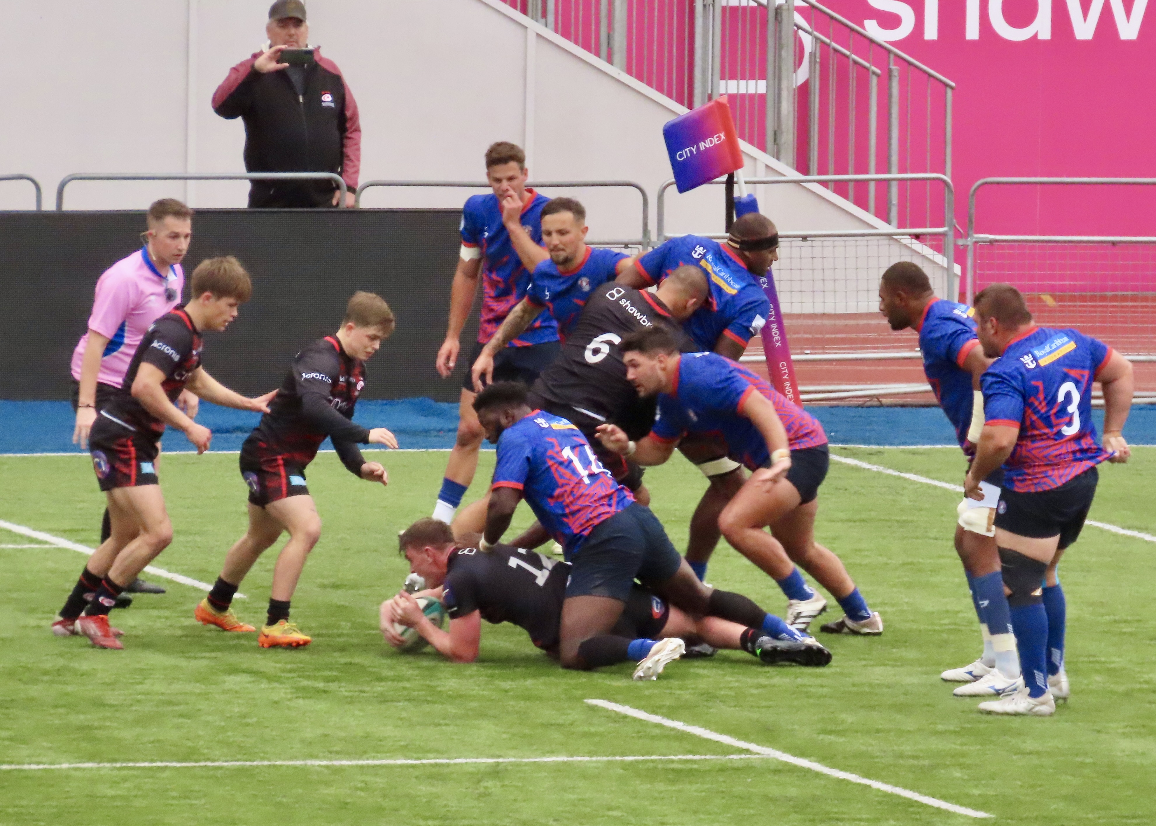 Another interception from Tel Aviv saw Niall Saunders run the length of the pitch to score between the posts. the teams went in at half-time with the score on Saracens 7 Tel Aviv Heat 15