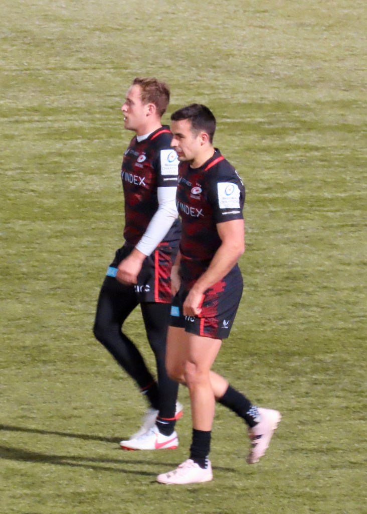 With half time closing in Lyon closed the gap with a try for Ethan Dumortier as the time went into the red, Lyon broke from the scrum after being awarded a Free Kick, Billy V was deemed to be offside as Lyon had broken away. Lyon went for the scrum again, which felt a bit odd, but they moved the ball quickly, with quick hands from the replacement scrum half Doossain in particular. !1 passes in the ball went to the Lyon full back who ran a great line to score a fairly straight forward try.The teams went in at half-time with the scores on Saracens 38 Lyon 14.
