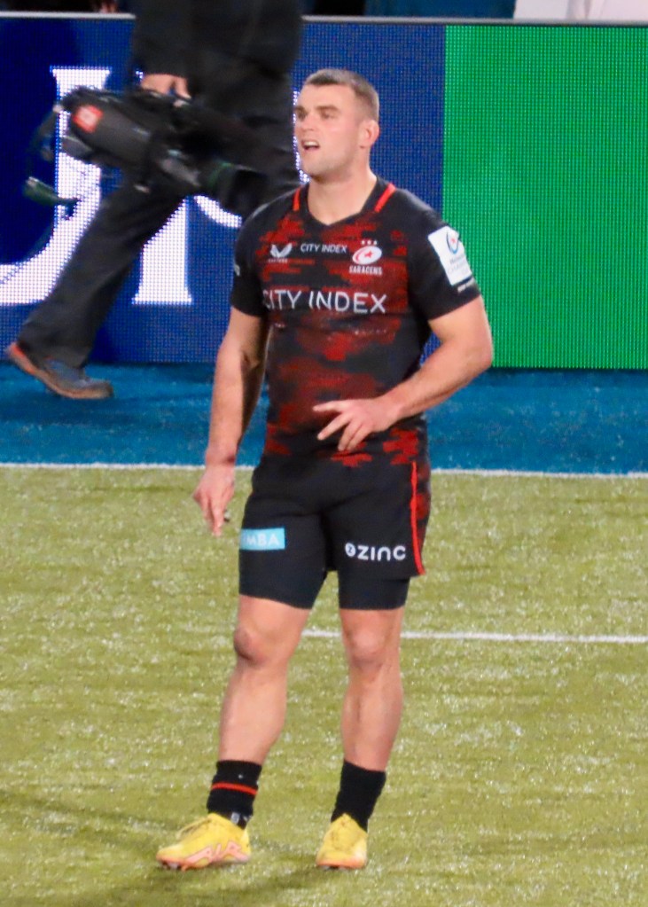 Lyon then had their own Mr Invisible as they played from the kick off, the crowd were unhappy that Max Malins had been tackled late as he kicked the ball away, the officials were happy the tackler was committed. Josiah Maraku jinked his way past the 2 Saracens props to run in and score. The tackle and a shoulder in Malins direction may have warranted a closer look, but booing really is not the thing. The score was Saracens 26 Lyon 7 after 26 minutes.