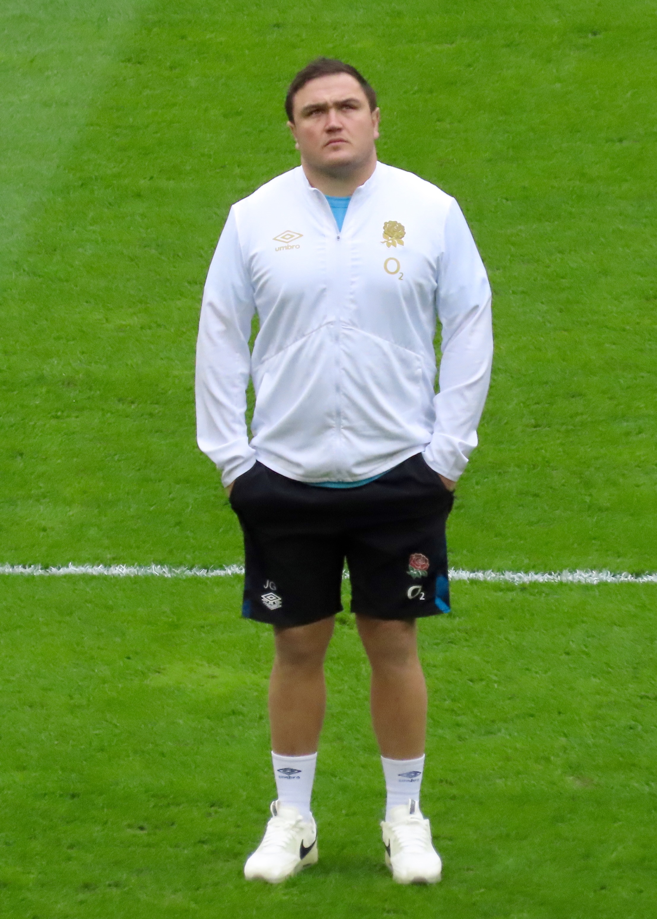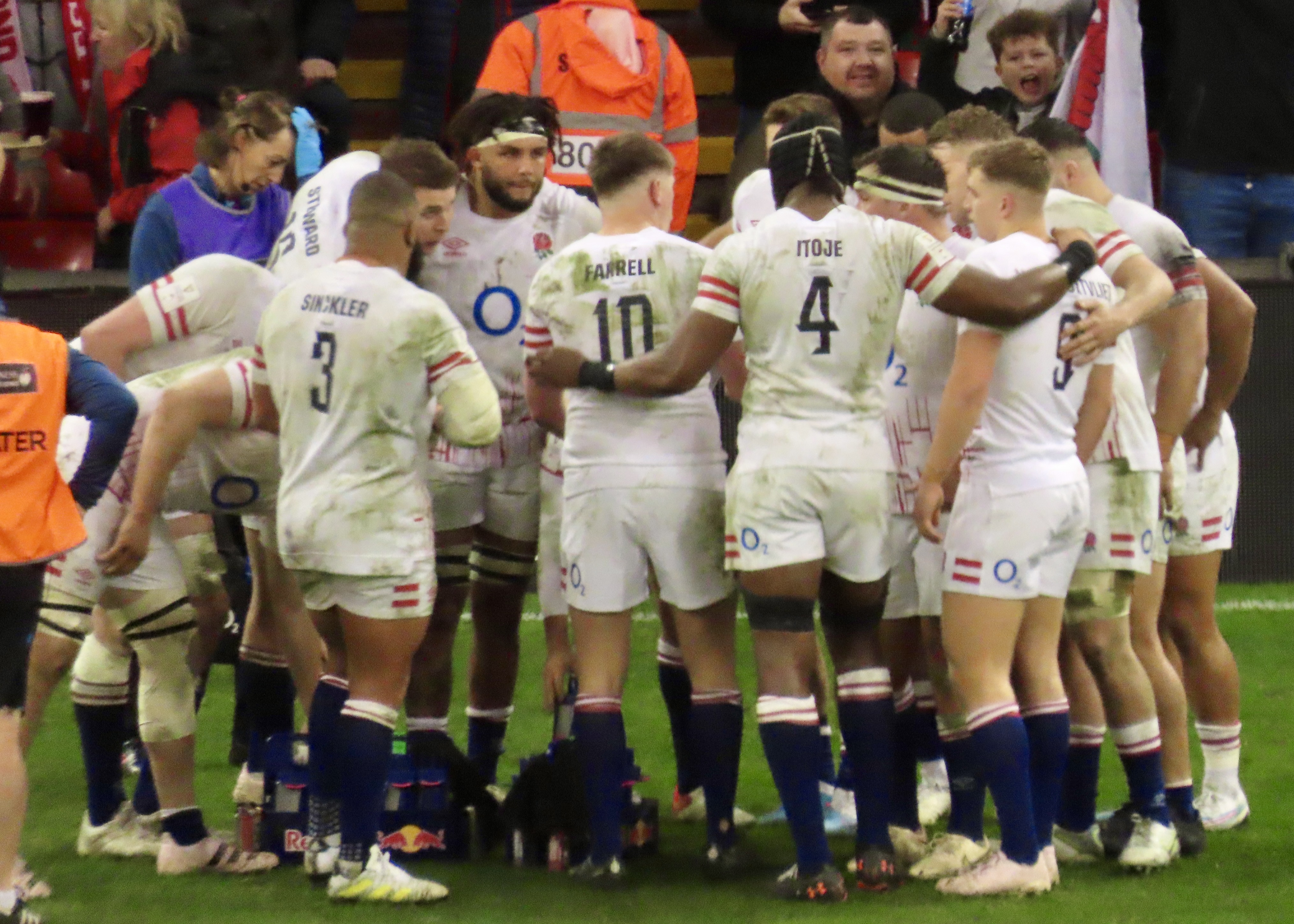 England warmed up at the end we were sitting – good to see ex league legend Kevin Sinfield involved, Mike Forshaw former league Man of Steel is in the Wales coaching set up.
