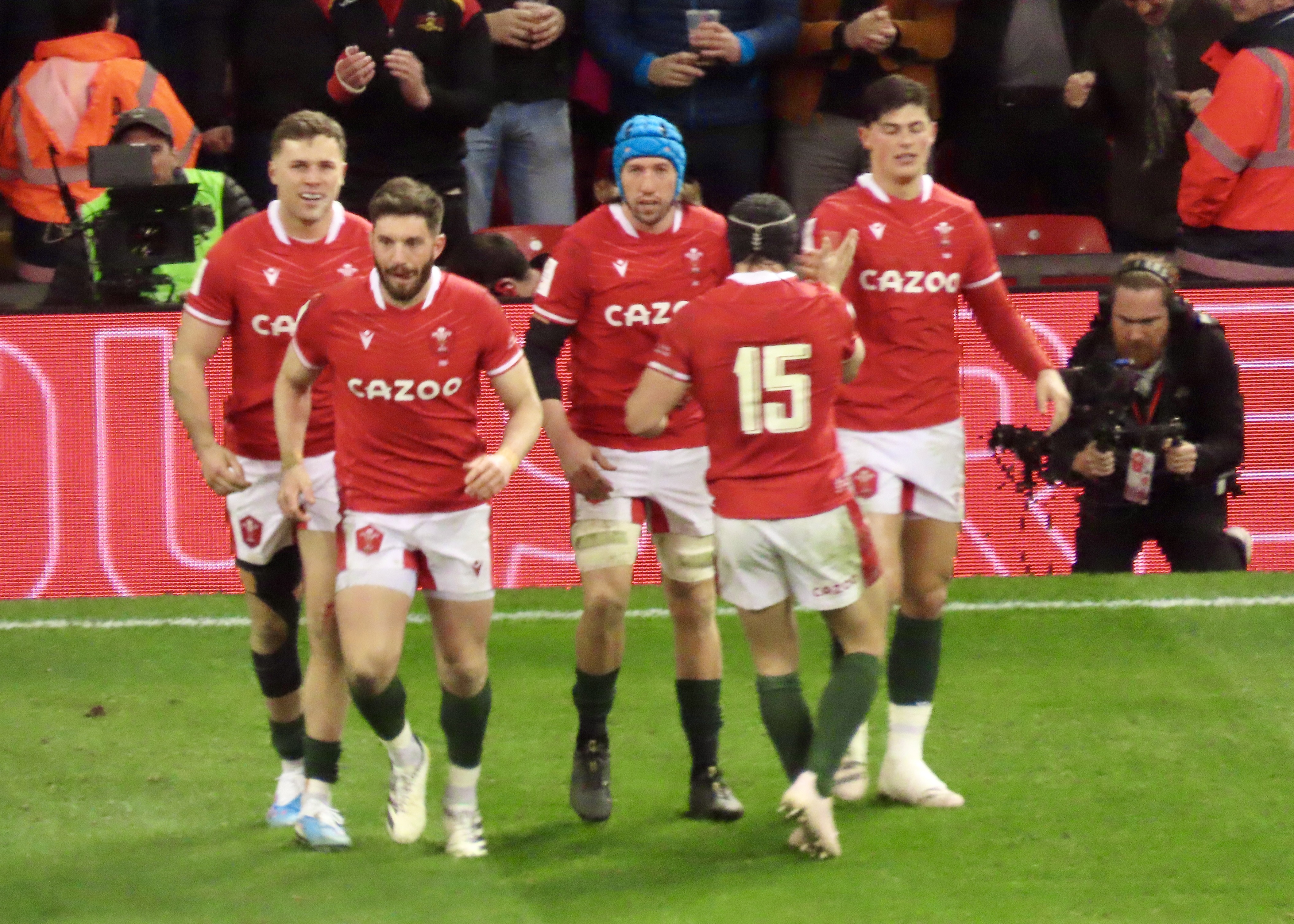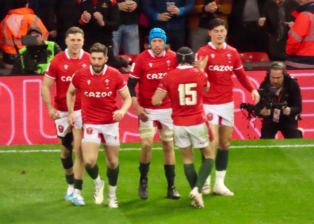 I’d taken my brother, Ian, for his first visit to the Principality Stadium and being the pessimist he thought Wales might score just before half-time to take the lead, they didn’t do that, Lewis Ludlum won a very important penalty. But a Malins pass was taken by Louis Rees Zammit who was not to be stopped, he soared down the pitch to score. Wales did indeed take the lead minutes into the second half.