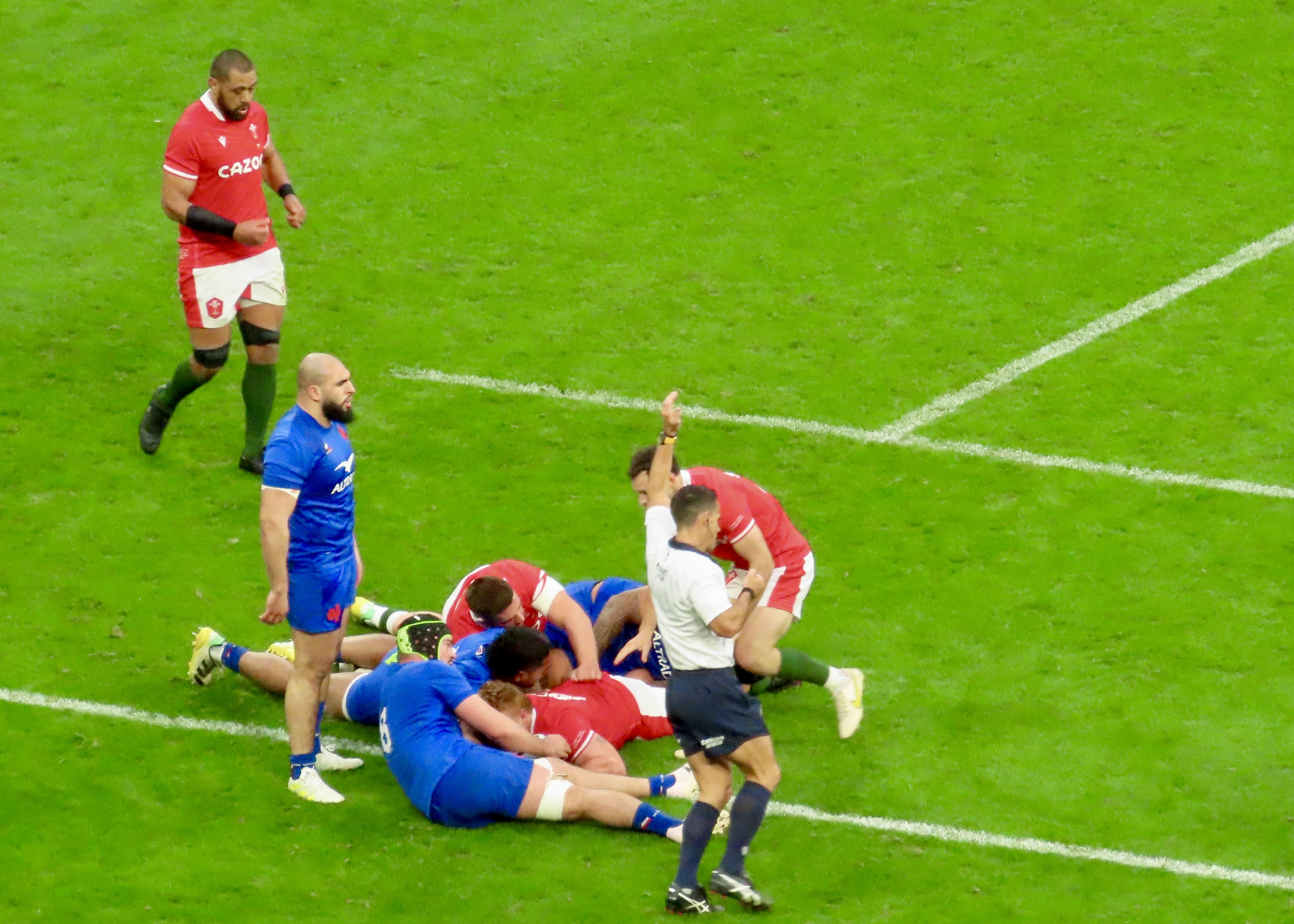 That wa sit as far as the scoring was concerned in the first half, the teams went in on France 20 Wales 7. The score in the second half was a creditable (for Wales) 21 apiece. Uini Atonia opened the scoring for France in the second half, a big man he must be incredibly hard to stop!