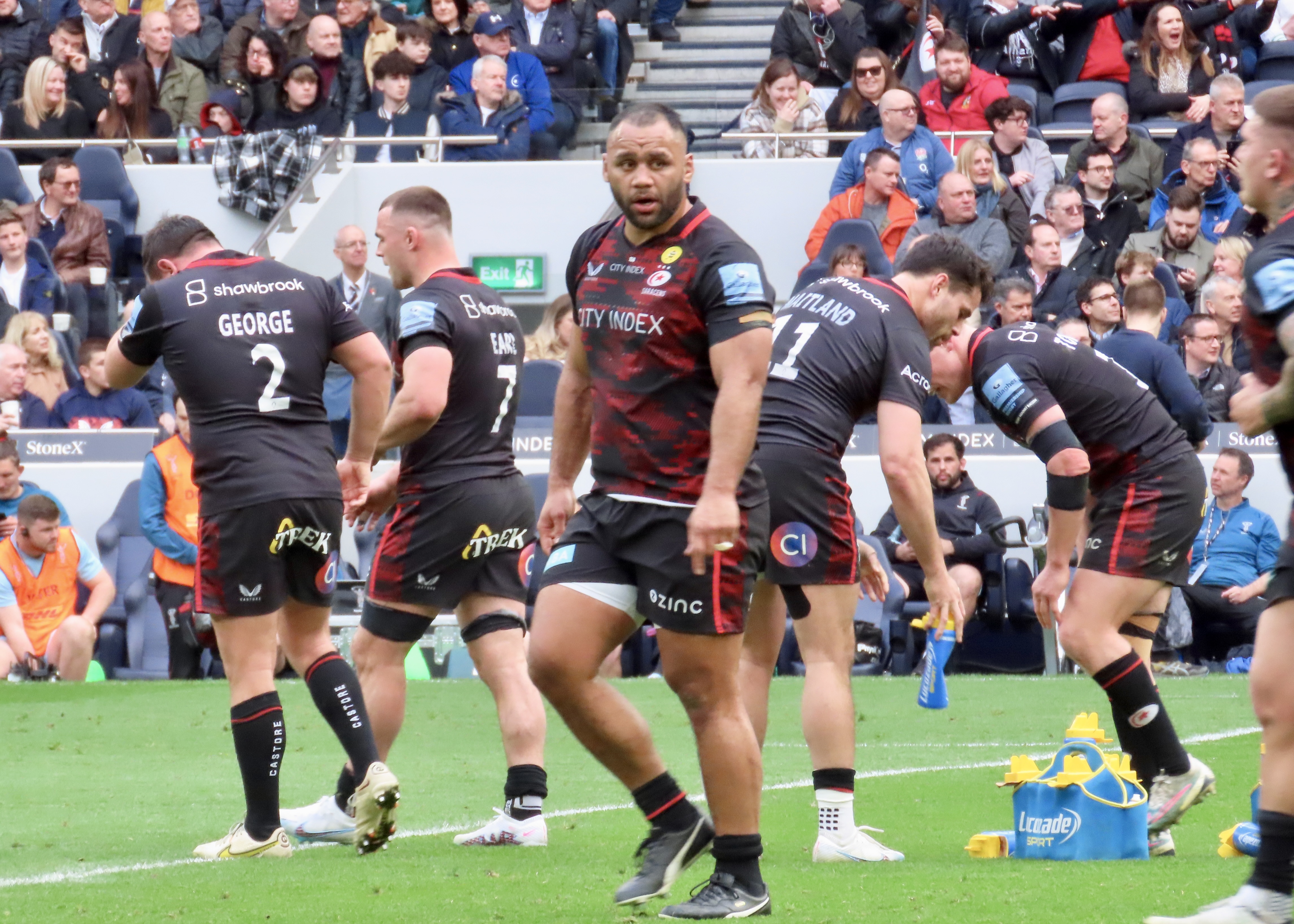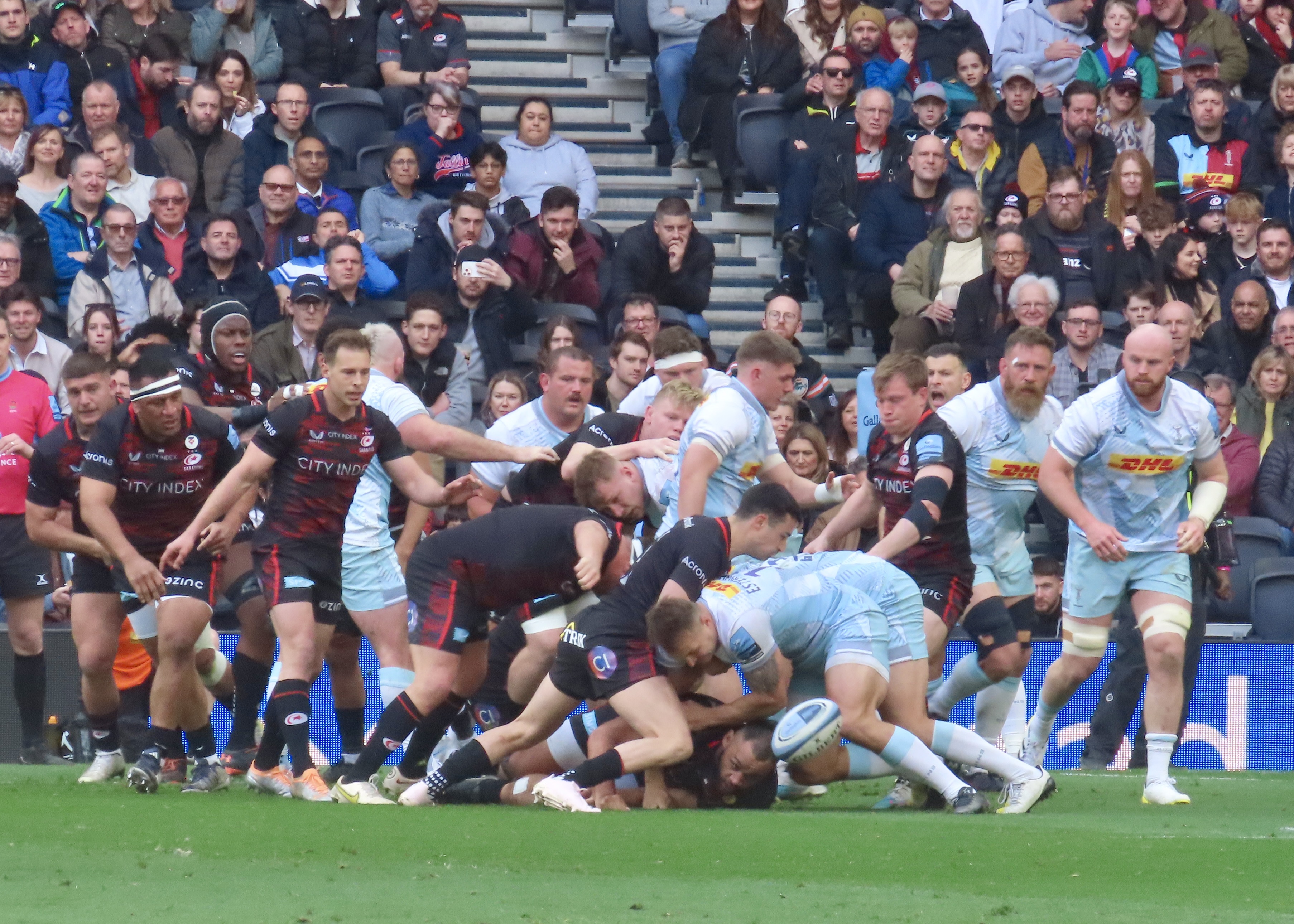 Both teams had their full squads available barring injuries, this was bound to be an exciting match. 55,000 people took the opportunity yo visit this stadium and watch what turned out to to be a very good game of rugby. At stake for Saracens was the point they needed to ensure a home semi-final for Quins this was a chance to stay in the running for a Top 4 finish.