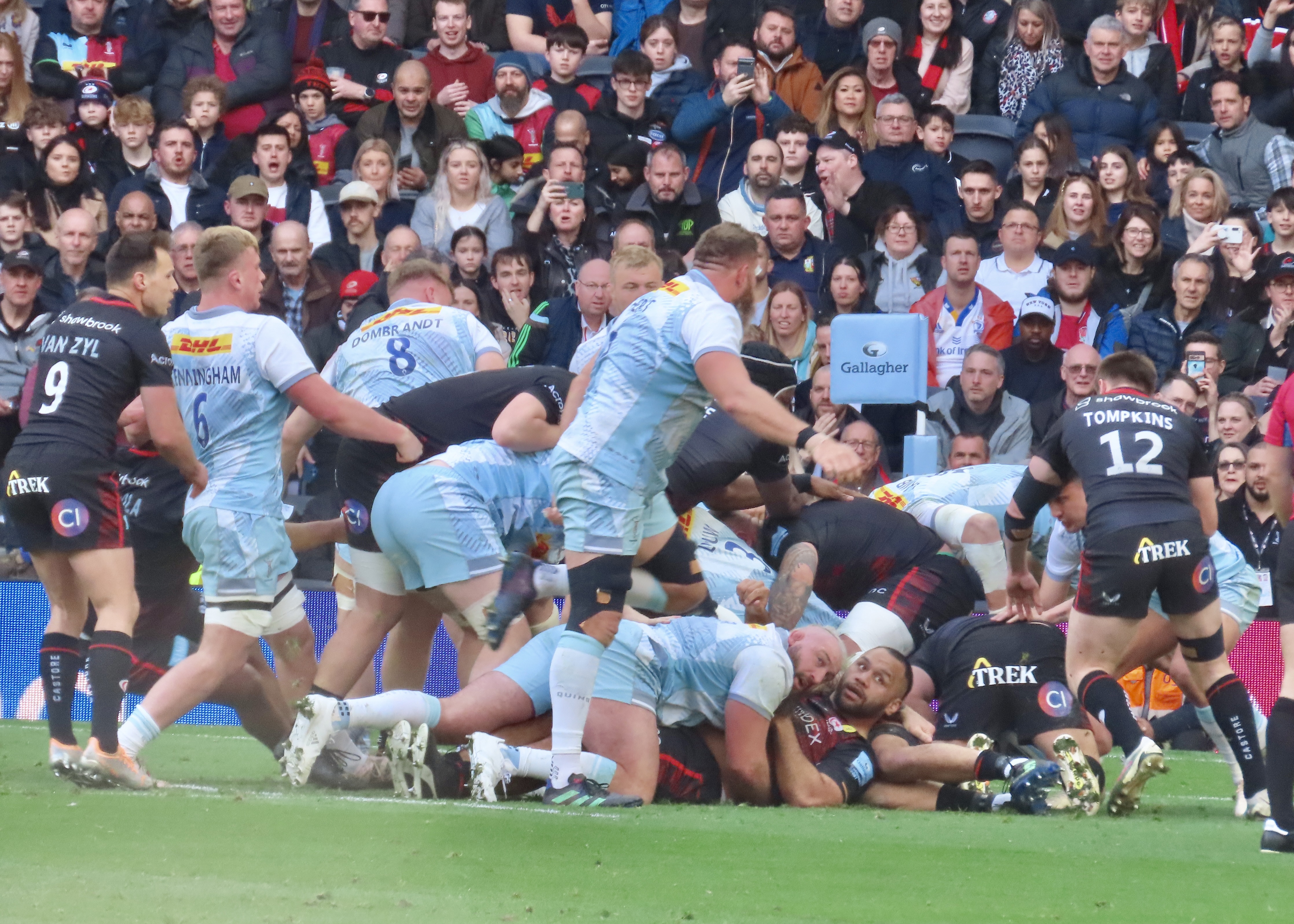 Saracens were awarded their own penalty a couple of minutes later, they won another couple of penalties, taking a line out from one of them, The ball found its way out to Alex Lozowski who took a short pass from Ben Earl, Owen Farrell added the extras.