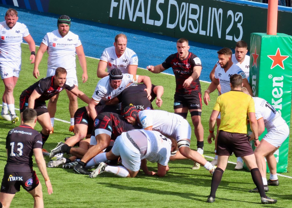 I am a fan of how Max Malins has been playing the last couple of weeks, he could easily have been Man of The Match at Spurs. He showed great strength as the clock went over 40 minutes. Somehow managing to keep hold of the ball with 3 Ospreys hanging off him, he just got the tip of the ball down, and after much checking the try was given. The conversion was good and the teams went in with just a point between them.