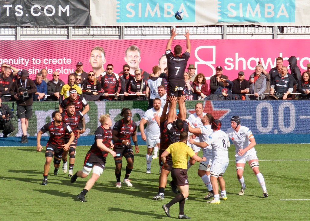 Williams next penalty opportunity was in front of the posts and the lead was now 7, not bad considering Ospreys had been a man down. Saracens fans then saw the benefits of having a player who’d started out with the intention of playing at 10, in Alex Goode, kicking the ball through to a flanker who’d make a great Centre. Andy Christie caught the ball and passed neatly to Max Malins who ran in to score, Farrell added the extras and it was 20 apiece.