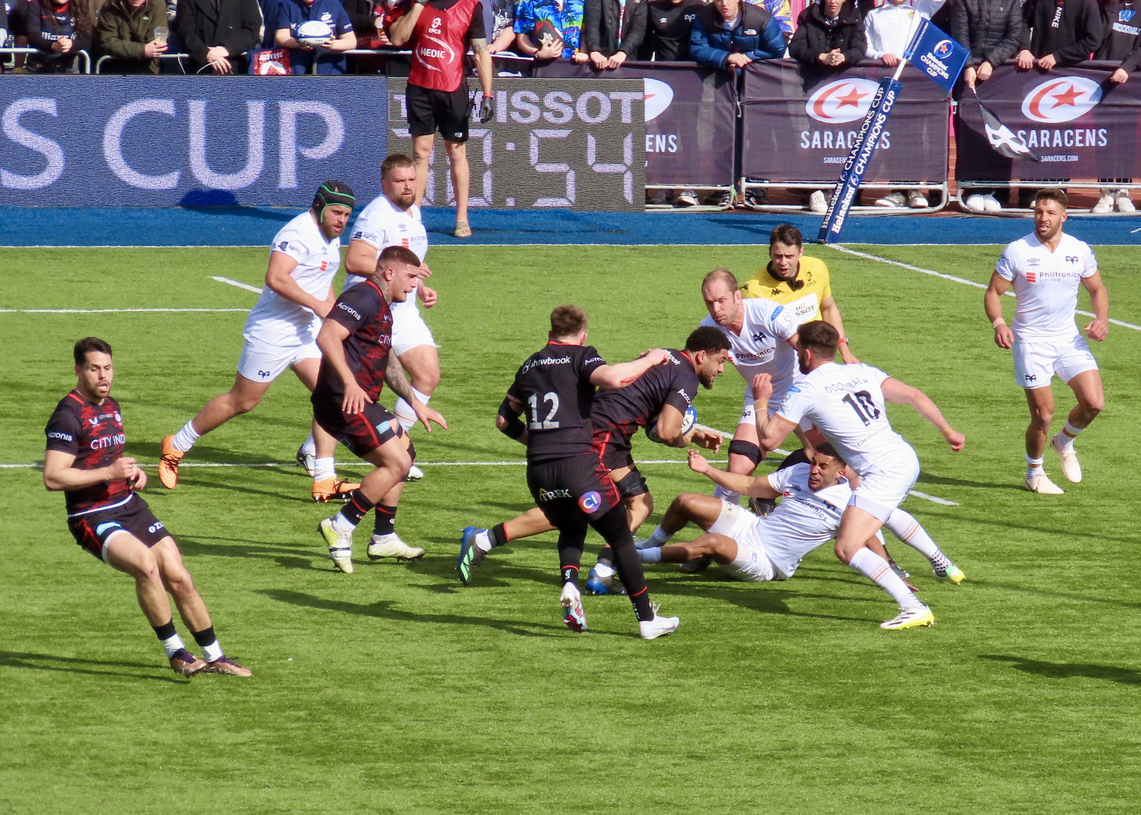 .It was the visitors who were next up on the scoreboard. Nick Tompkins who’d been playing with a fair few of the Ospreys in Paris a couple of weeks ago, lost the ball when Ethan Roots tackled him, cue prop Nicky Smith who stormed down the pitch before passing to his captain Justin Tipuric, who also showed his speed, Tipuric was taken down but the ball was recycled and Owen Williams somehow flicked the ball up to Kearan Williams from the ground, having been provider, Williams (K) became scorer, the other Williams (O) converted the try and the score was Saracens 3 Ospreys 14 after 23 minutes.
