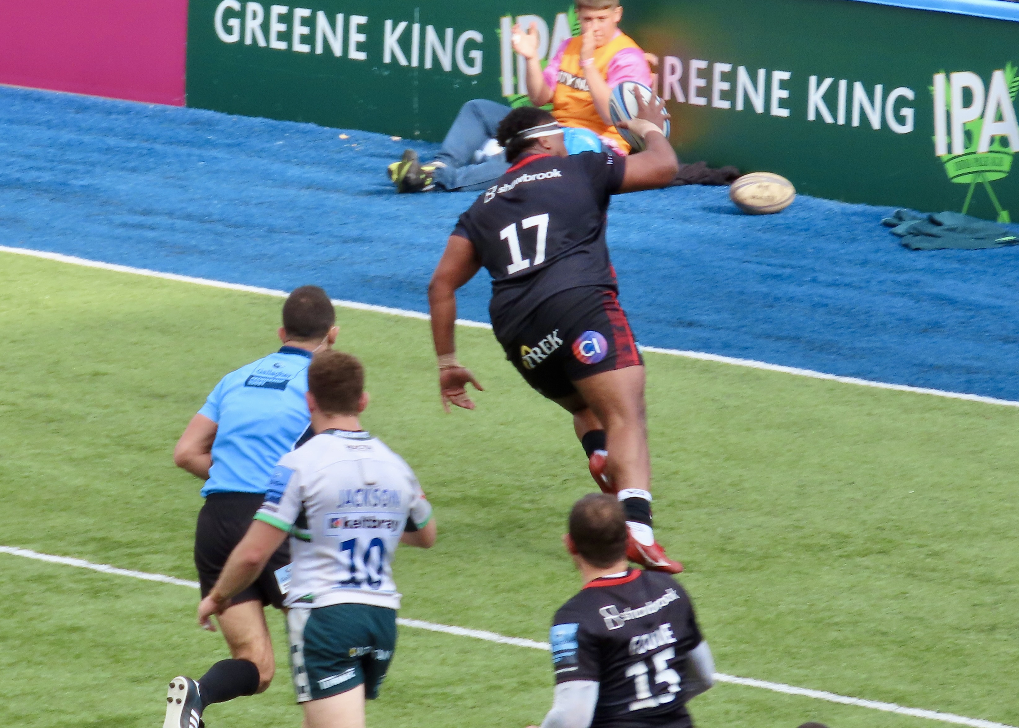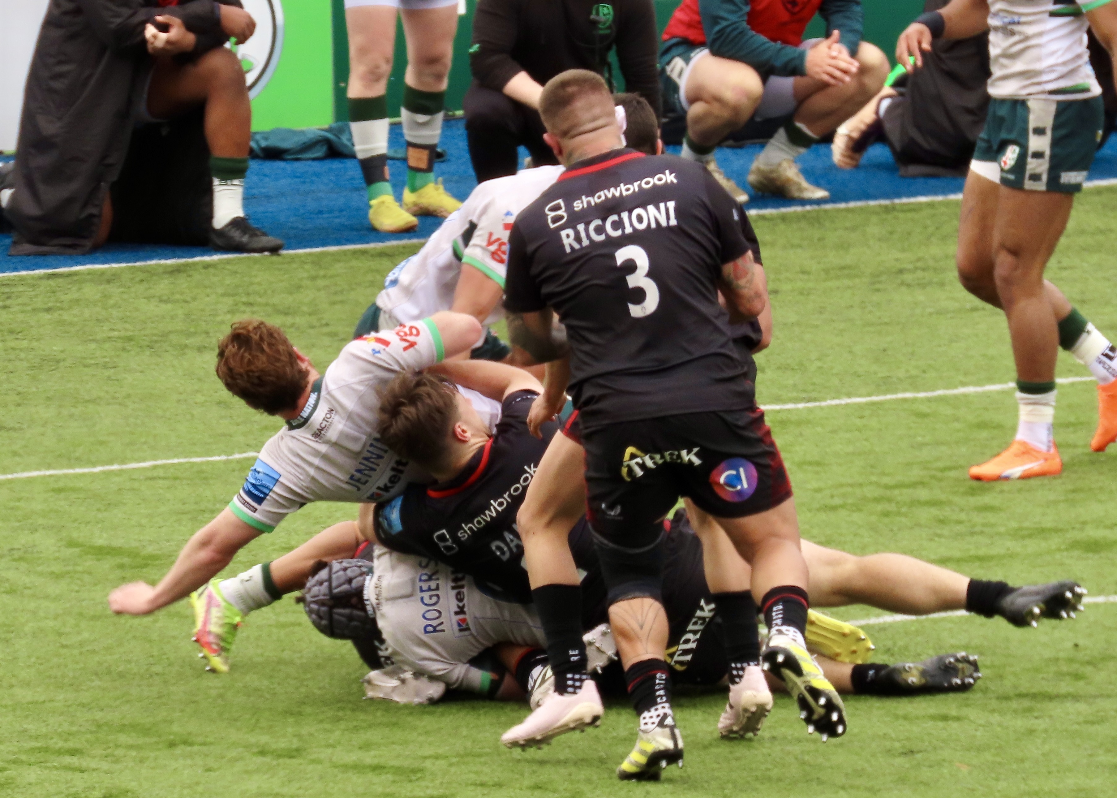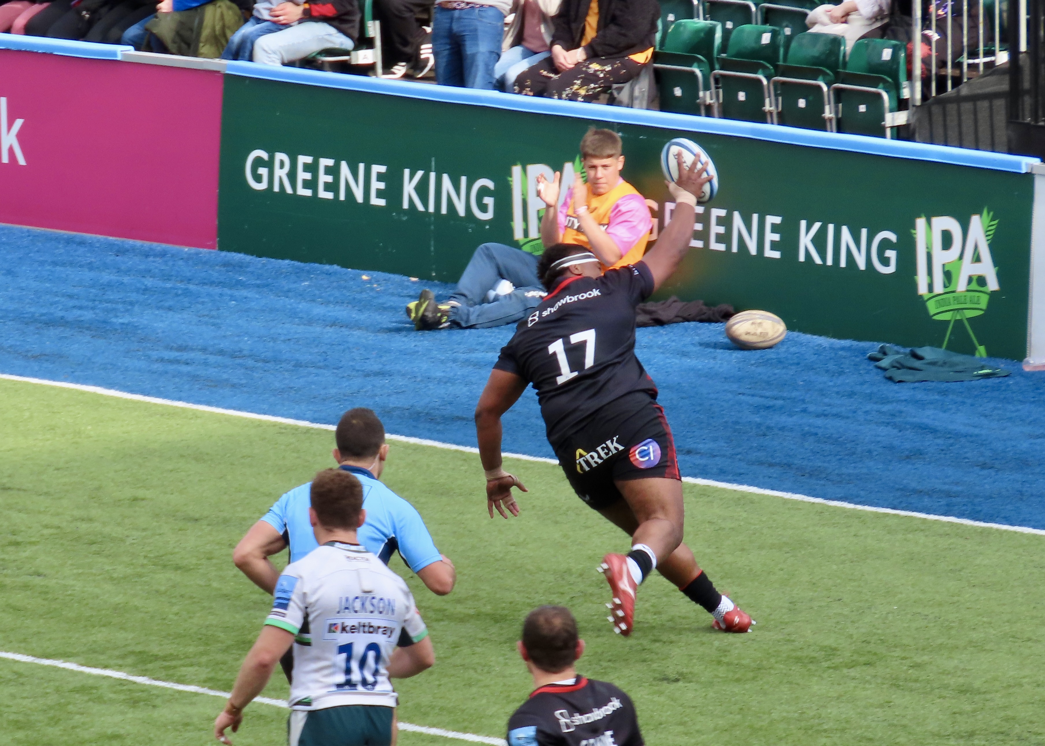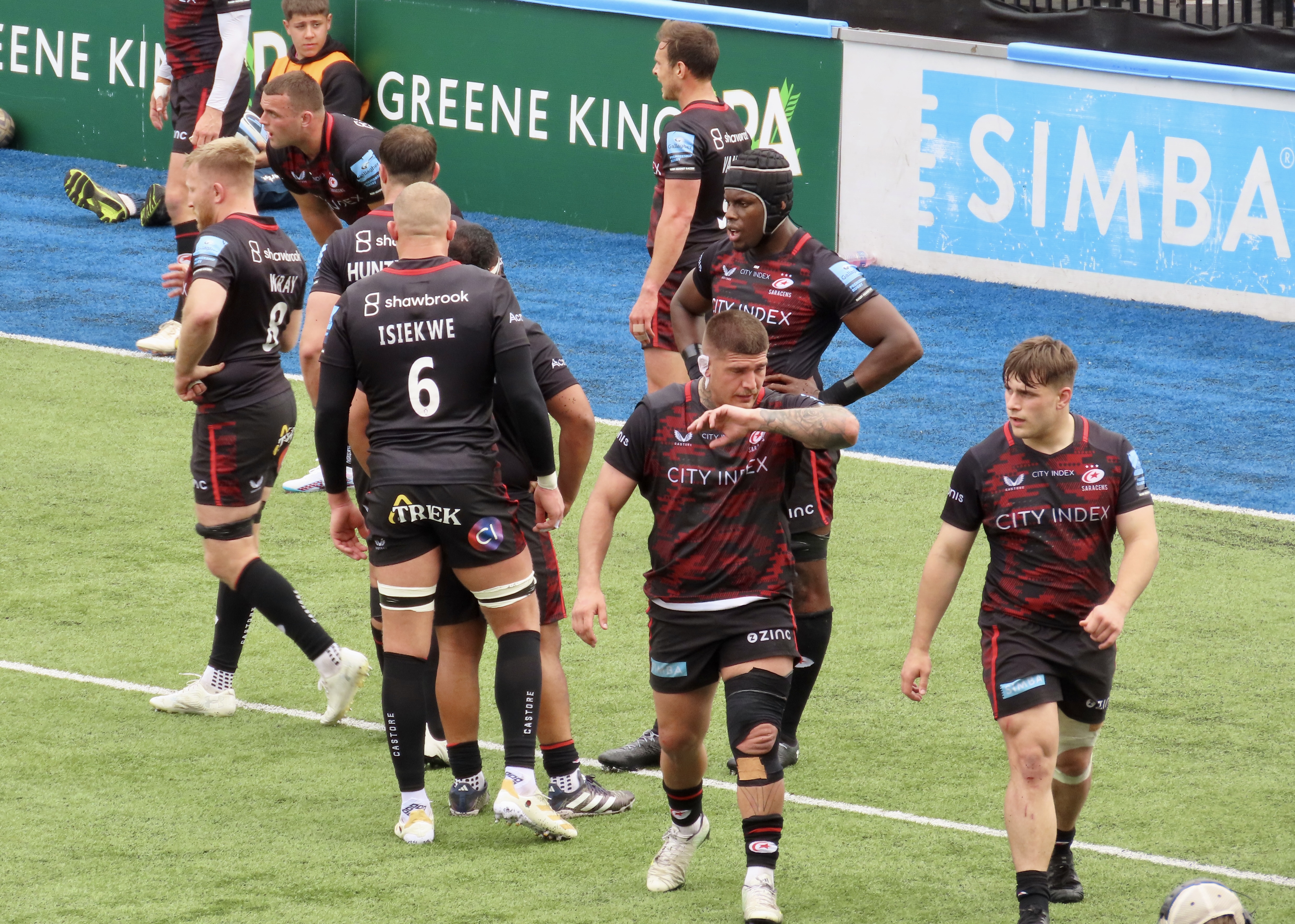 Max Malins looked to have scored but the check showed that he didn’t have control of the ball as he went over the line, that was the closest Saracens had been to a 5 pointer. Saracens had however moved to a spell of more possession and Farrell kicked another penalty with 35 minutes on the clock. That closed the gap to 4.