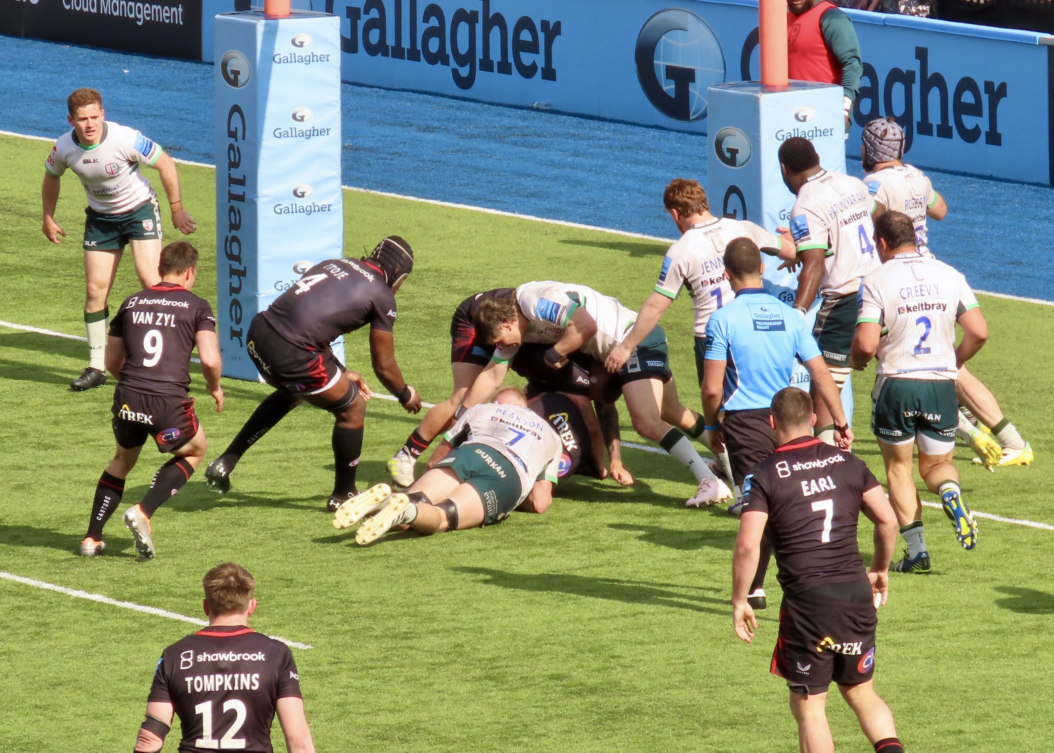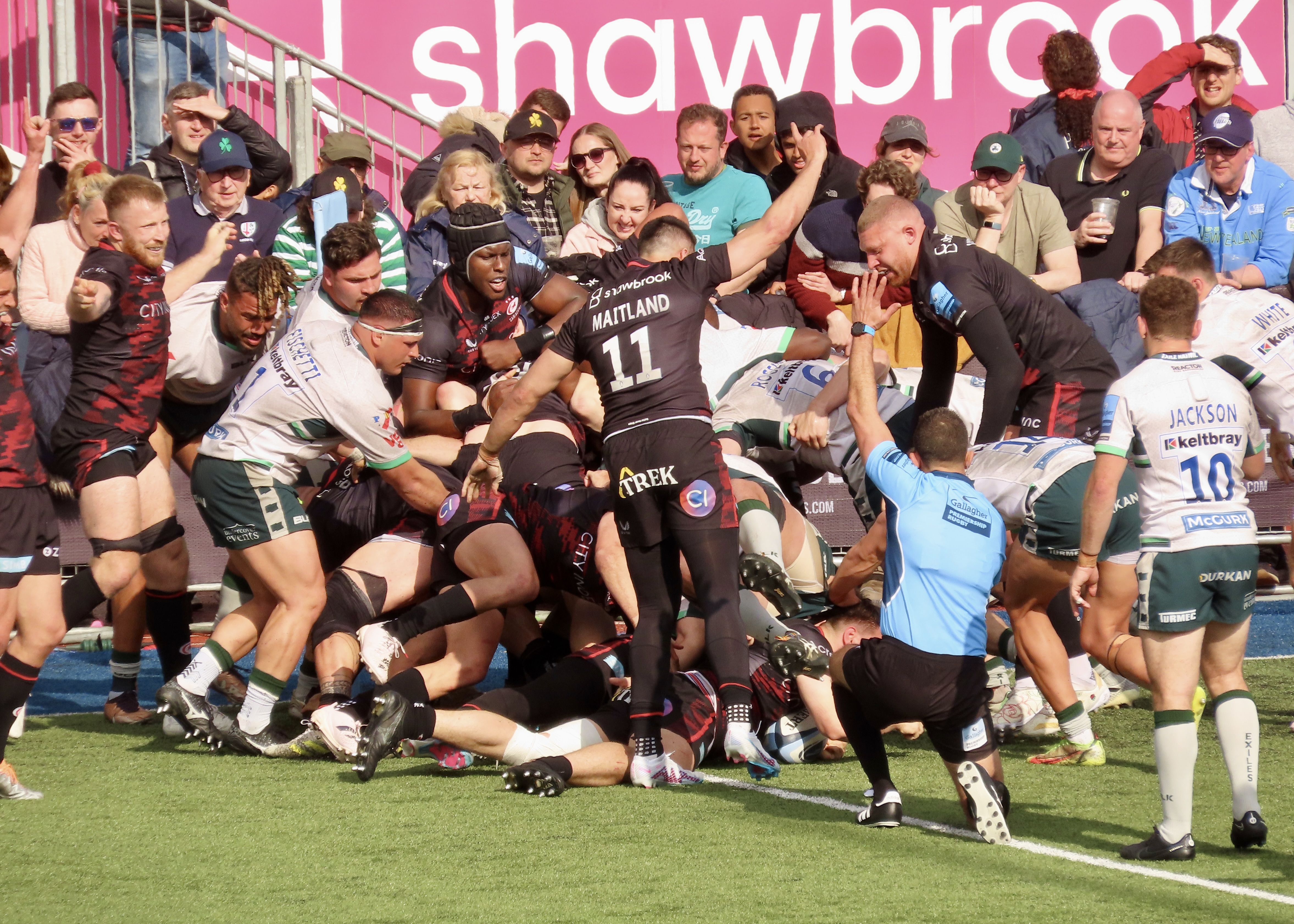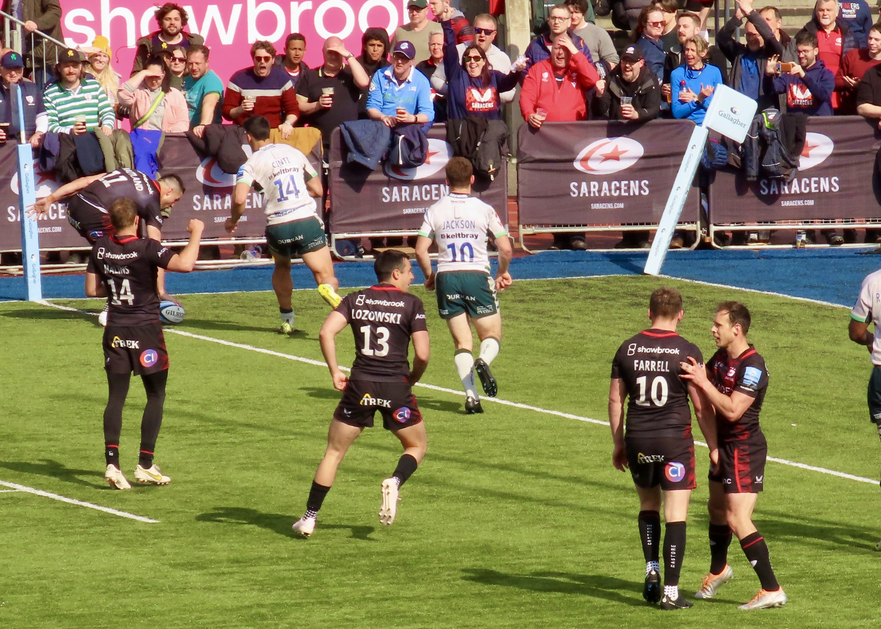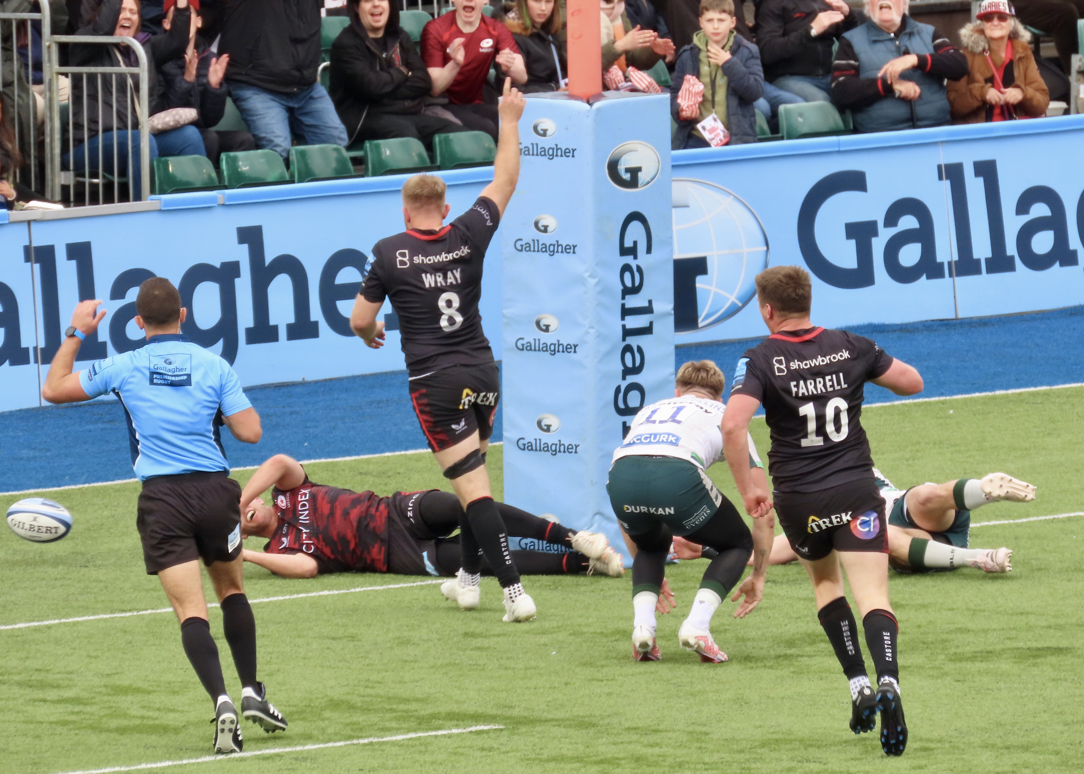 Max Malins looked to have scored but the check showed that he didn’t have control of the ball as he went over the line, that was the closest Saracens had been to a 5 pointer. Saracens had however moved to a spell of more possession and Farrell kicked another penalty with 35 minutes on the clock. That closed the gap to 4.