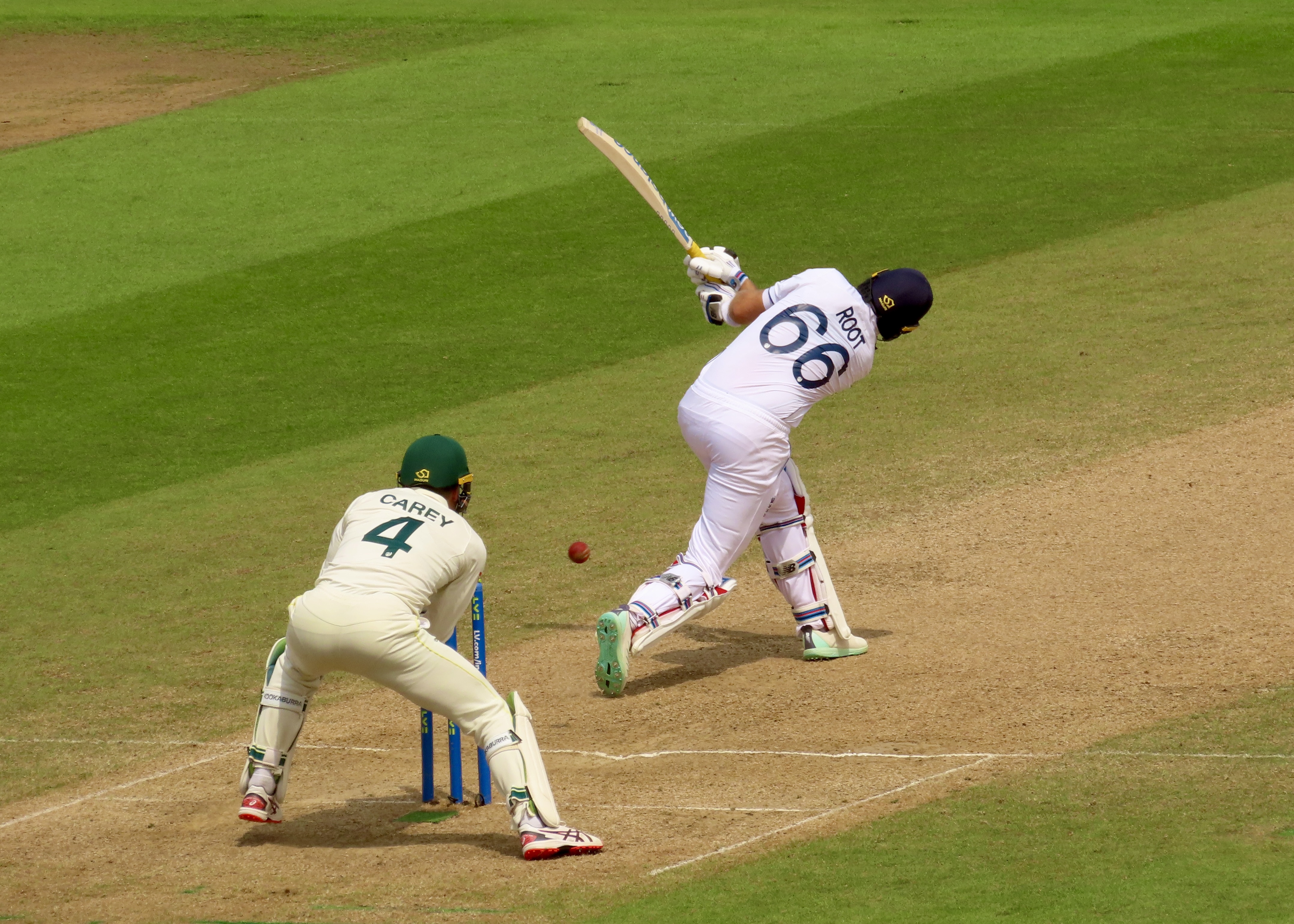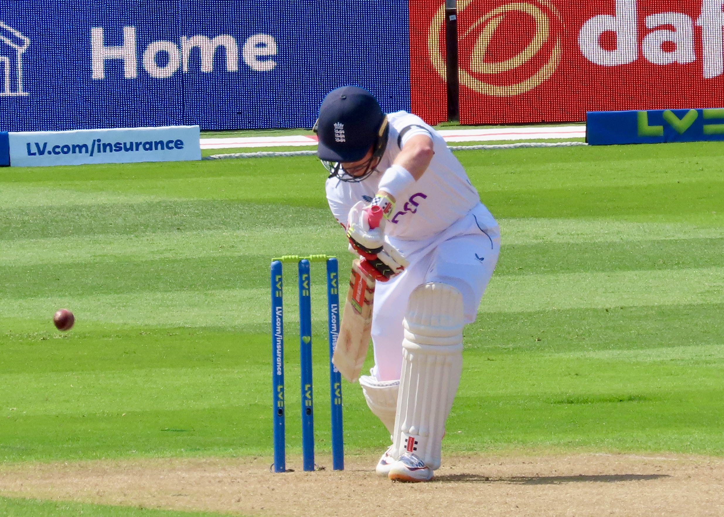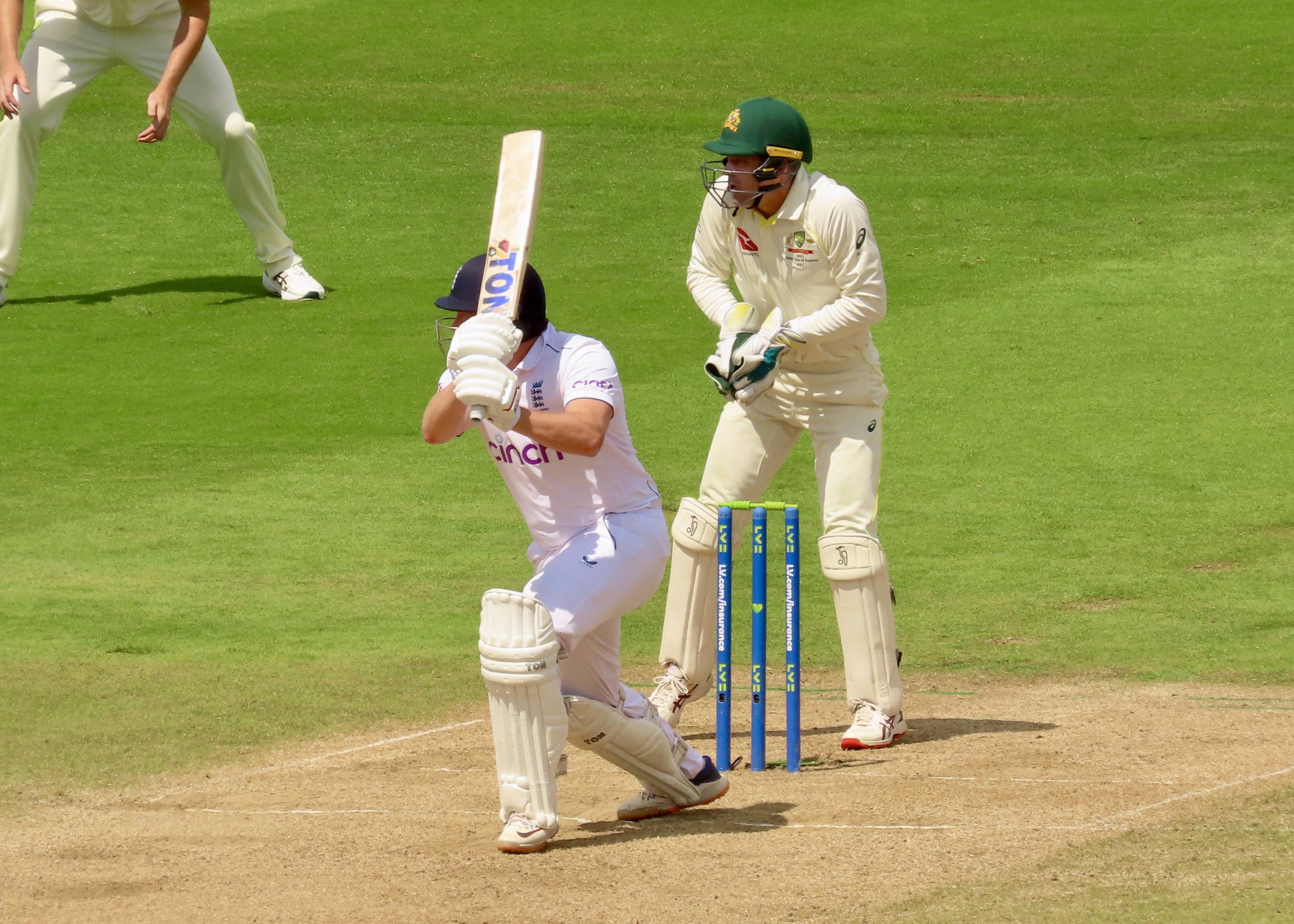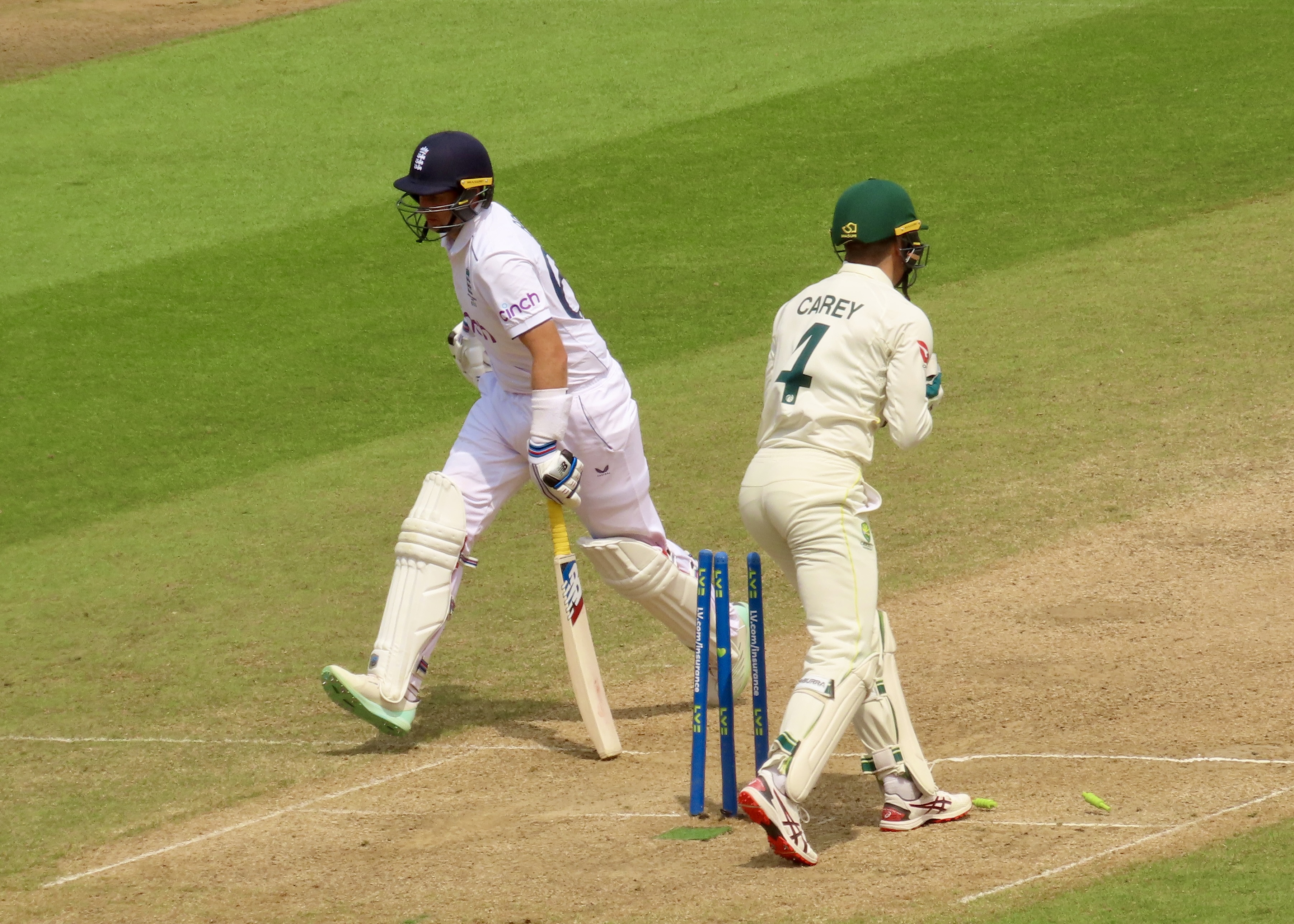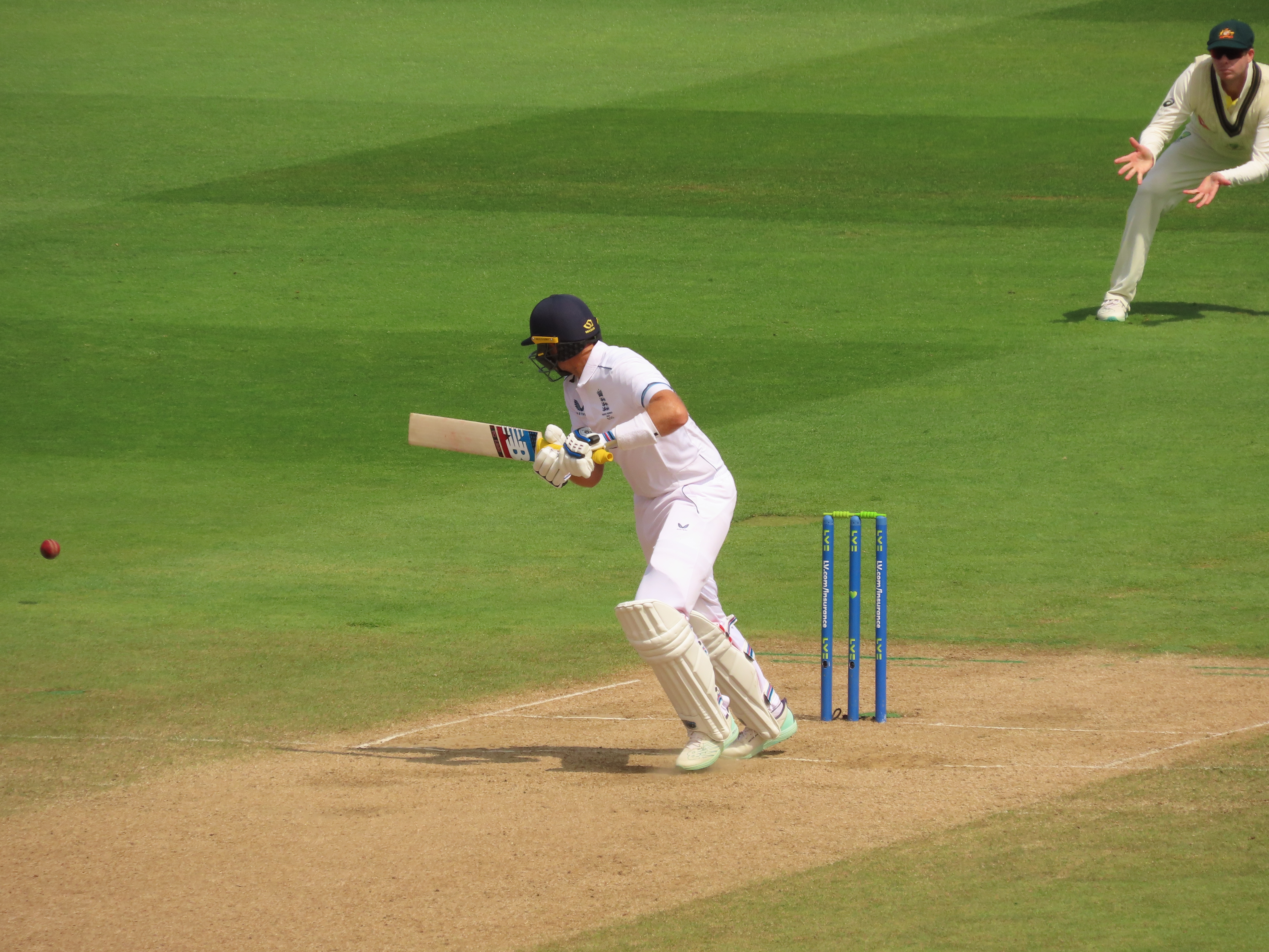 Day 1 saw Ben Stokes win the toss and elect to bat, we’d see that BB early on; except to a great degree we didn’t, what looked like very negative fields set by Cummins stopped the runs fest to a degree. Zak Crawley set the tone with the first ball however driving the ball for a very good 4, he went on to score 61 from 73 balls, a great start for the opener who had had much criticism from England fans, me included. The innings of the day was courtesy of Joe Root he scored 118 from 152 balls and delighted the England fans in the crowd, he and Johnny Bairstow shared a partnership of 121 for the 6th wicket, but the 3 mentioned were really the only batters with meaningful runs to their name. Several batters gave away their wickets including Stokes and Moeen Ali. To the surprise of everyone in the ground Stokes declared on 393 for 8, at the point Root was seeing the ball like a football. Australia faced 4 overs and lost no wickets. Travis Head dropped a catch and missed a ball going to the boundary, happily for him not in front of the Hollies, but ‘special attention’ started for him on Day 1 and would continue throughout. THIS WAS JOE ROOT’S DAY!