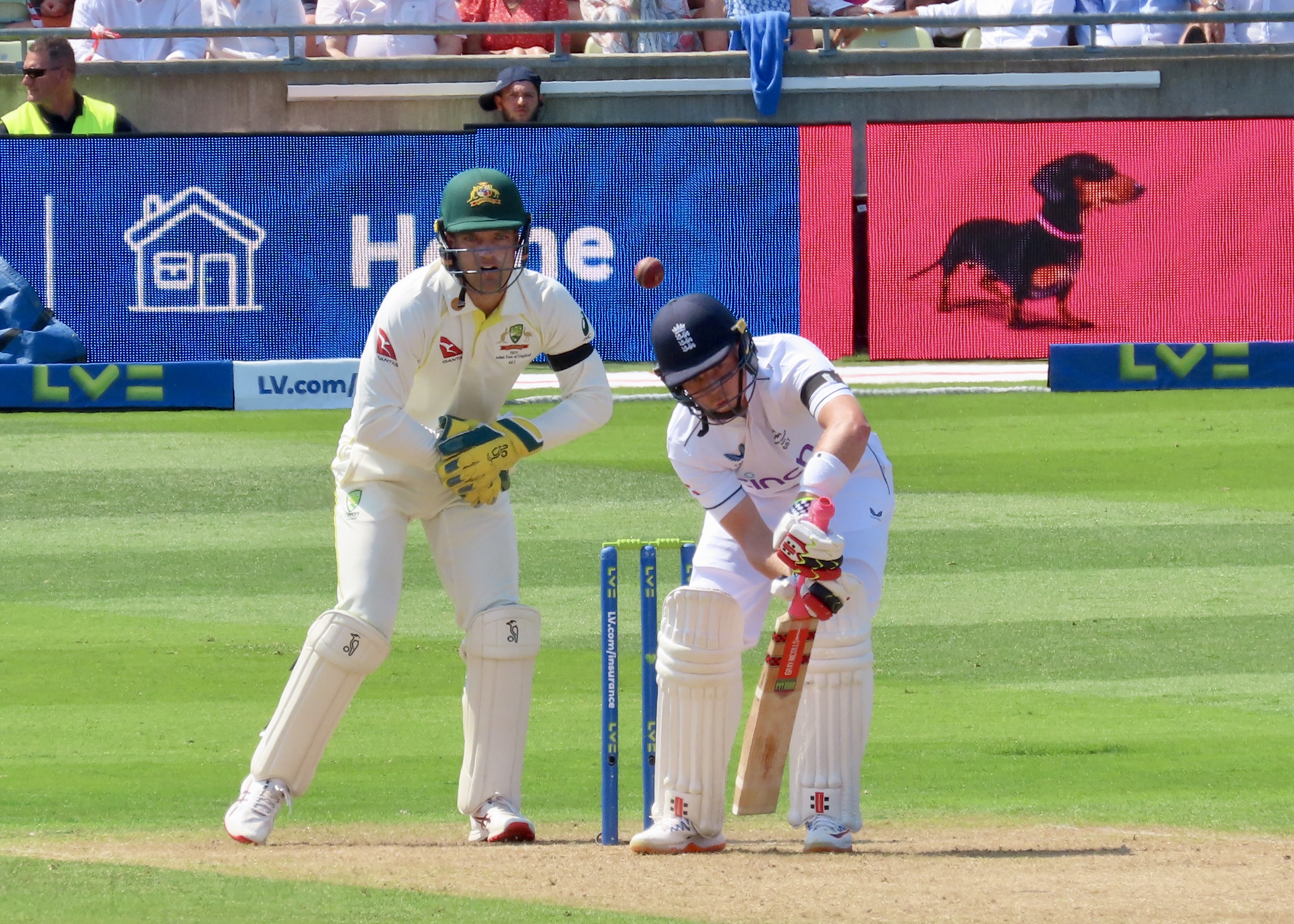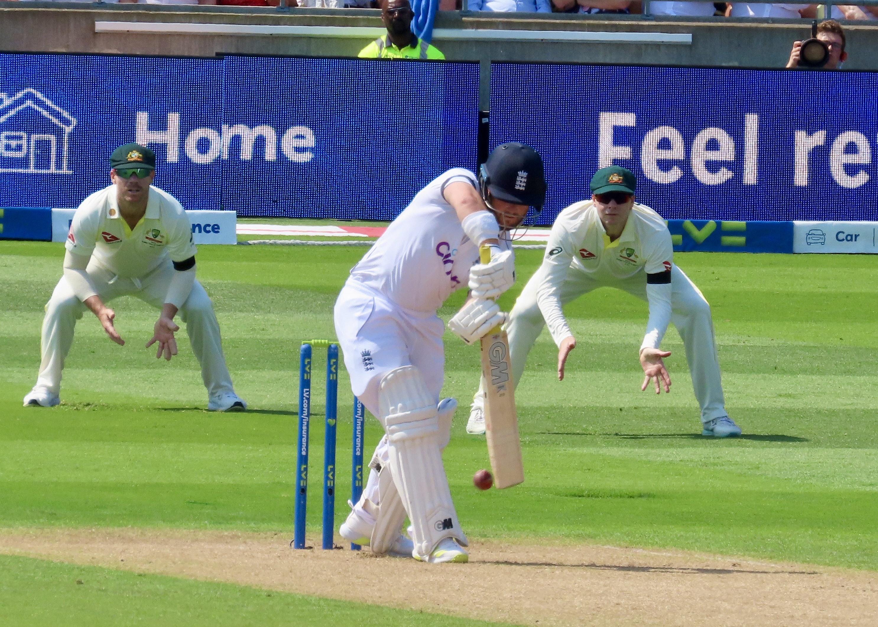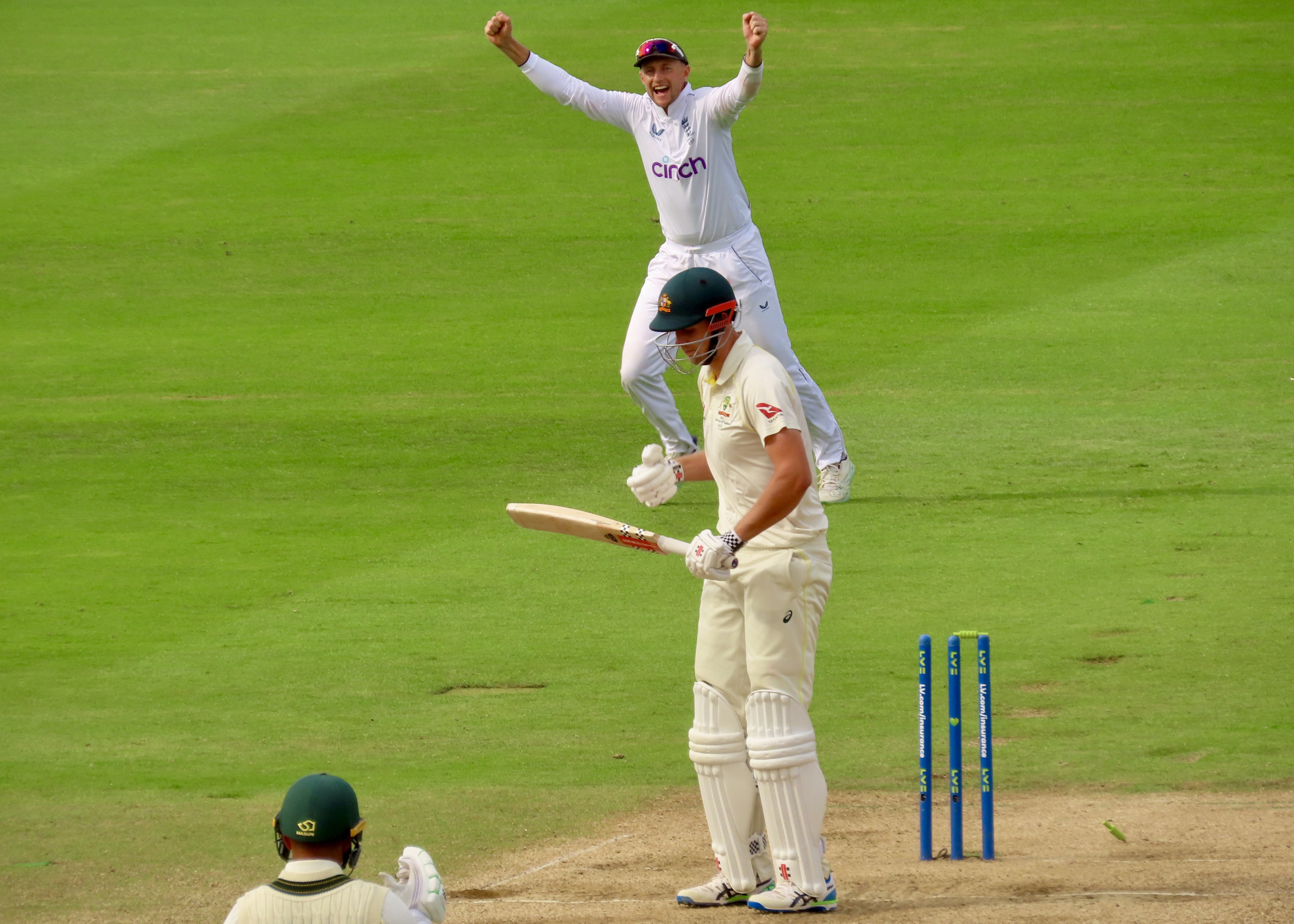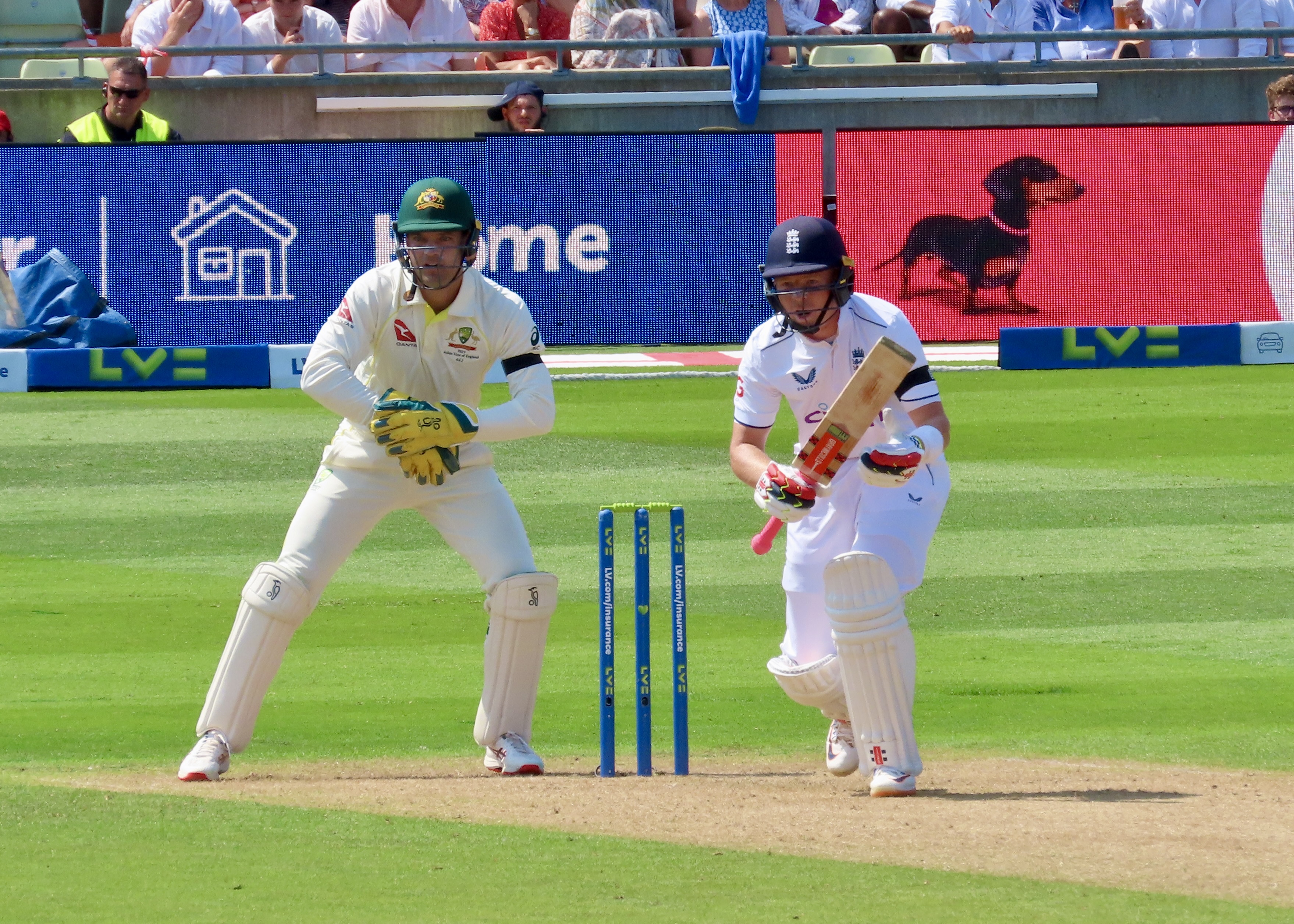 Day 1 saw Ben Stokes win the toss and elect to bat, we’d see that BB early on; except to a great degree we didn’t, what looked like very negative fields set by Cummins stopped the runs fest to a degree. Zak Crawley set the tone with the first ball however driving the ball for a very good 4, he went on to score 61 from 73 balls, a great start for the opener who had had much criticism from England fans, me included. The innings of the day was courtesy of Joe Root he scored 118 from 152 balls and delighted the England fans in the crowd, he and Johnny Bairstow shared a partnership of 121 for the 6th wicket, but the 3 mentioned were really the only batters with meaningful runs to their name. Several batters gave away their wickets including Stokes and Moeen Ali. To the surprise of everyone in the ground Stokes declared on 393 for 8, at the point Root was seeing the ball like a football. Australia faced 4 overs and lost no wickets. Travis Head dropped a catch and missed a ball going to the boundary, happily for him not in front of the Hollies, but ‘special attention’ started for him on Day 1 and would continue throughout. THIS WAS JOE ROOT’S DAY!