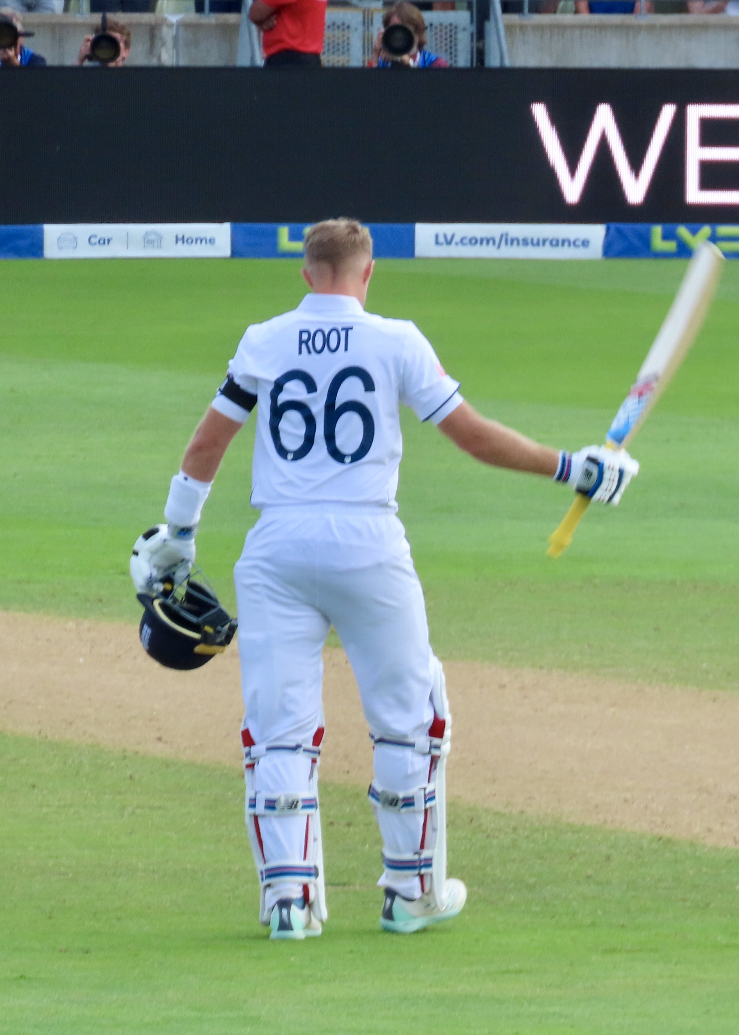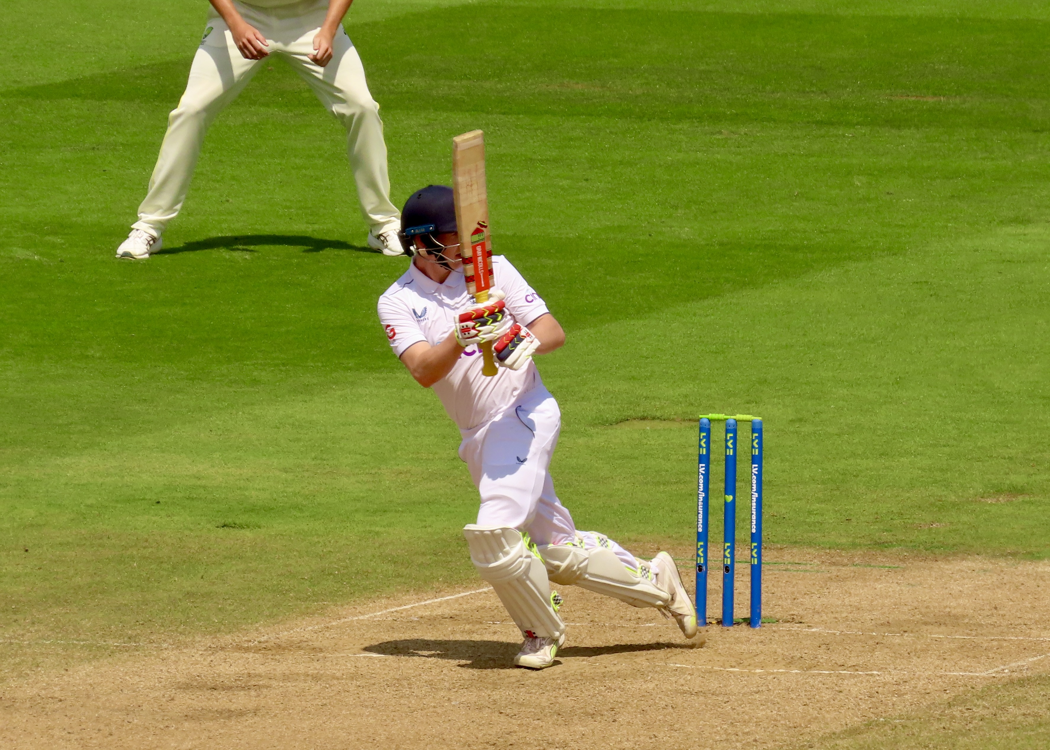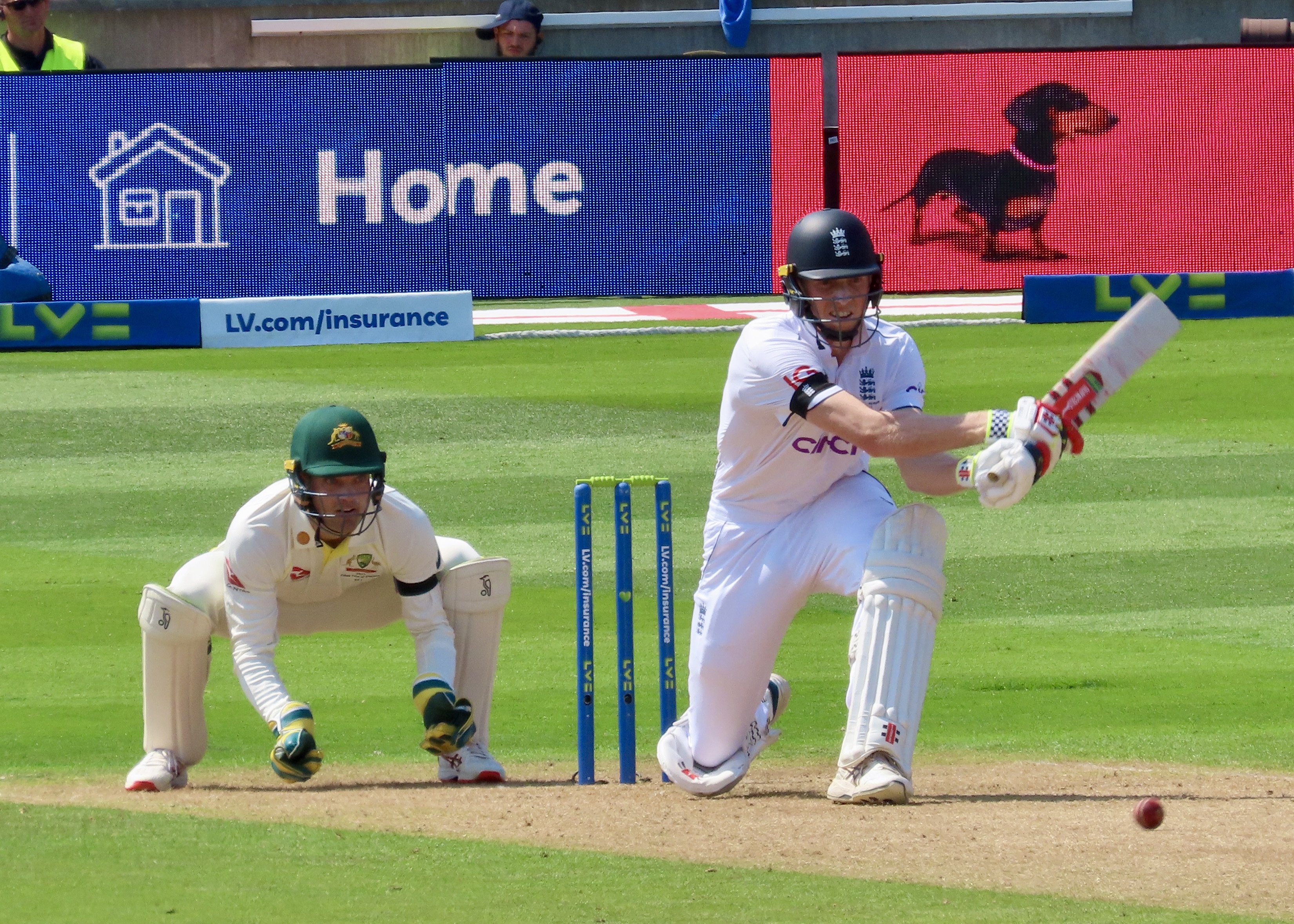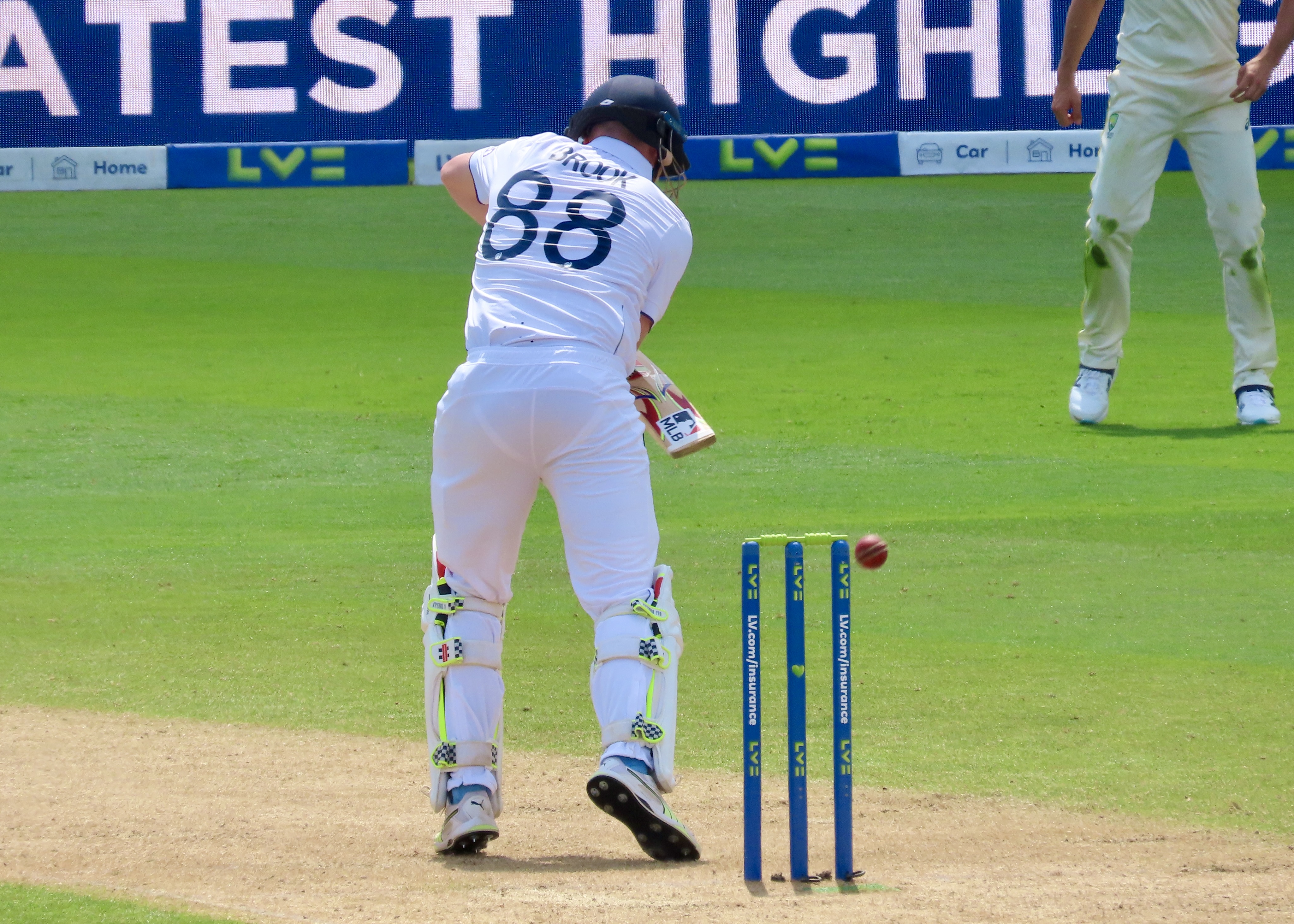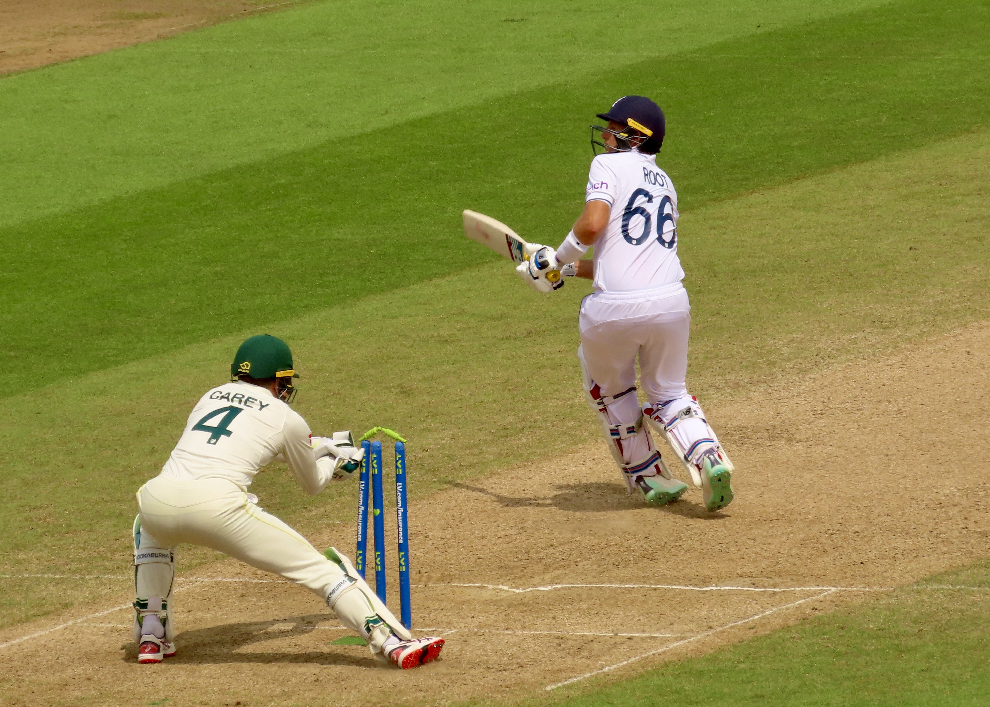 Day 1 saw Ben Stokes win the toss and elect to bat, we’d see that BB early on; except to a great degree we didn’t, what looked like very negative fields set by Cummins stopped the runs fest to a degree. Zak Crawley set the tone with the first ball however driving the ball for a very good 4, he went on to score 61 from 73 balls, a great start for the opener who had had much criticism from England fans, me included. The innings of the day was courtesy of Joe Root he scored 118 from 152 balls and delighted the England fans in the crowd, he and Johnny Bairstow shared a partnership of 121 for the 6th wicket, but the 3 mentioned were really the only batters with meaningful runs to their name. Several batters gave away their wickets including Stokes and Moeen Ali. To the surprise of everyone in the ground Stokes declared on 393 for 8, at the point Root was seeing the ball like a football. Australia faced 4 overs and lost no wickets. Travis Head dropped a catch and missed a ball going to the boundary, happily for him not in front of the Hollies, but ‘special attention’ started for him on Day 1 and would continue throughout. THIS WAS JOE ROOT’S DAY!