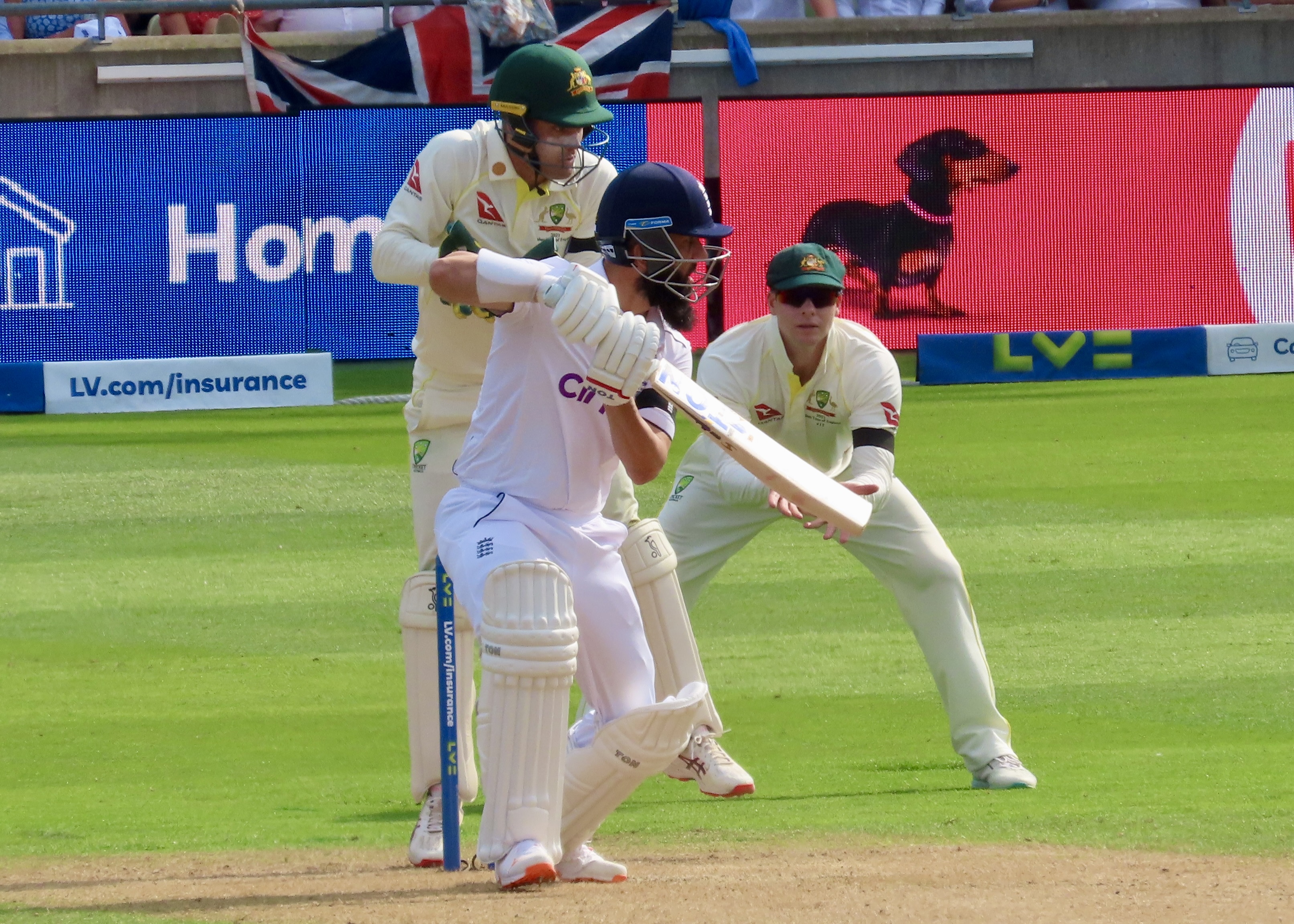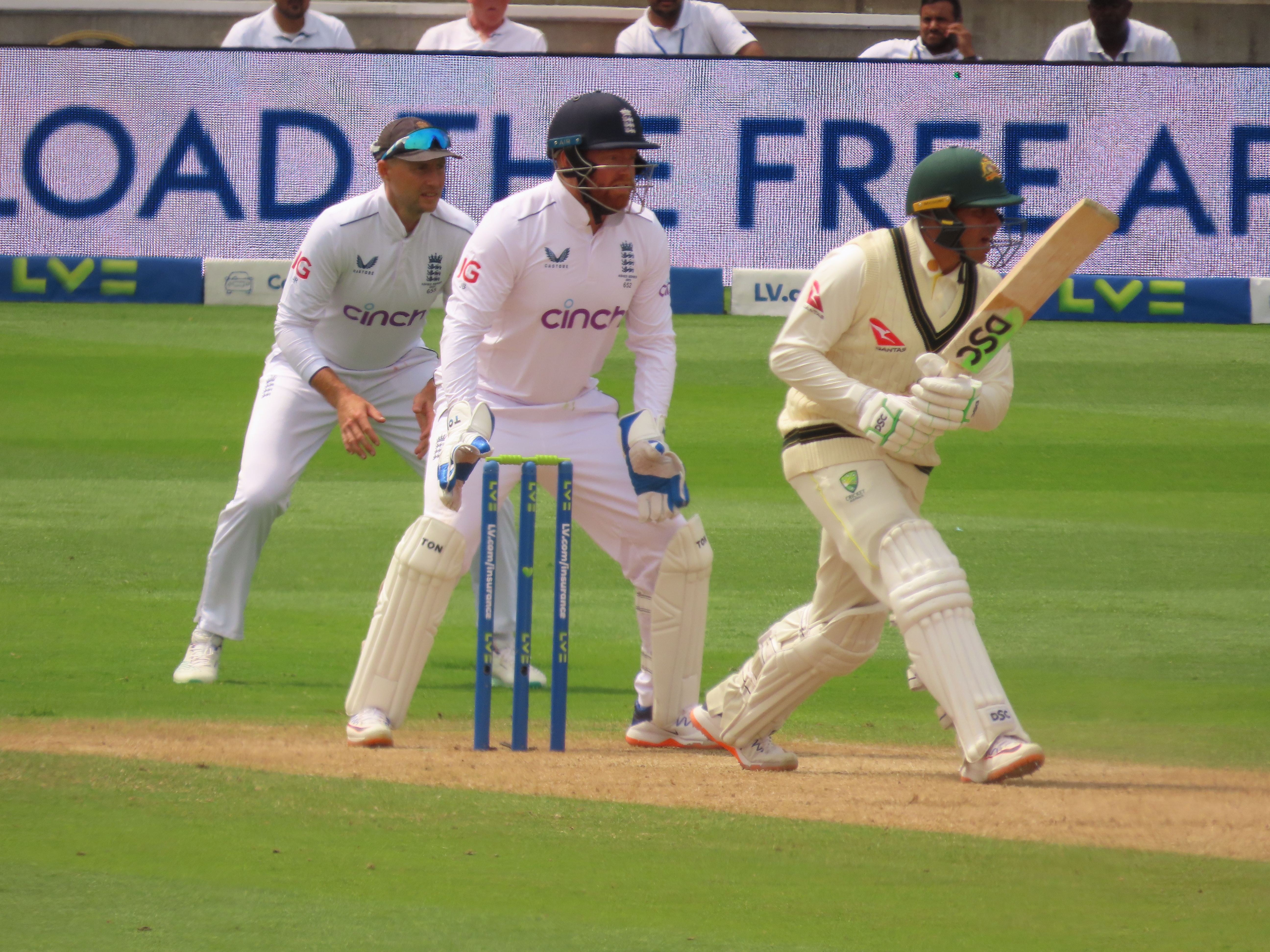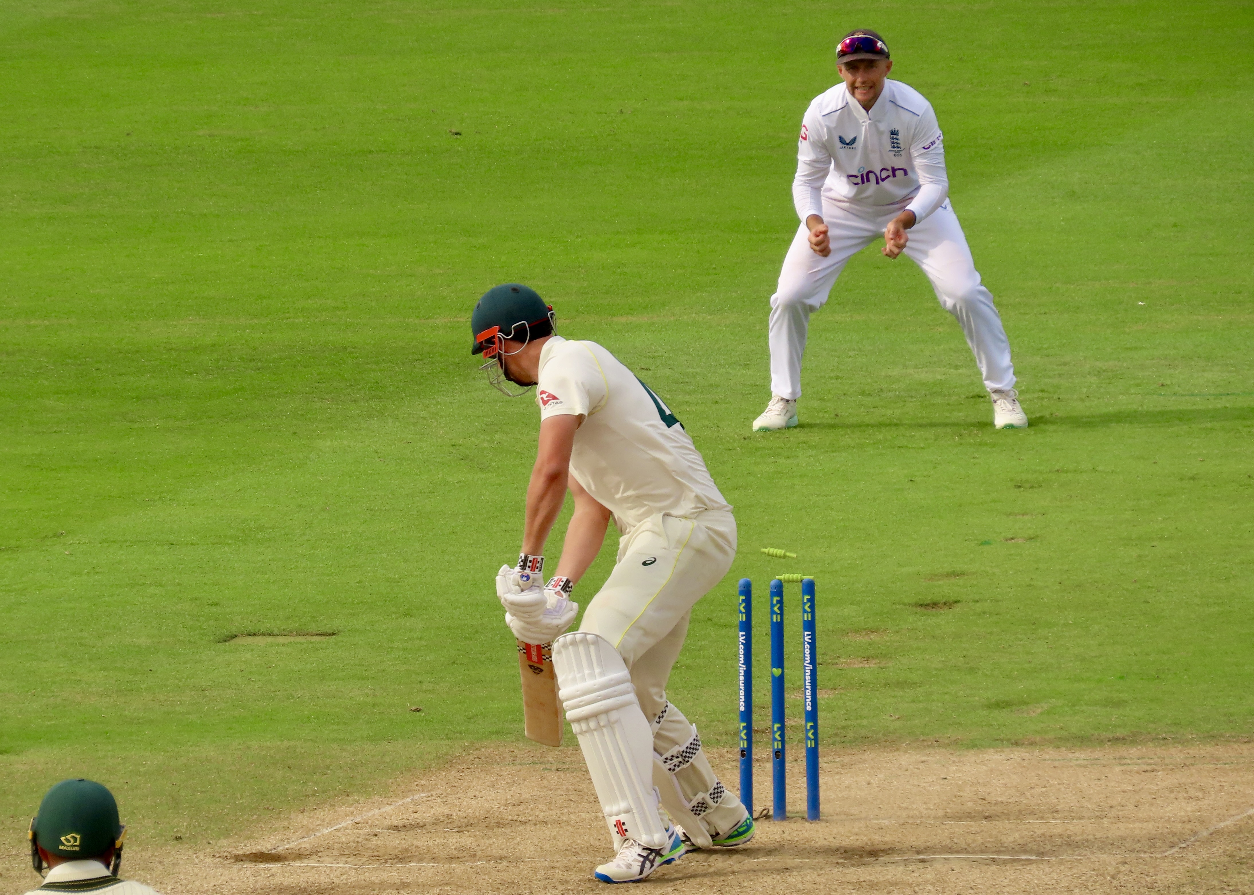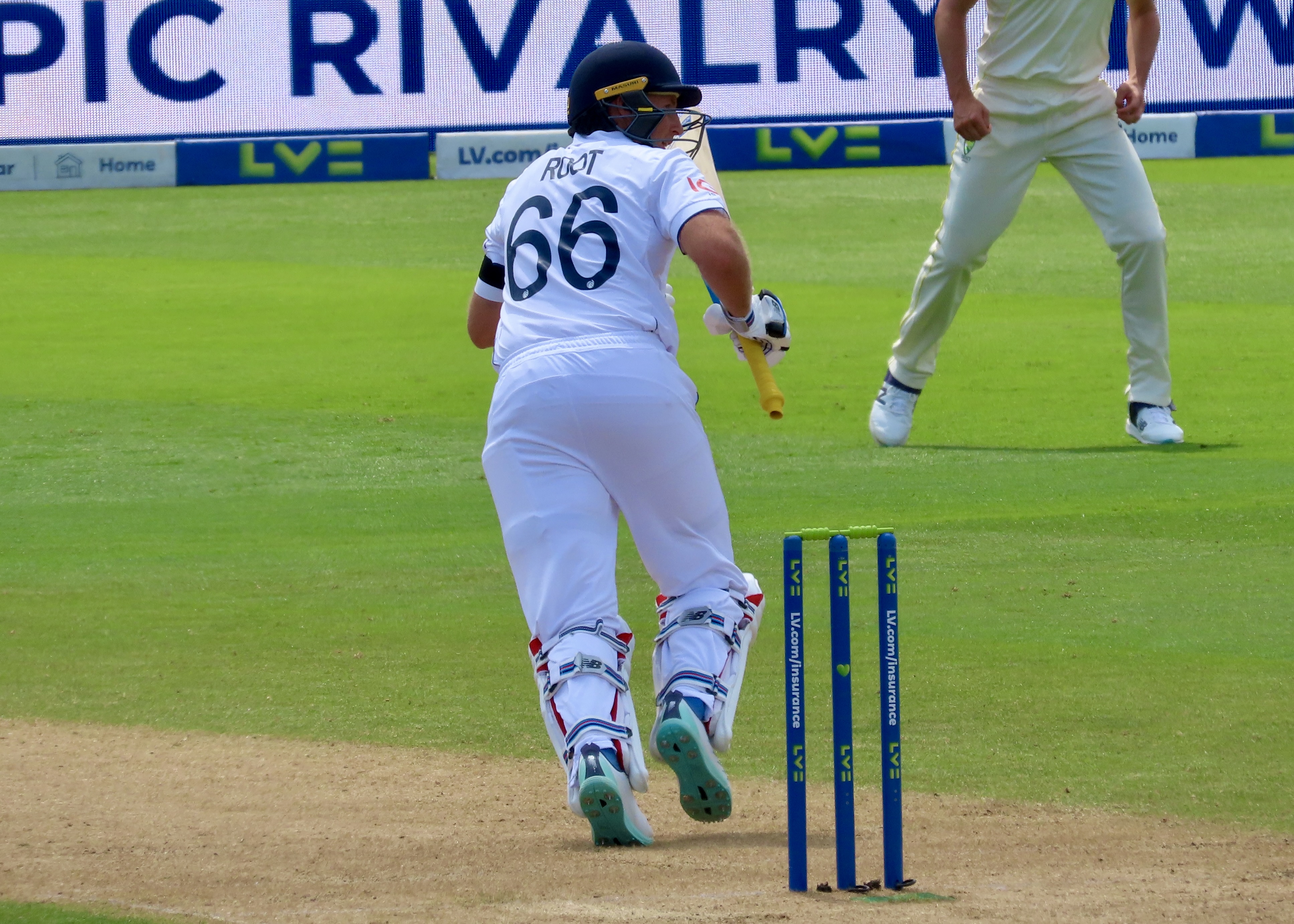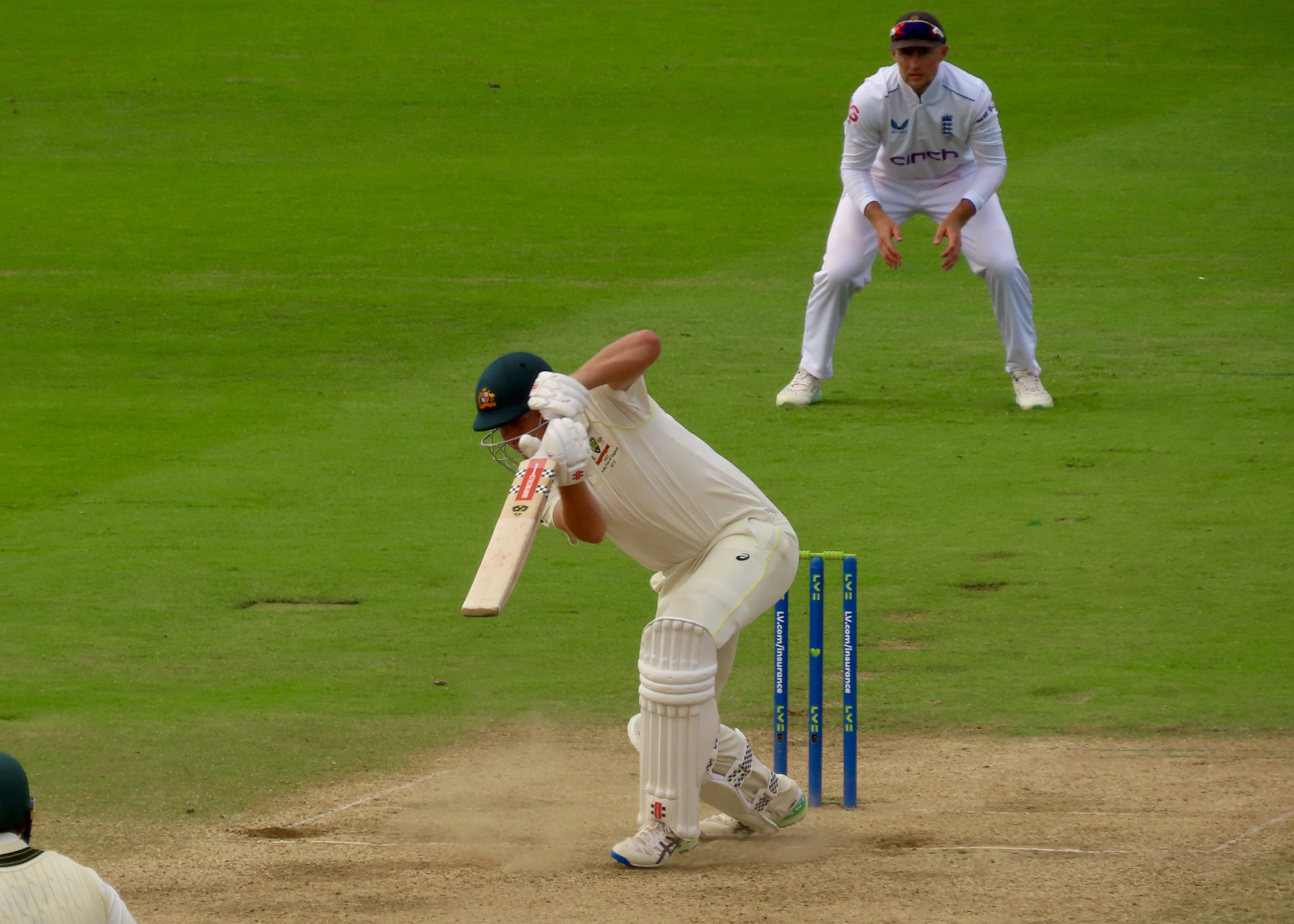 Day 1 saw Ben Stokes win the toss and elect to bat, we’d see that BB early on; except to a great degree we didn’t, what looked like very negative fields set by Cummins stopped the runs fest to a degree. Zak Crawley set the tone with the first ball however driving the ball for a very good 4, he went on to score 61 from 73 balls, a great start for the opener who had had much criticism from England fans, me included. The innings of the day was courtesy of Joe Root he scored 118 from 152 balls and delighted the England fans in the crowd, he and Johnny Bairstow shared a partnership of 121 for the 6th wicket, but the 3 mentioned were really the only batters with meaningful runs to their name. Several batters gave away their wickets including Stokes and Moeen Ali. To the surprise of everyone in the ground Stokes declared on 393 for 8, at the point Root was seeing the ball like a football. Australia faced 4 overs and lost no wickets. Travis Head dropped a catch and missed a ball going to the boundary, happily for him not in front of the Hollies, but ‘special attention’ started for him on Day 1 and would continue throughout. THIS WAS JOE ROOT’S DAY!