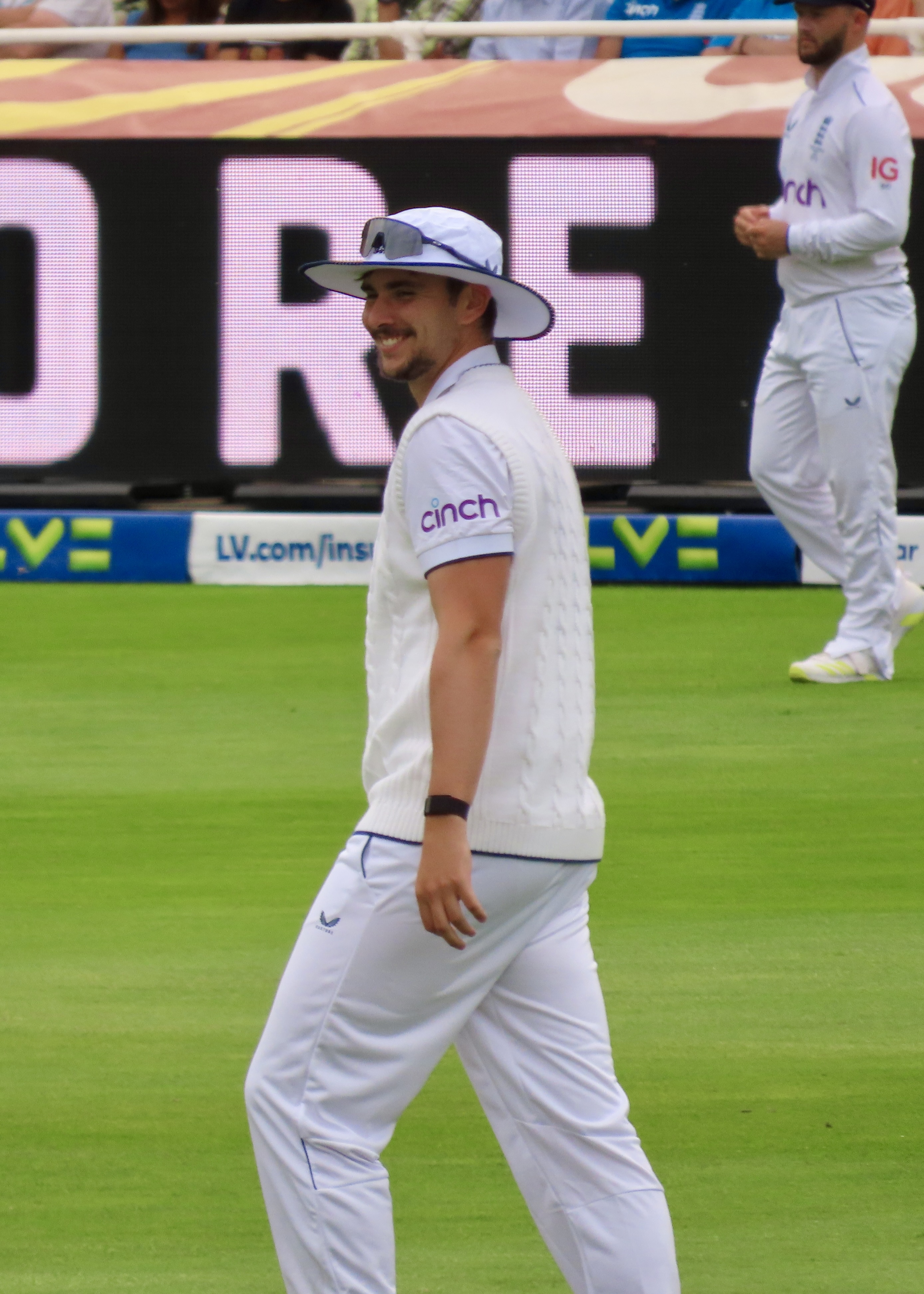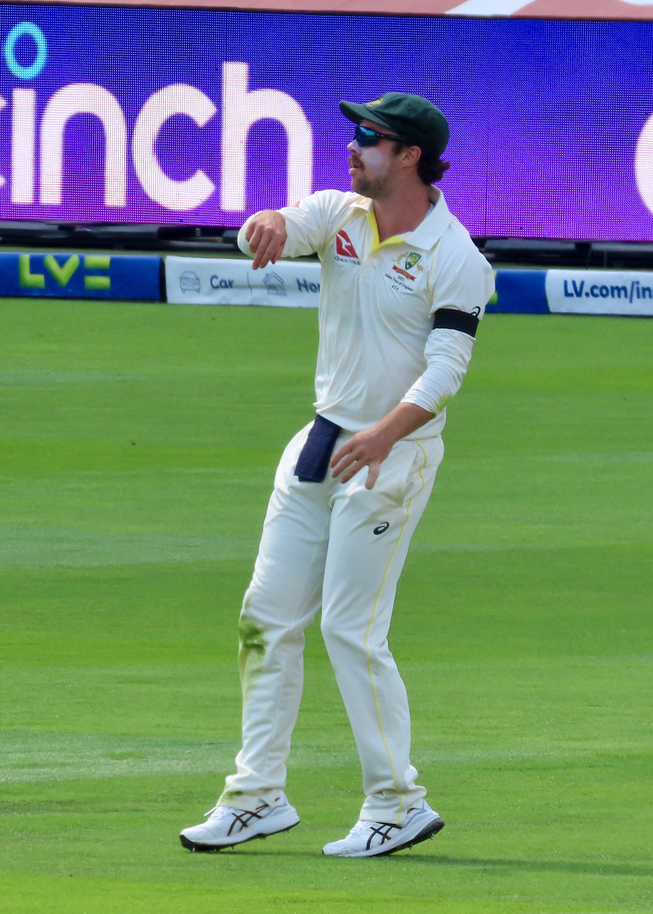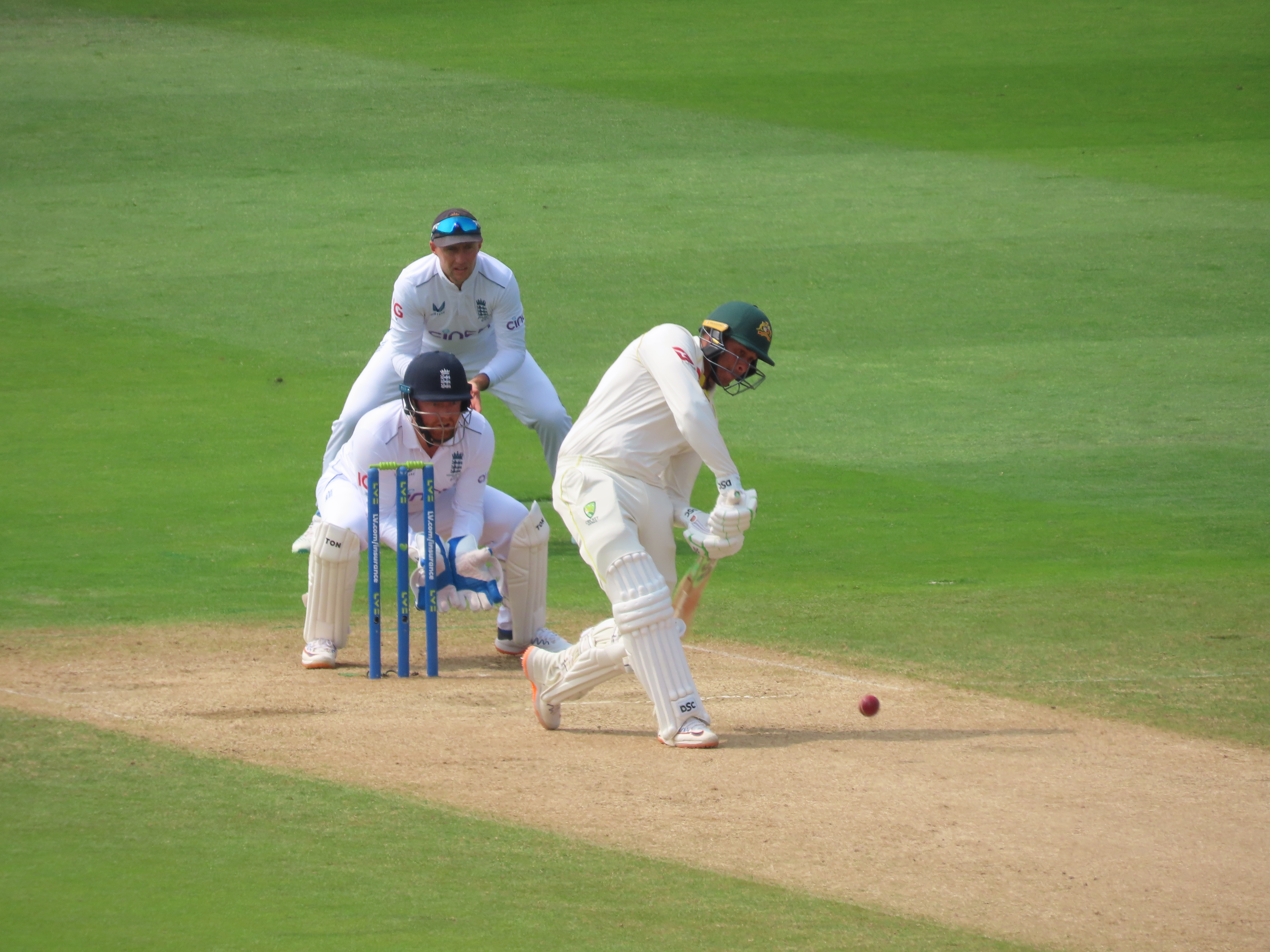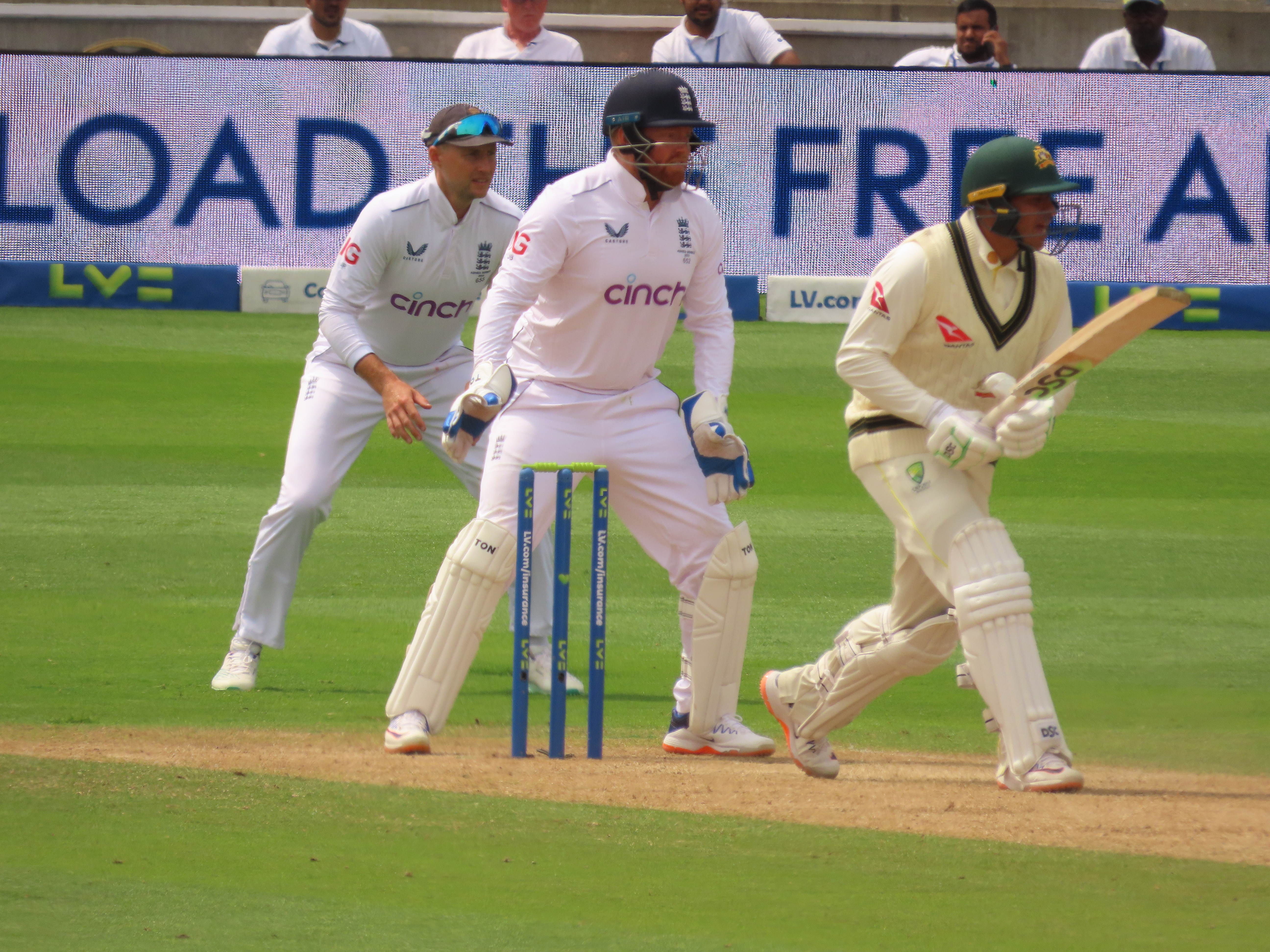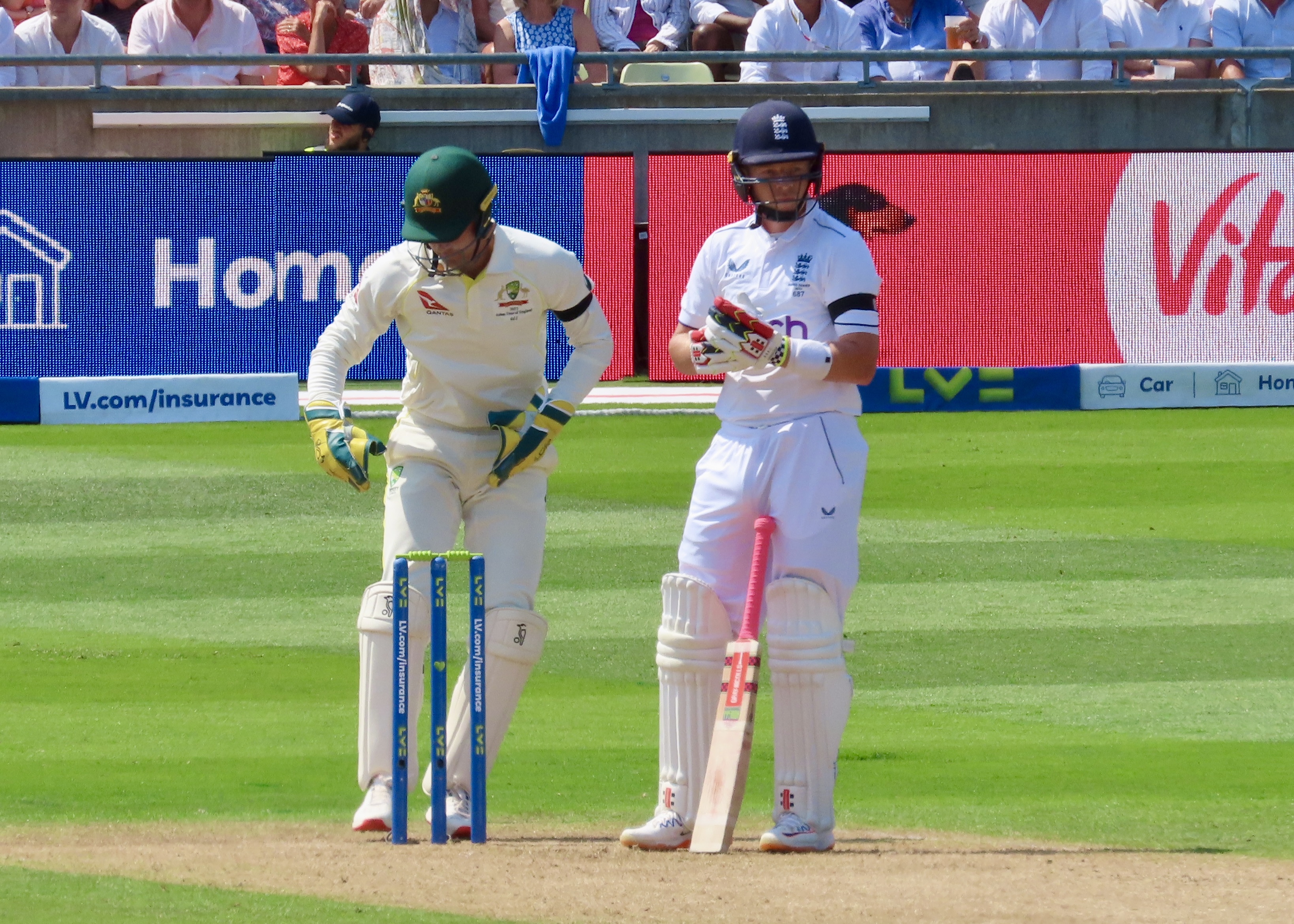 Day 1 saw Ben Stokes win the toss and elect to bat, we’d see that BB early on; except to a great degree we didn’t, what looked like very negative fields set by Cummins stopped the runs fest to a degree. Zak Crawley set the tone with the first ball however driving the ball for a very good 4, he went on to score 61 from 73 balls, a great start for the opener who had had much criticism from England fans, me included. The innings of the day was courtesy of Joe Root he scored 118 from 152 balls and delighted the England fans in the crowd, he and Johnny Bairstow shared a partnership of 121 for the 6th wicket, but the 3 mentioned were really the only batters with meaningful runs to their name. Several batters gave away their wickets including Stokes and Moeen Ali. To the surprise of everyone in the ground Stokes declared on 393 for 8, at the point Root was seeing the ball like a football. Australia faced 4 overs and lost no wickets. Travis Head dropped a catch and missed a ball going to the boundary, happily for him not in front of the Hollies, but ‘special attention’ started for him on Day 1 and would continue throughout. THIS WAS JOE ROOT’S DAY!