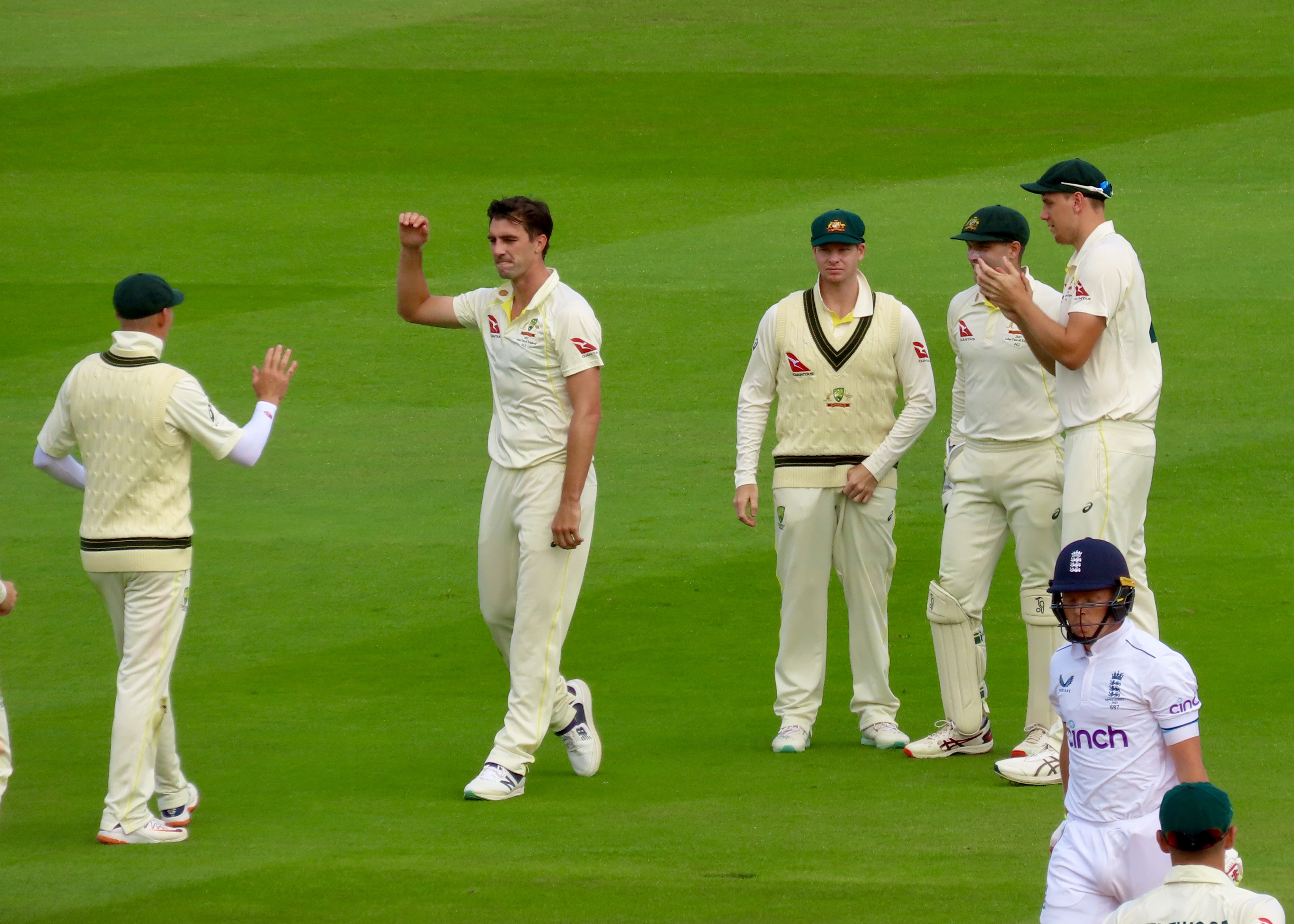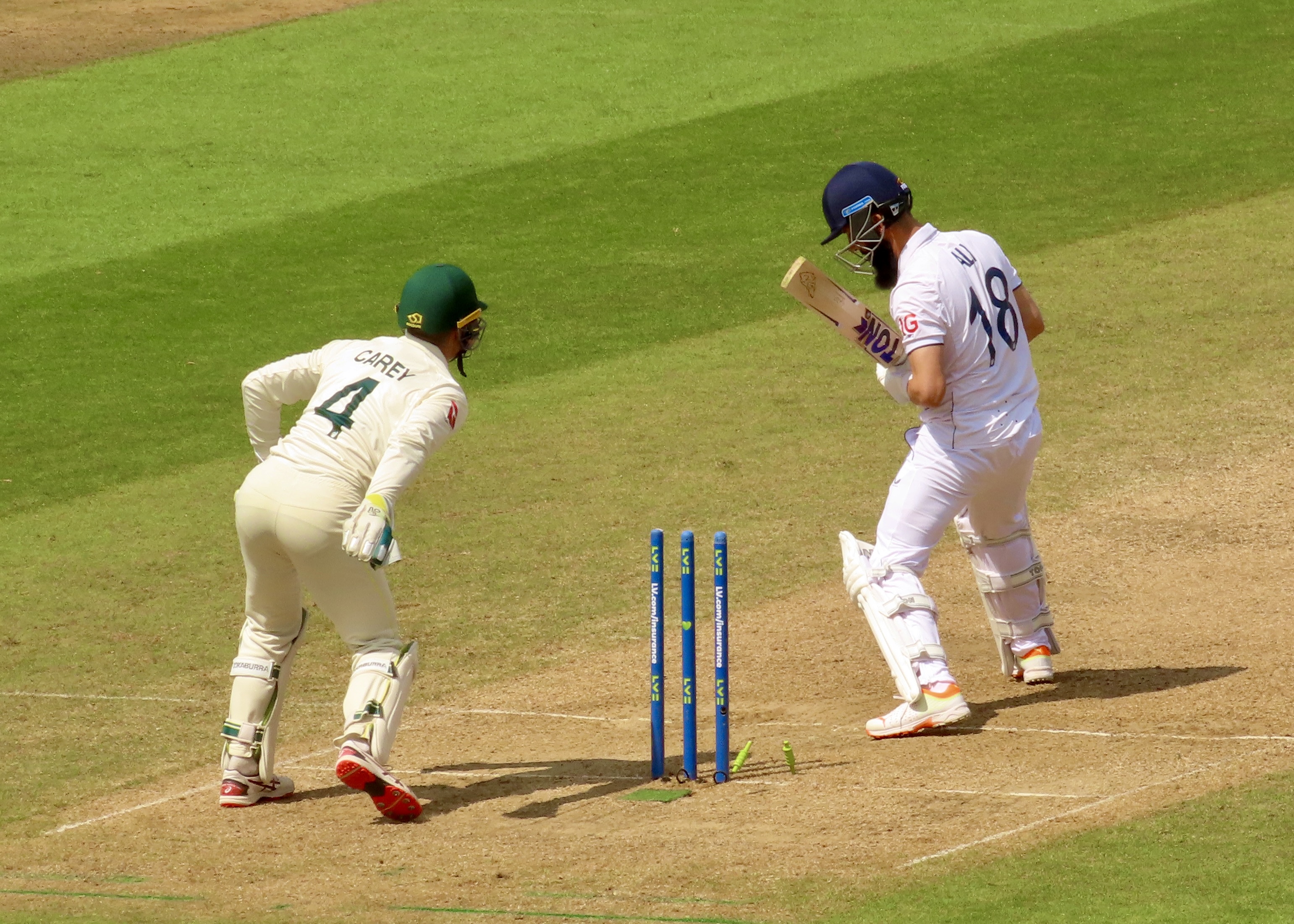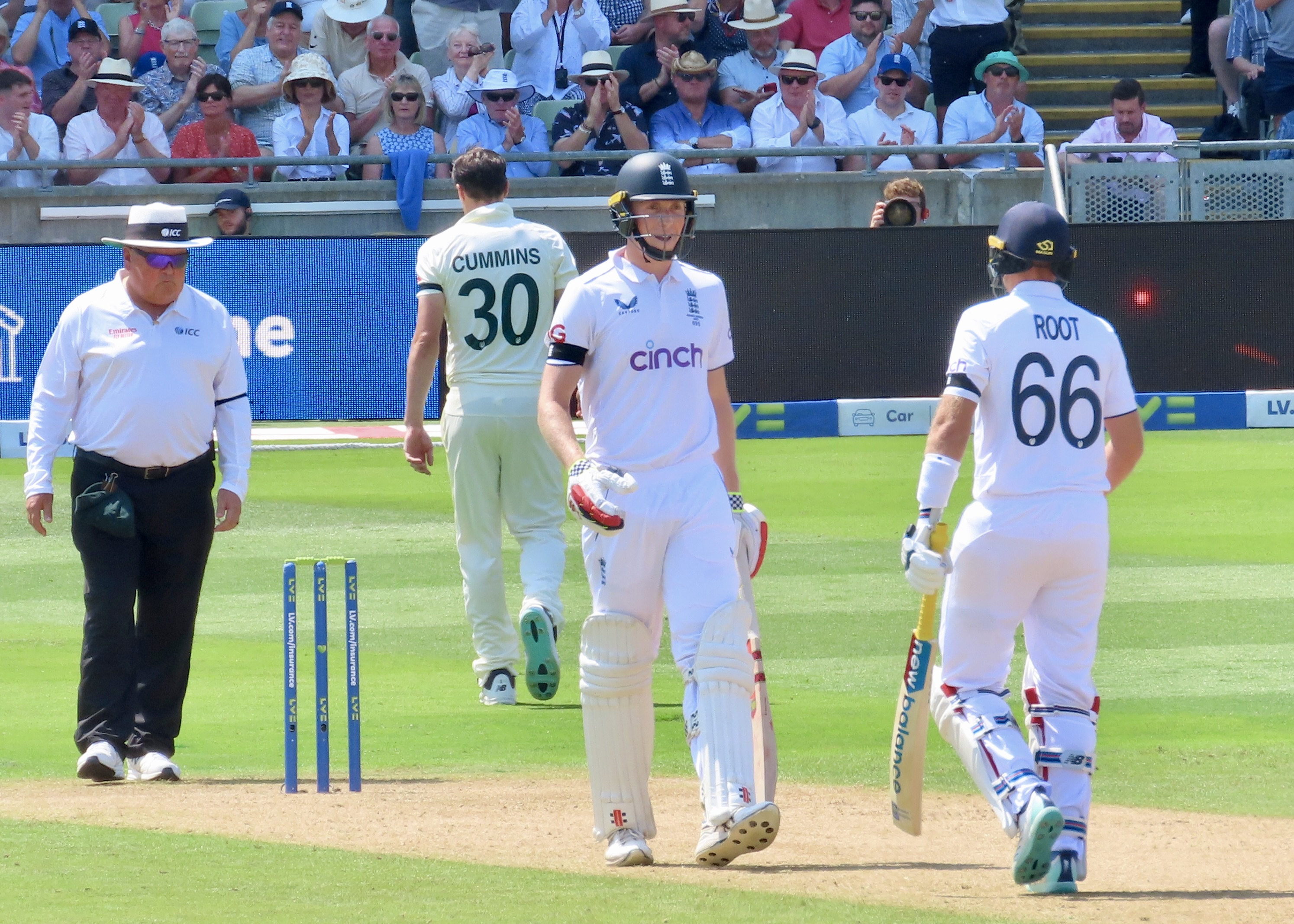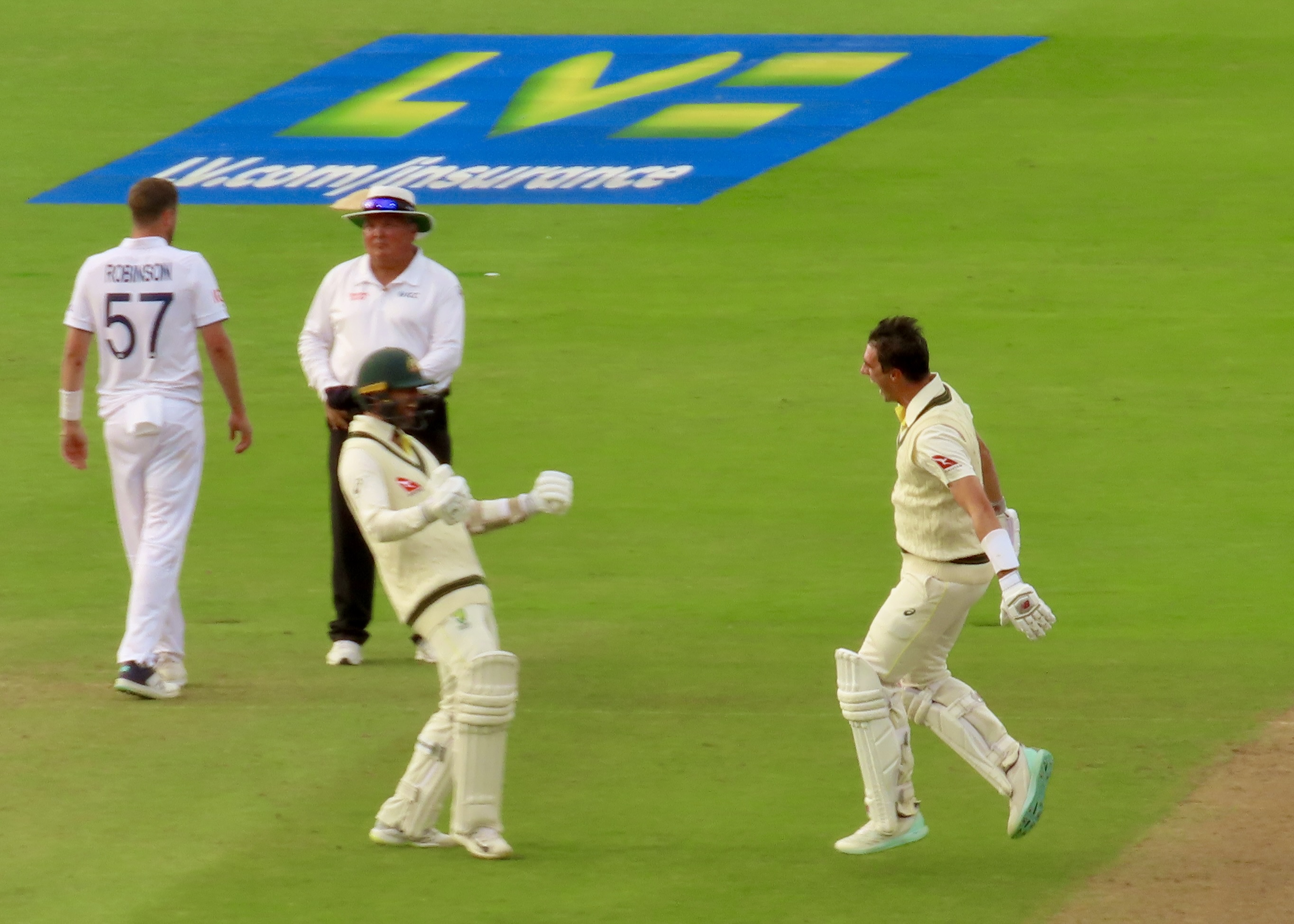 I’d booked myself posh seats for the 4th and 5th Days, and that definitely paid for Day 5 with the weather, for Day 4 it gave me a great view and some pretty good food in nice surroundings. I had a perfect view of a perfect ball from Cummins to despatch Pope for just 14 it also gave me a great view of a Joe Root career first, being stumped! After he seemed to have his eye in, he went down the wicket to Nathan Lyon, there really was only going to be one outcome, gone for 46. Harry Brook went for the same score with a misjudged shot and a great catch from Labuschagne. Stokes batted for nearly 2 hours in this innings scoring 43 from 66 before he was trapped LBW by Cummins. England were bowled out for 273 in 66.2 overs. Both Cummins and Lyon took 4 wickets. England had some time to take wickets and they did, 3 of them: Warner will possibly be relieved that he fell to Robinson, both Smith and Labuschagne did however fall to Broad. Australia’s 2 best batters, going into this game, contributed just 35 runs across 2 innings. DAY 4 WAS SHARED BY CUMMINS AND LYON WITH BROAD TAKING A SHARE TOO!