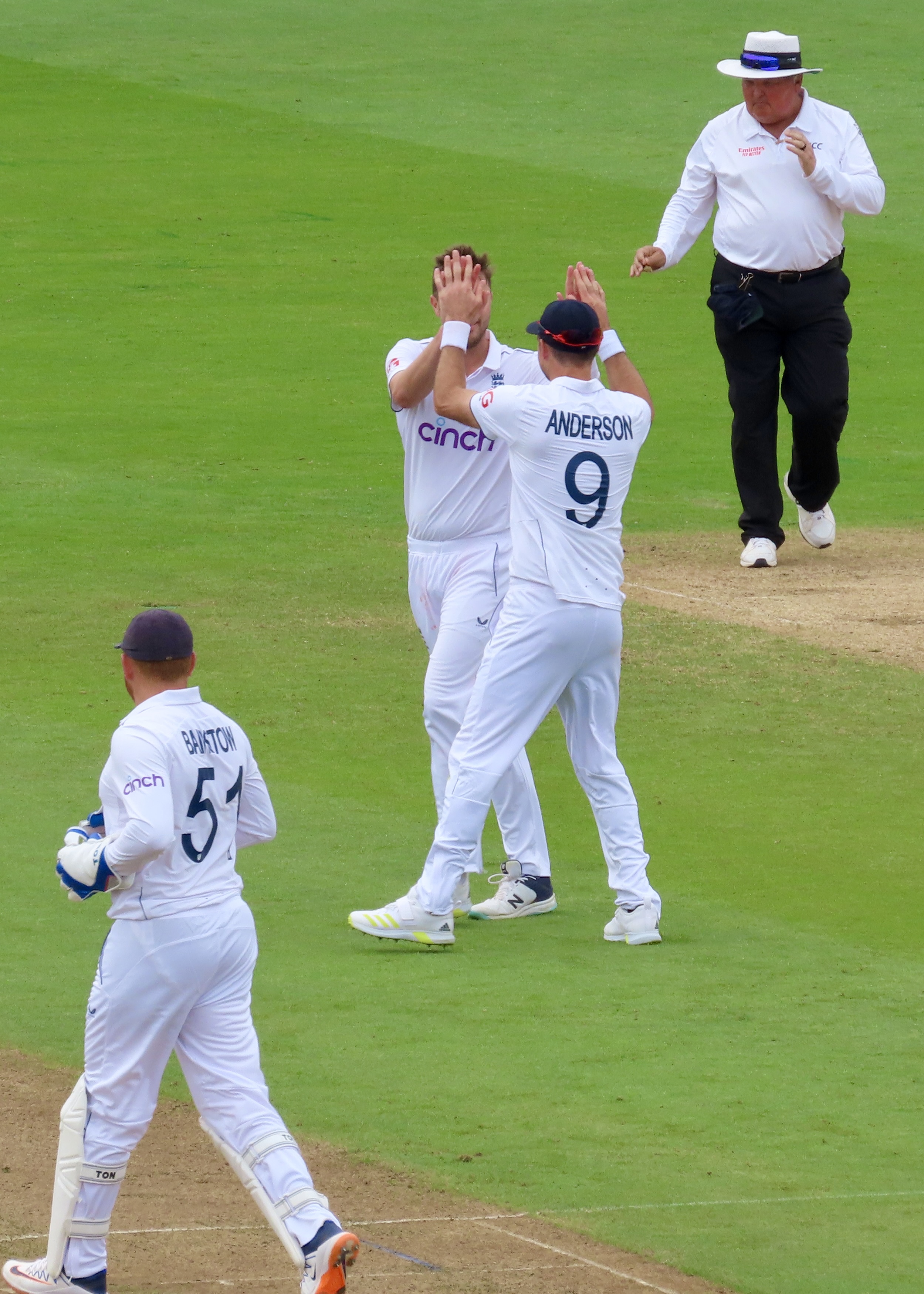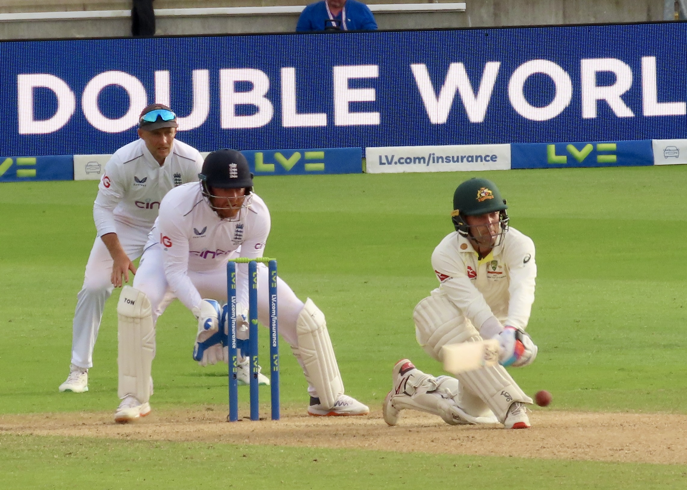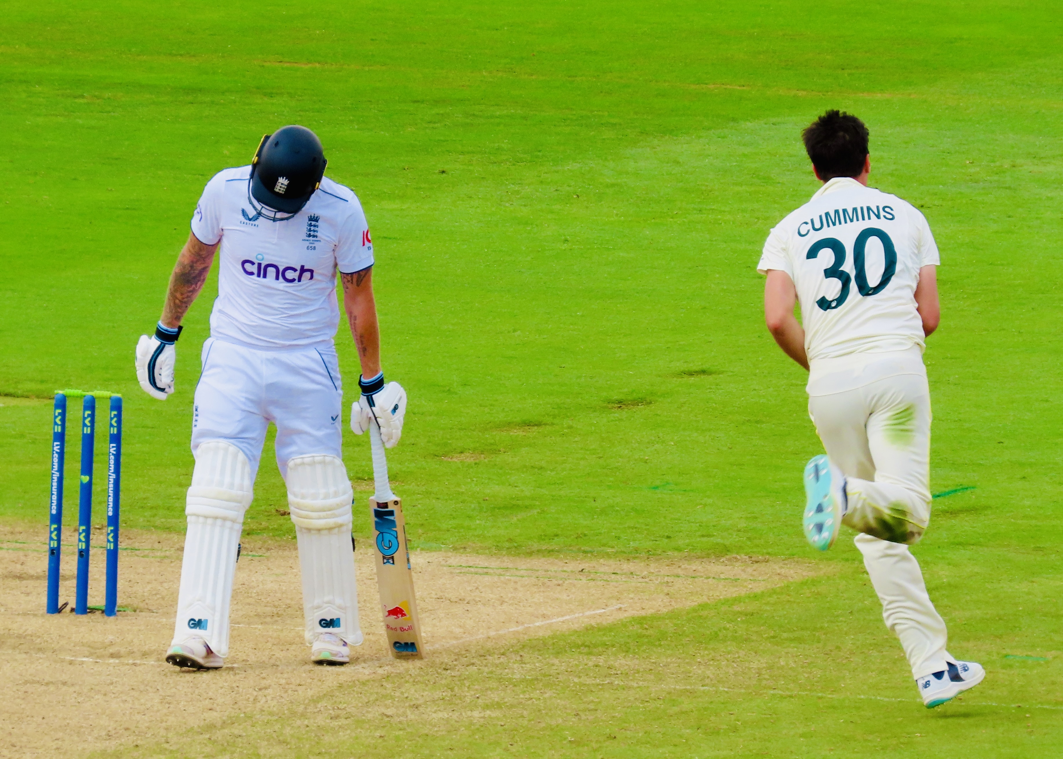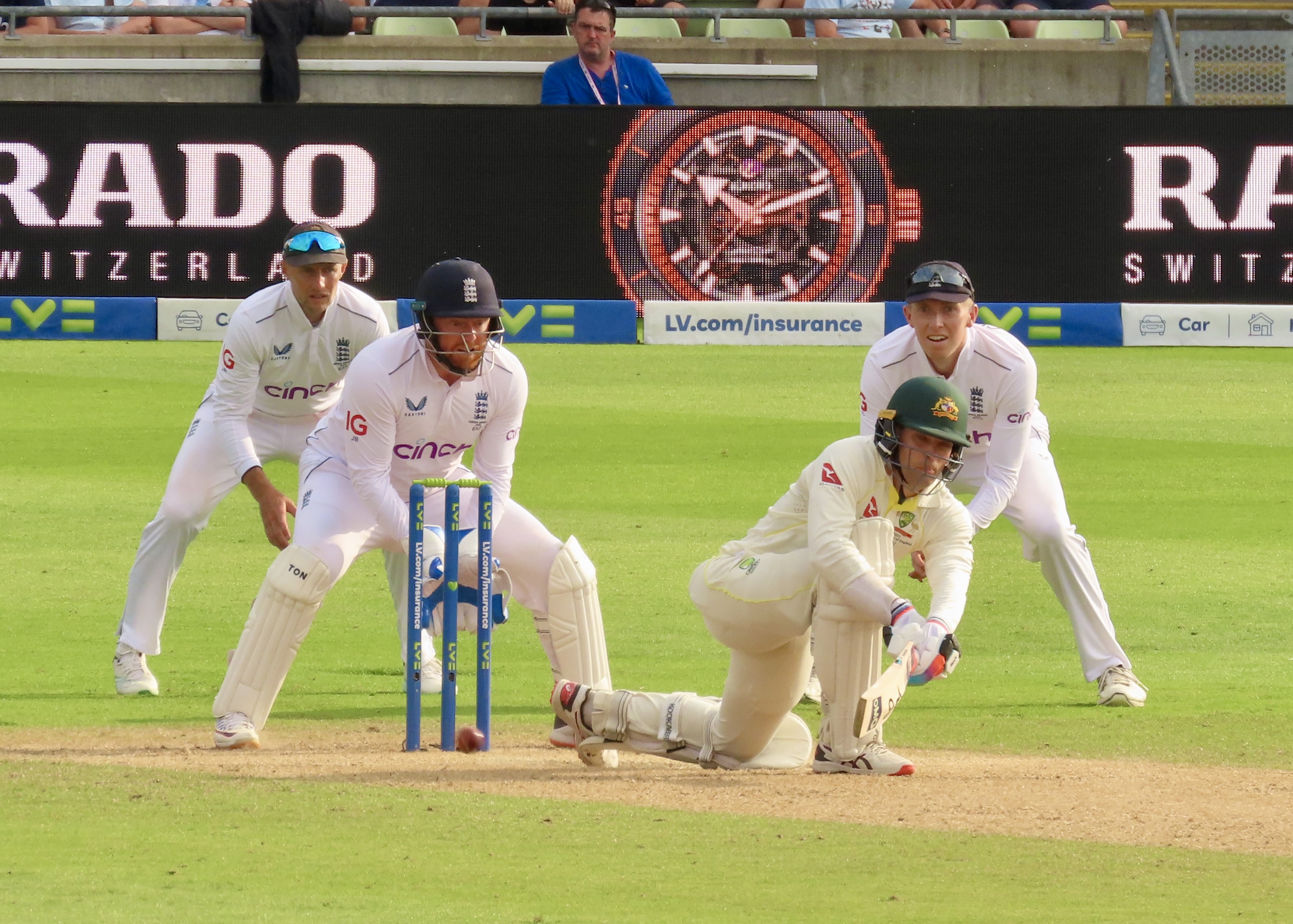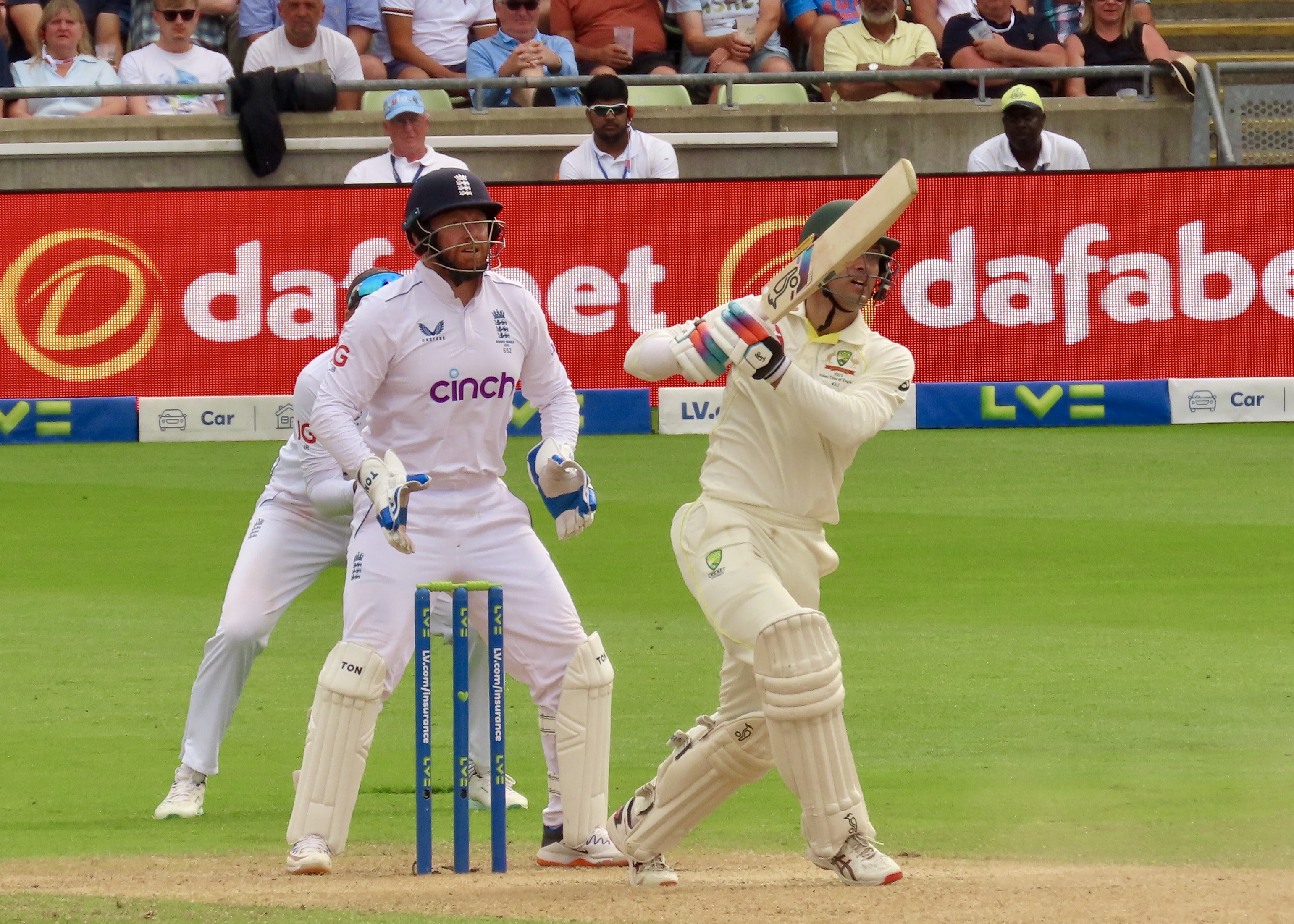 I’d booked myself posh seats for the 4th and 5th Days, and that definitely paid for Day 5 with the weather, for Day 4 it gave me a great view and some pretty good food in nice surroundings. I had a perfect view of a perfect ball from Cummins to despatch Pope for just 14 it also gave me a great view of a Joe Root career first, being stumped! After he seemed to have his eye in, he went down the wicket to Nathan Lyon, there really was only going to be one outcome, gone for 46. Harry Brook went for the same score with a misjudged shot and a great catch from Labuschagne. Stokes batted for nearly 2 hours in this innings scoring 43 from 66 before he was trapped LBW by Cummins. England were bowled out for 273 in 66.2 overs. Both Cummins and Lyon took 4 wickets. England had some time to take wickets and they did, 3 of them: Warner will possibly be relieved that he fell to Robinson, both Smith and Labuschagne did however fall to Broad. Australia’s 2 best batters, going into this game, contributed just 35 runs across 2 innings. DAY 4 WAS SHARED BY CUMMINS AND LYON WITH BROAD TAKING A SHARE TOO!