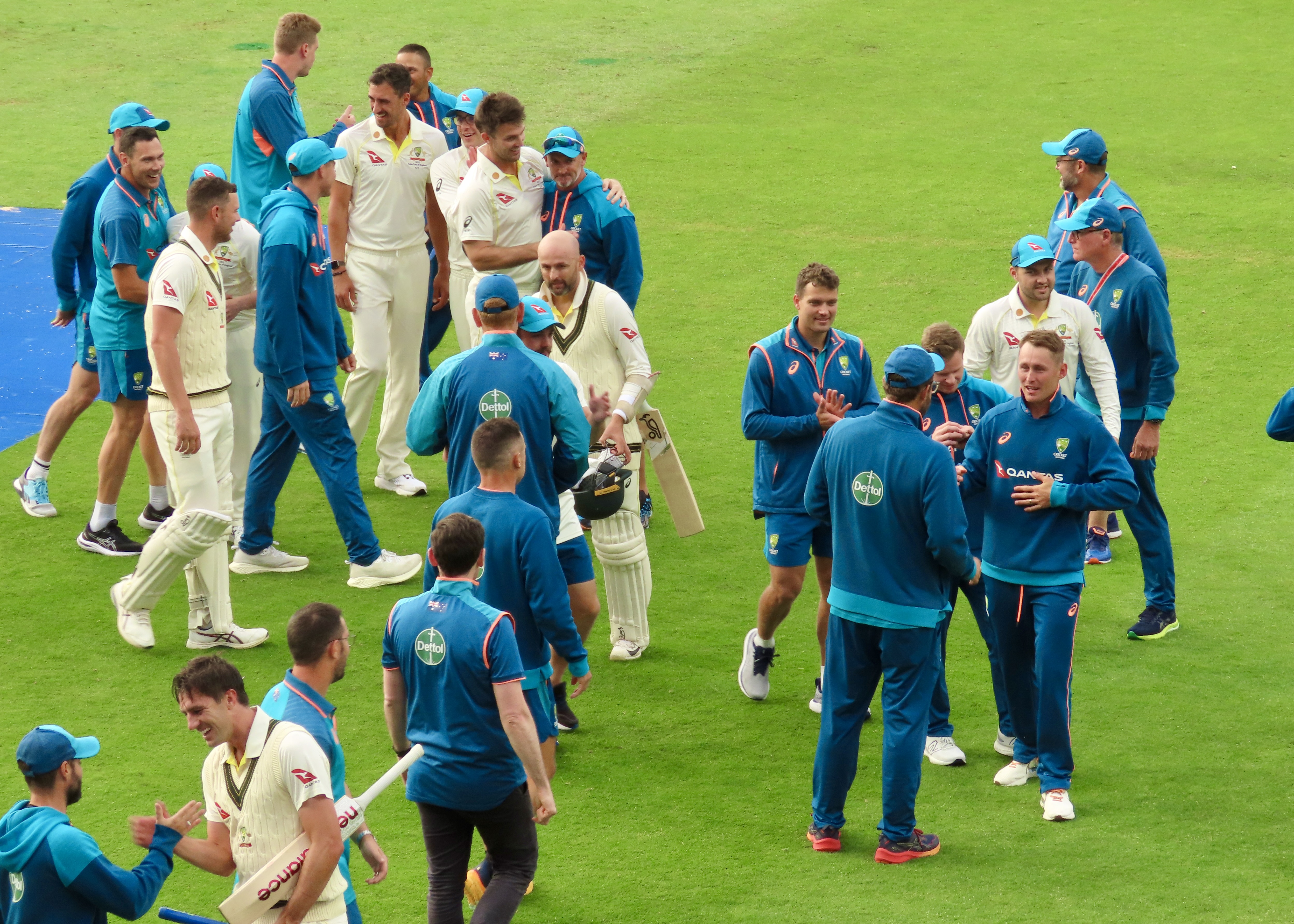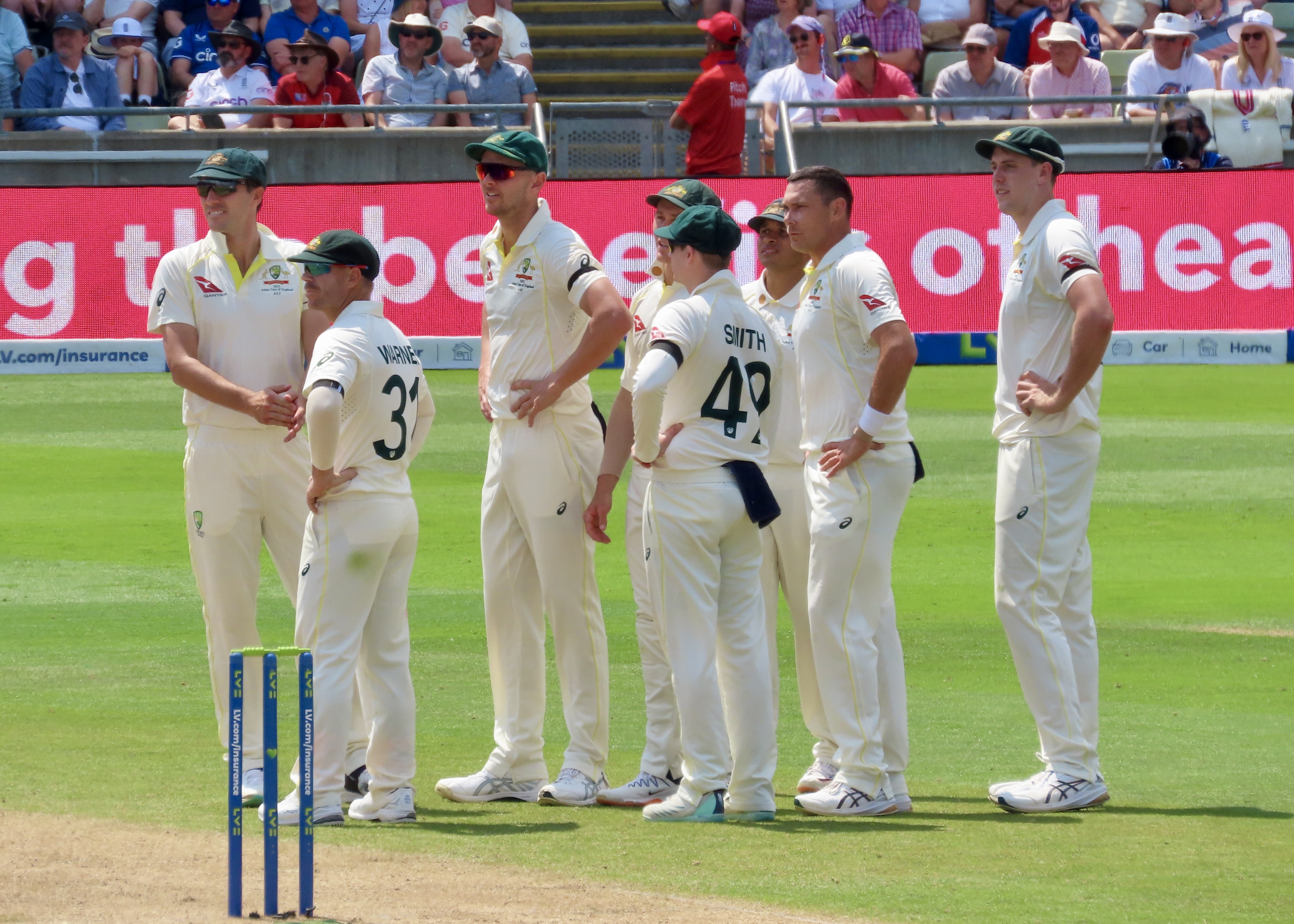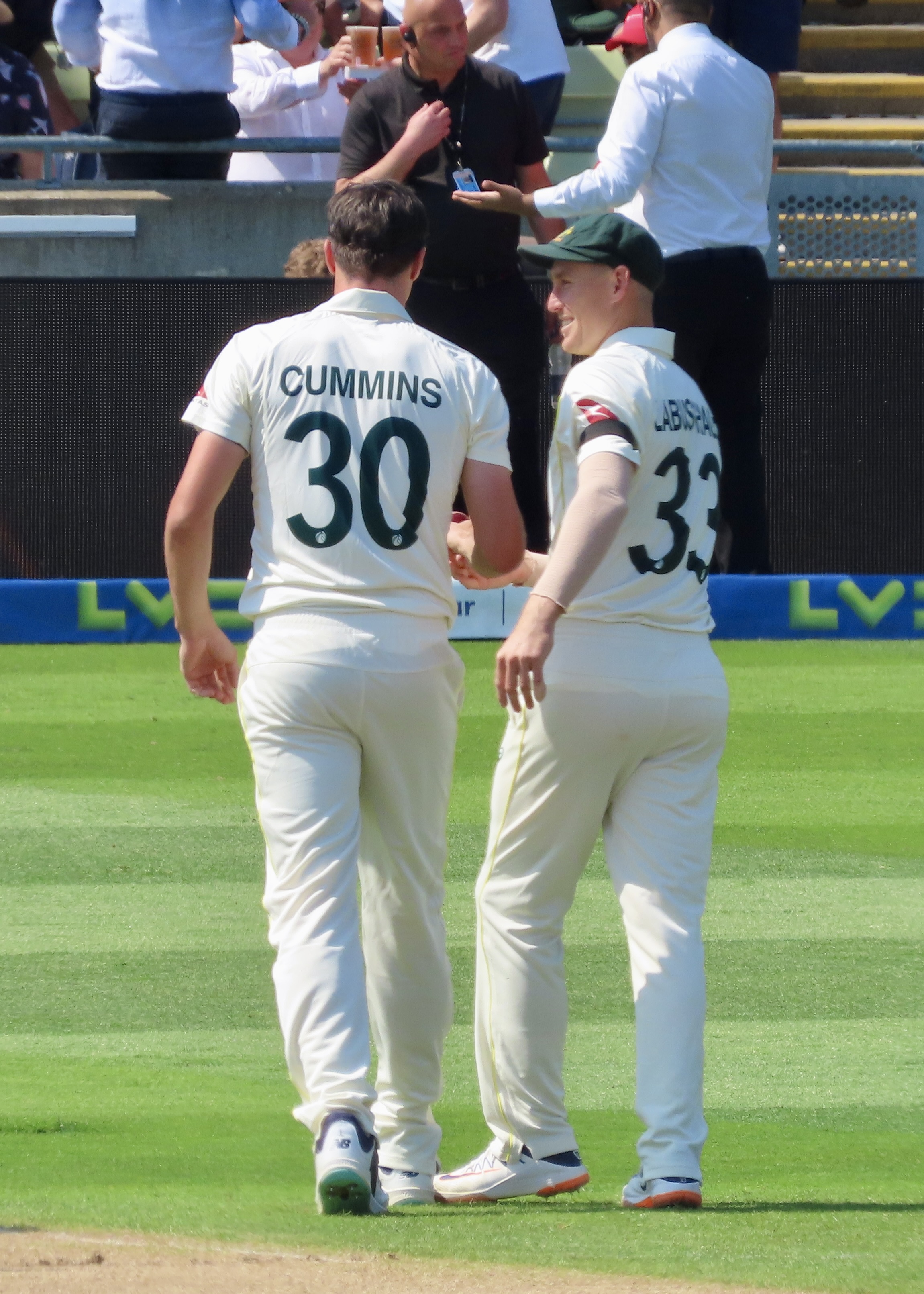 Day 5 started at 2:15 after another great effort by the Edgbaston ground staff; Australia needed 174 runs and England 7 wickets. Could England take 20 wickets in the match? Could Australia score enough runs in the match without 2 key batters contributing? Scott Boland had come in as Night Watchman, he’d been out for a 5 ball Duck in the First innings but managed 20 important runs in the second. England had an injured Moeen, who’d bowled 29 overs in the first innings, very much to the detriment of his fingers. He still bowled another 14 in this second innings. Usman Khawaja top scored again with 65 runs from 197 balls, batting for over 5 hours, his was the 7th wicket to fall. With 8 wickets down Australia had Pat Cummins and Nathan Lyon at the crease. Cummins played a true captain’s innings, scoring 44 from 73 balls, batting for over an hour and a half, it was apt that he scored the winning runs from the bowling of Robinson. This was a truly fabulous game of cricket! Here’s to the next 4 being as good! DAY 5 BELONGED TO KHAWAJA AND CUMMINS!