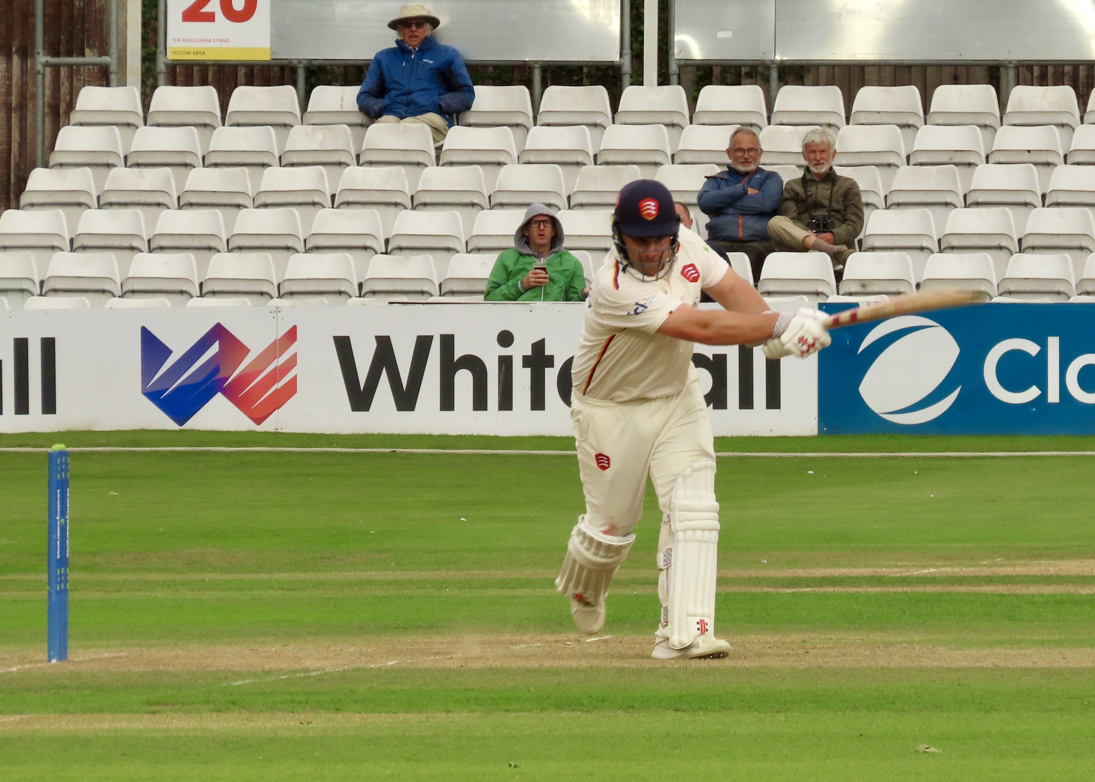 Essex opened their innings with Alastair Cook and Adam Rossington, Rossington was out for a 3 ball Duck Cook faced 38 balls for 68 runs. Tom Westley and Dan Lawrence playing his last innings at Chelmsford for Essex put on 83 for the 43rd wicket. Westley’s 45 from 49 balls took him to the top of the runs scoring board alongside Somerset’s James Rew with 1080 runs. Lawrence scored 53 from 49 balls. The rest of the Essex batters were to great degree blown away! Westley declared on 153 for 8 giving Hants a score of 267 to chase.