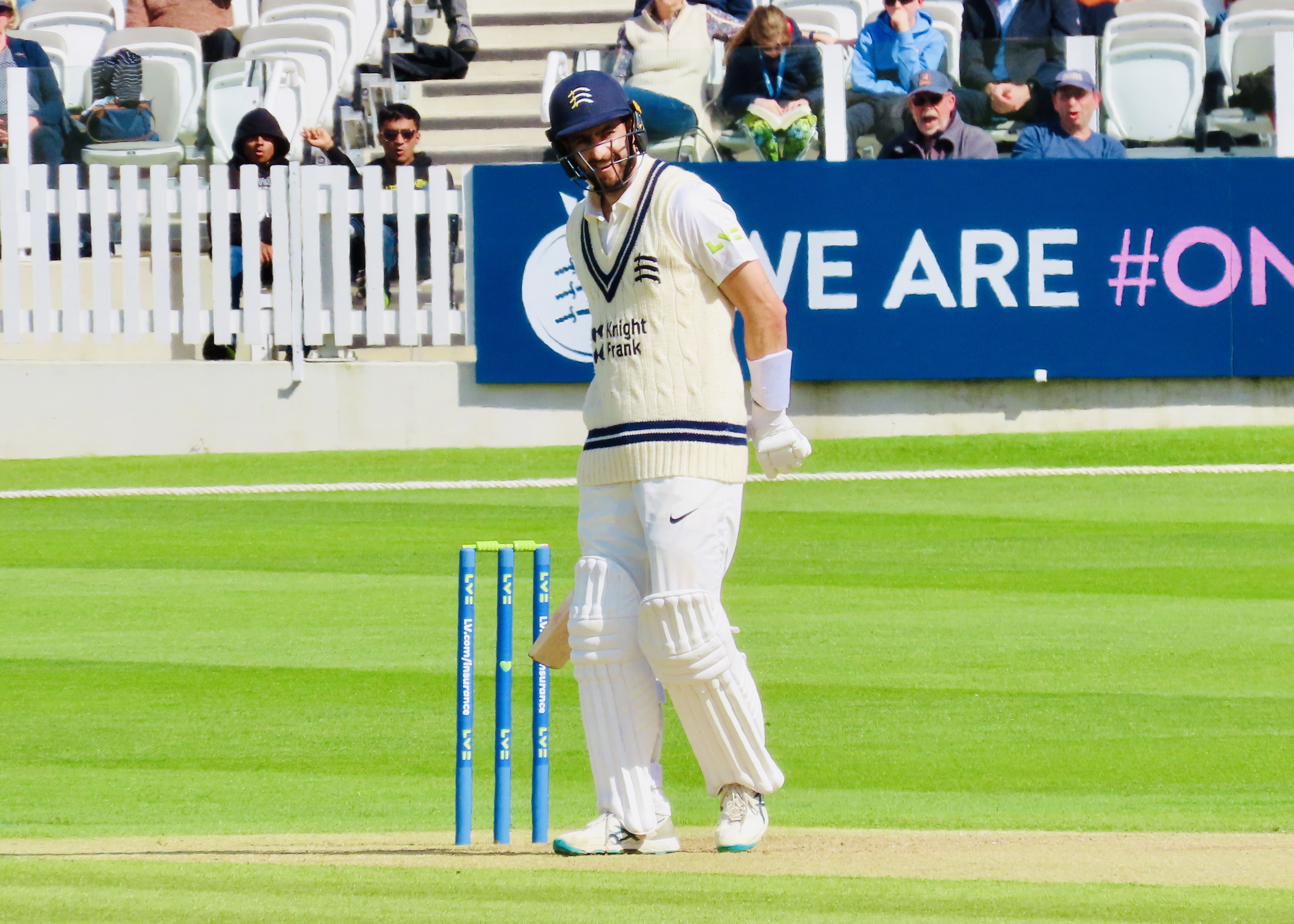 Zajk Crawley was the star of the Kent innings, he scored 170 from 183 balls hitting 27 Fours as he went! That must’ve been some innings to witness! Kent made 342 for 7 in their 78 overs. The match was only ever going to be a Draw.